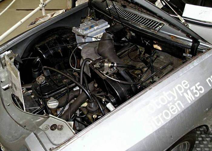 Die Karosserie des M35 war niedriger als die des Ami 8, aber genauso lang und breit und wog 815 kg. Seine hydropneumatische Federung mit geschweißten anstatt geschraubten Federkugeln war für kleinere Fahrzeuge besonders kostengünstig konstruiert und kam später im Citroën GS zum Großserieneinsatz.[1] Die Hochdruckpumpe versorgte auch die Bremsanlage,[2] es handelte sich aber noch um die Bremsen des Ami 8 mit Trommelbremsen hinten, während der GS vier Scheibenbremsen bekam. Auch das Armaturenbrett kam vom Ami 8, es gab aber eine Uhr und einen Drehzahlmesser. Lenkrad und Sitze waren mit schwarzen Leder überzogen.
