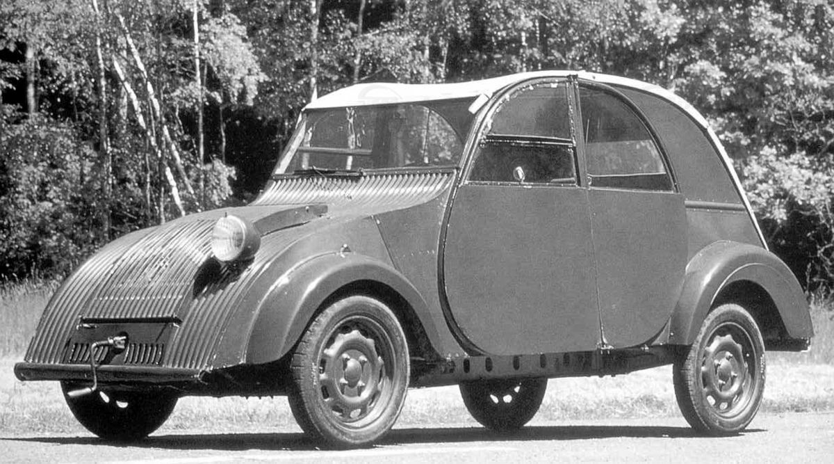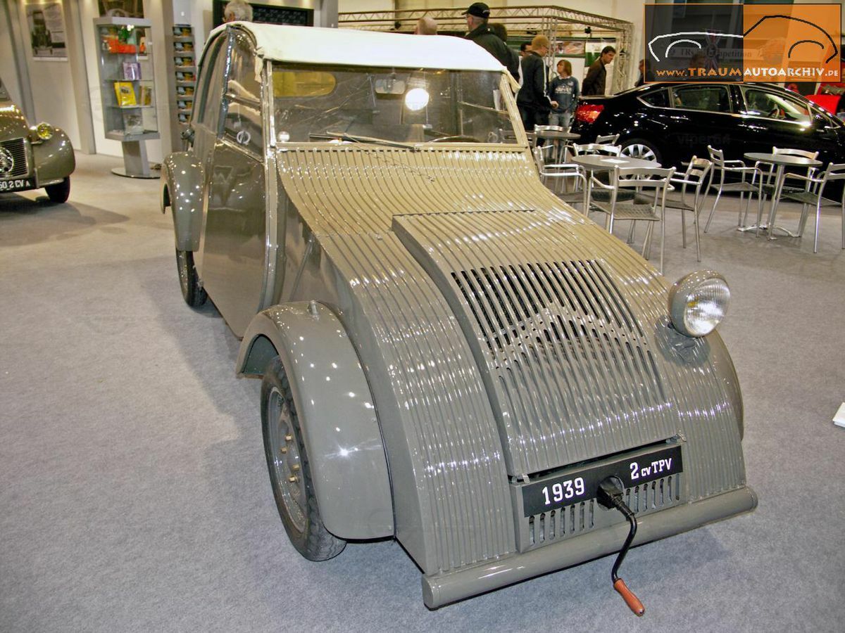 1939 wurden 250 wassergekühlte Prototypen der sogenannten 2CV Serie „A“ bzw. TPV gebaut. Das Akronym TPV stand für Toute Petite Voiture, zu deutsch ganz kleines Auto. Der TPV besaß nur einen Frontscheinwerfer und wurde ausschließlich mit Blick auf den Nutzwert konzipiert. Entsprechend karg fiel die Gestaltung des Fahrzeugs aus.