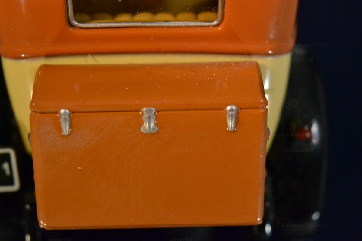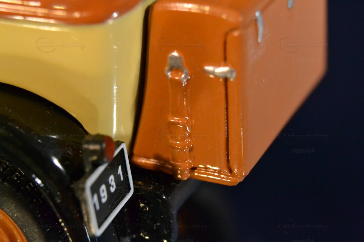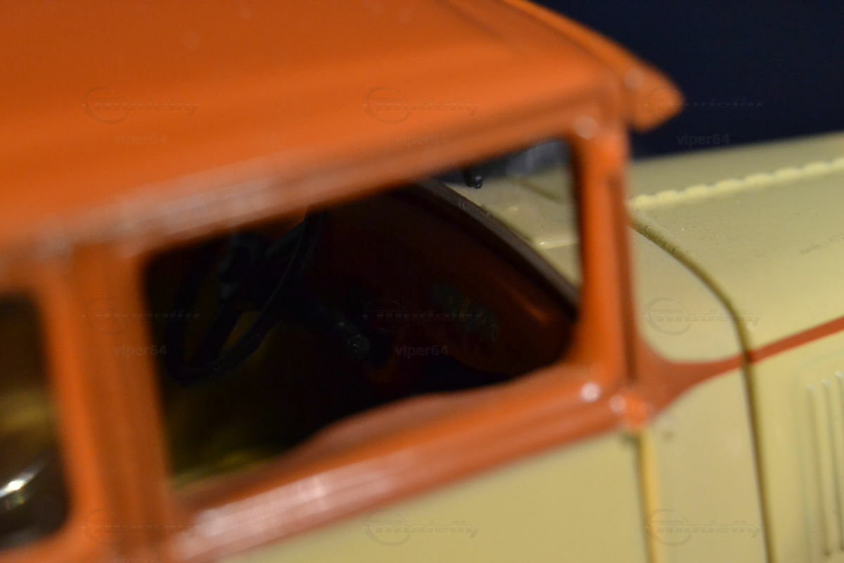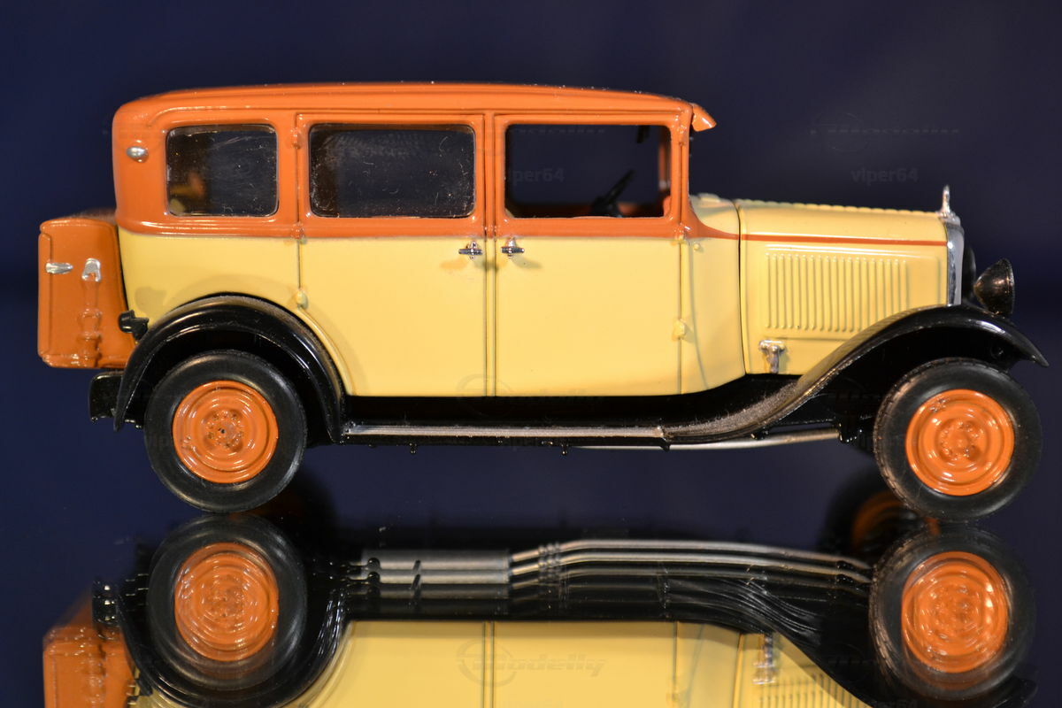 Für Sammler von Autominiaturen ist der 1:43 Maßstab des Citroen C4F Familiale, hergestellt von Universal Hobbies, ein besonderes Highlight. Dieses Modell ist präzise aus Diecast-Material gefertigt und fängt die wesentlichen Details und die klassische Form des Originals ein. Im Rahmen der Sammlung des Modelly Mitglieds "viper64" zeigt dieses Modell einen hohen Standard an Verarbeitungsqualität und Detailtreue. Die zweifarbige Lackierung in kräftigem Orange und sanftem Gelb verleiht dem Modell ein authentisches Aussehen, das an die Farbschemata der frühen 30er Jahre erinnert. Besonders auffällig sind die trommelförmigen Radkappen und die charakteristischen Linien des Körpers, die die Eleganz und den Stil des Citroen C4F Familiale bewahren.