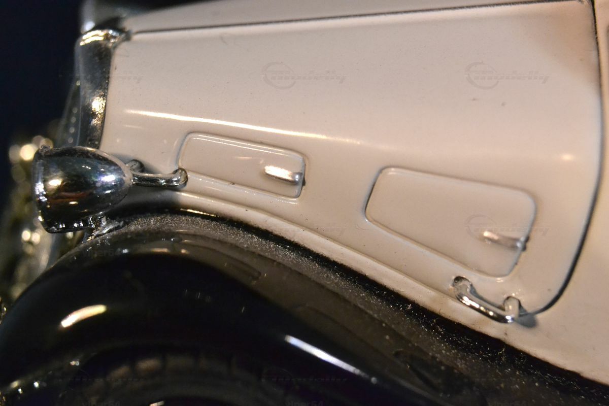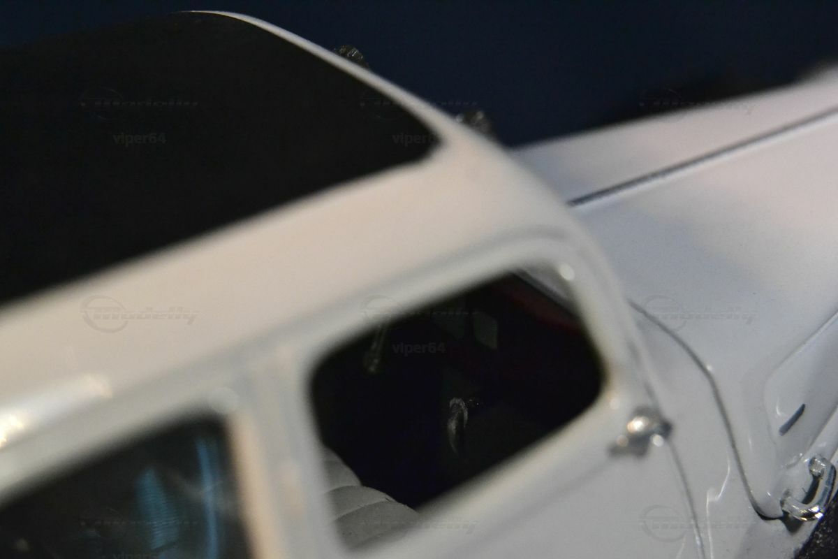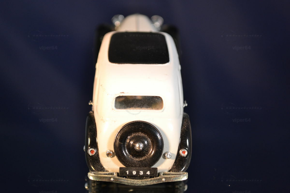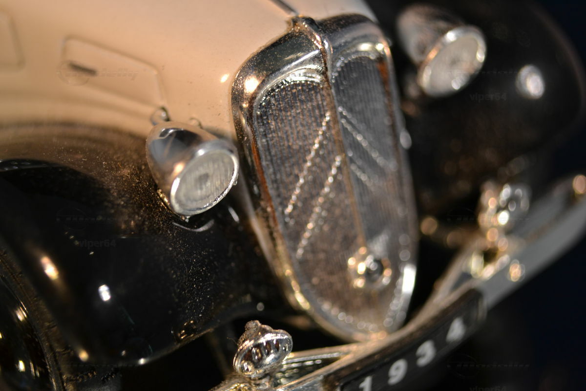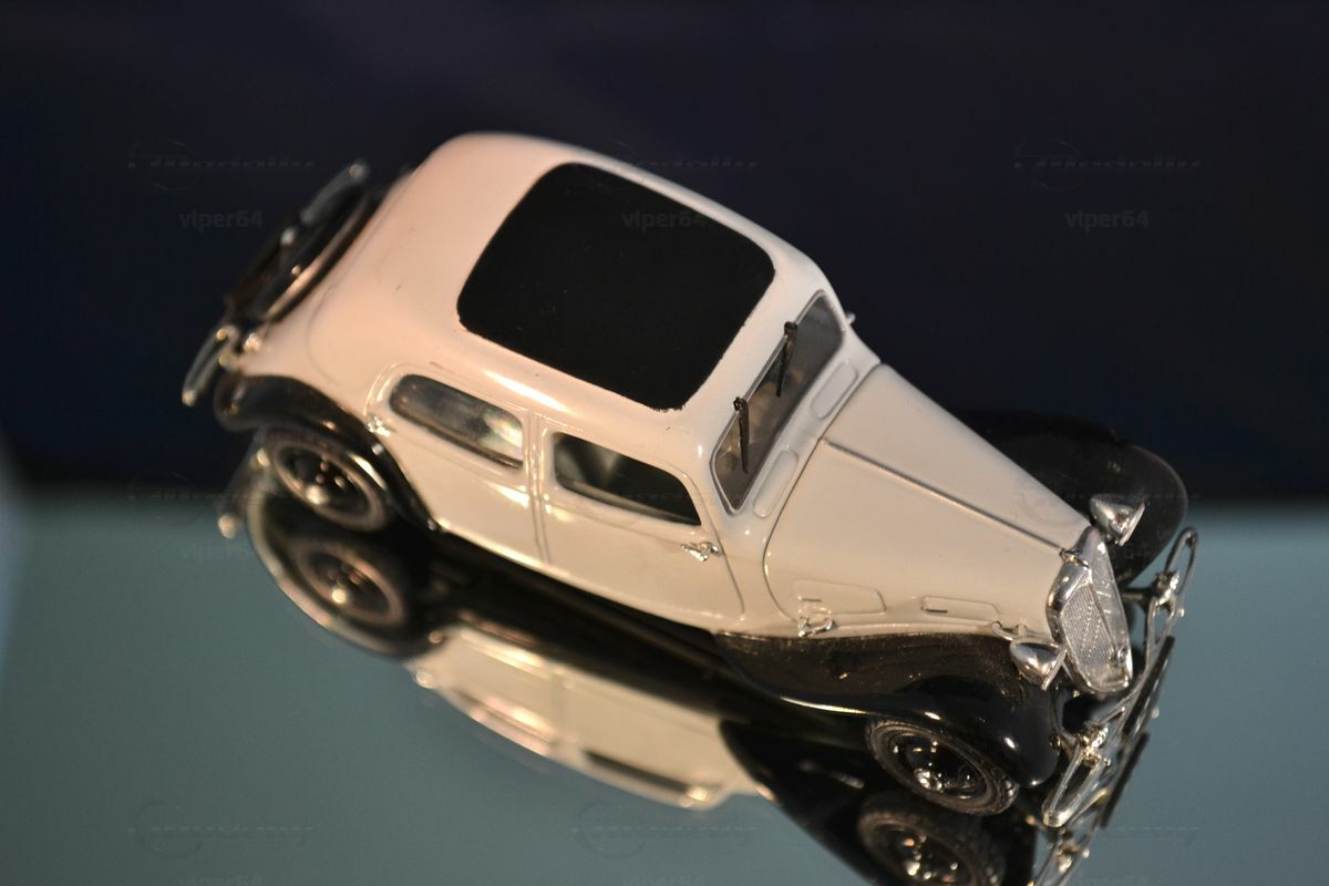 Dieses Modellauto im Maßstab 1:43 ist eine detailgetreue Nachbildung der originalen Citroen Traction 7A und wurde von Universal Hobbies hergestellt. Das Material des Modells besteht aus hochwertigem Diecast, was für Modellautoliebhaber ein entscheidendes Merkmal darstellt – es garantiert Stabilität und beeindruckt durch hohes Detailreichtum. Der Sammler "viper64" aus der Modelly-Community hat sich dieses Stück in seine bemerkenswerte Sammlung geholt. Wie auf den Fotos zu erkennen ist, weist das Modell präzise Details wie die Chromstoßstangen, originalgetreue Scheinwerfer und einen Reserveradhalter am Heck auf. Die Kombination aus Schwarz und Weiß auf der Karosserie ist nur ein Beispiel für die Hingabe des Herstellers zur historischen Genauigkeit und Vervollständigung des Modells. Besonders auffällig ist das glänzende Finish, welches das klassische Design der Citroen Traction 7A hervorhebt.