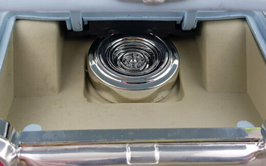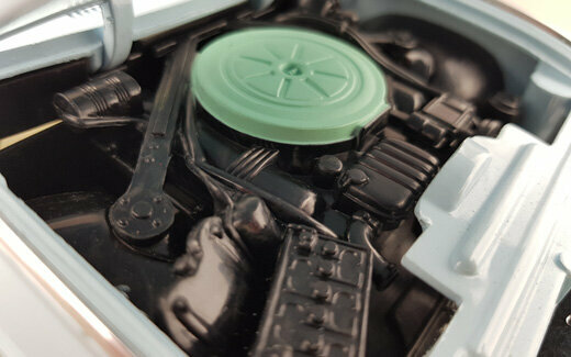 Anson brachte zwischen 1998 und 2001 ein DieCast-Modell des T-Bird Sports Roadster von 1963 in verschiedenen Farbvarianten heraus. Das in meinem Falle hellblaue Modell ist gut gearbeitet und ebenso lackiert. Die etwas groben Chromapplikationen sind ausreichend vorhanden und spiegeln in ihrer Qualität wie auch andere Details das Alter des Modells wieder. So ist auch die Innenausstattung etwas grob und mit sehr viel Chrom versehen. Die für diese Variante typische Abdeckung des hinteren Sitzbereiches ist ebenso vorhanden wie die Speichenräder die recht ordentlich gelungen sind. Dieses kann man von der Motornachbildung die nach öffnen der Motorhaube sichtbar wird jedoch nicht sagen. Der Motor wurde mit allen Details aus einem einzigen schwarzem Stück gegossen und lediglich der Deckel des Luftfilters ist in hellblau hinzugefügt worden. Des Weiteren lassen sich Türen und Kofferraum öffnen. In diesem befindet sich nur eine merkwürdige verchromte Abdeckung für ein Reserverad. Proportionen und Maße haben leichte Abweichungen die jedoch tolerabel sind. Das Modell wird nicht mehr produziert, ist aber im Netz zu Preisen von 30 bis 100 € nach erhältlich.