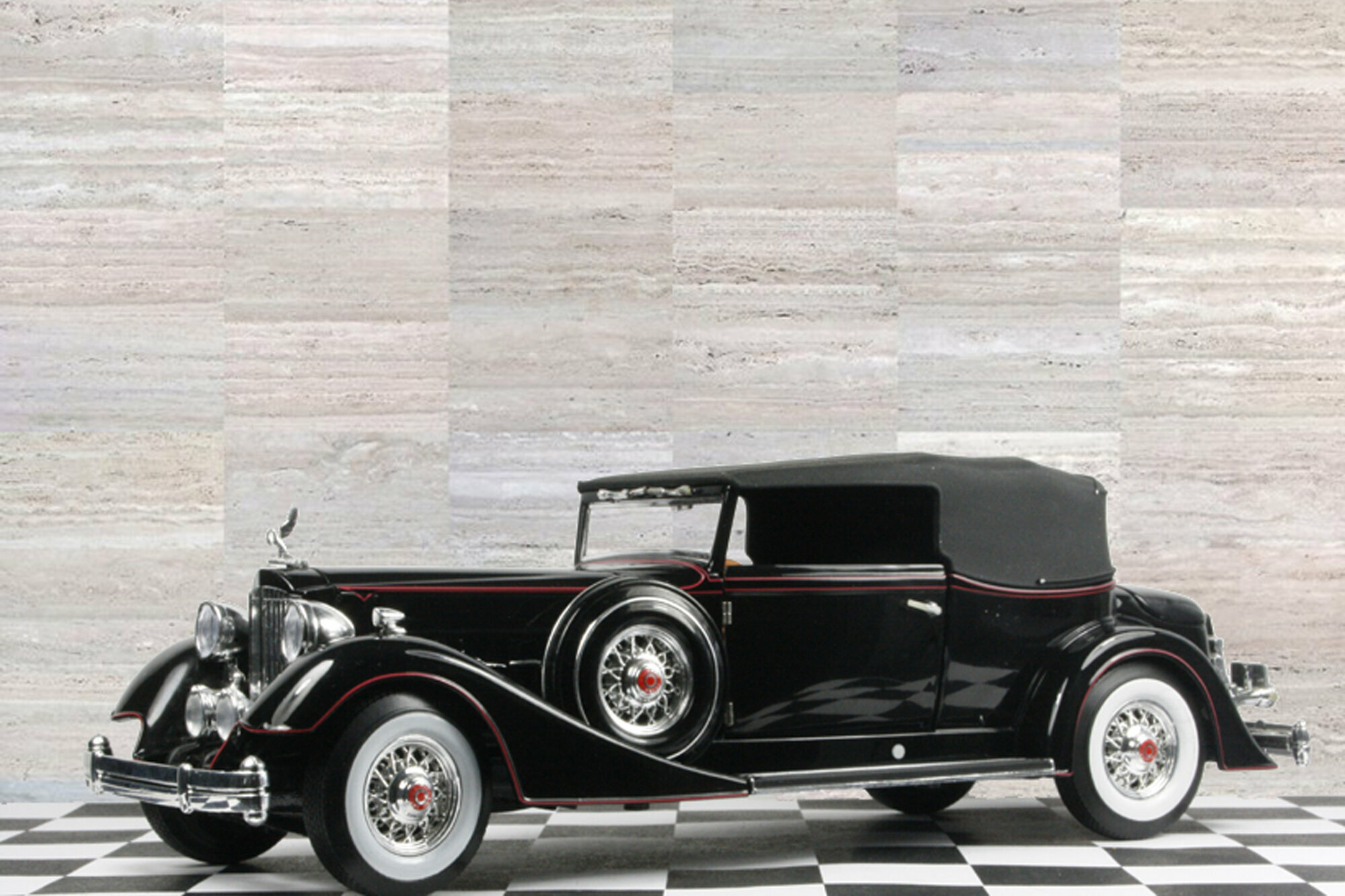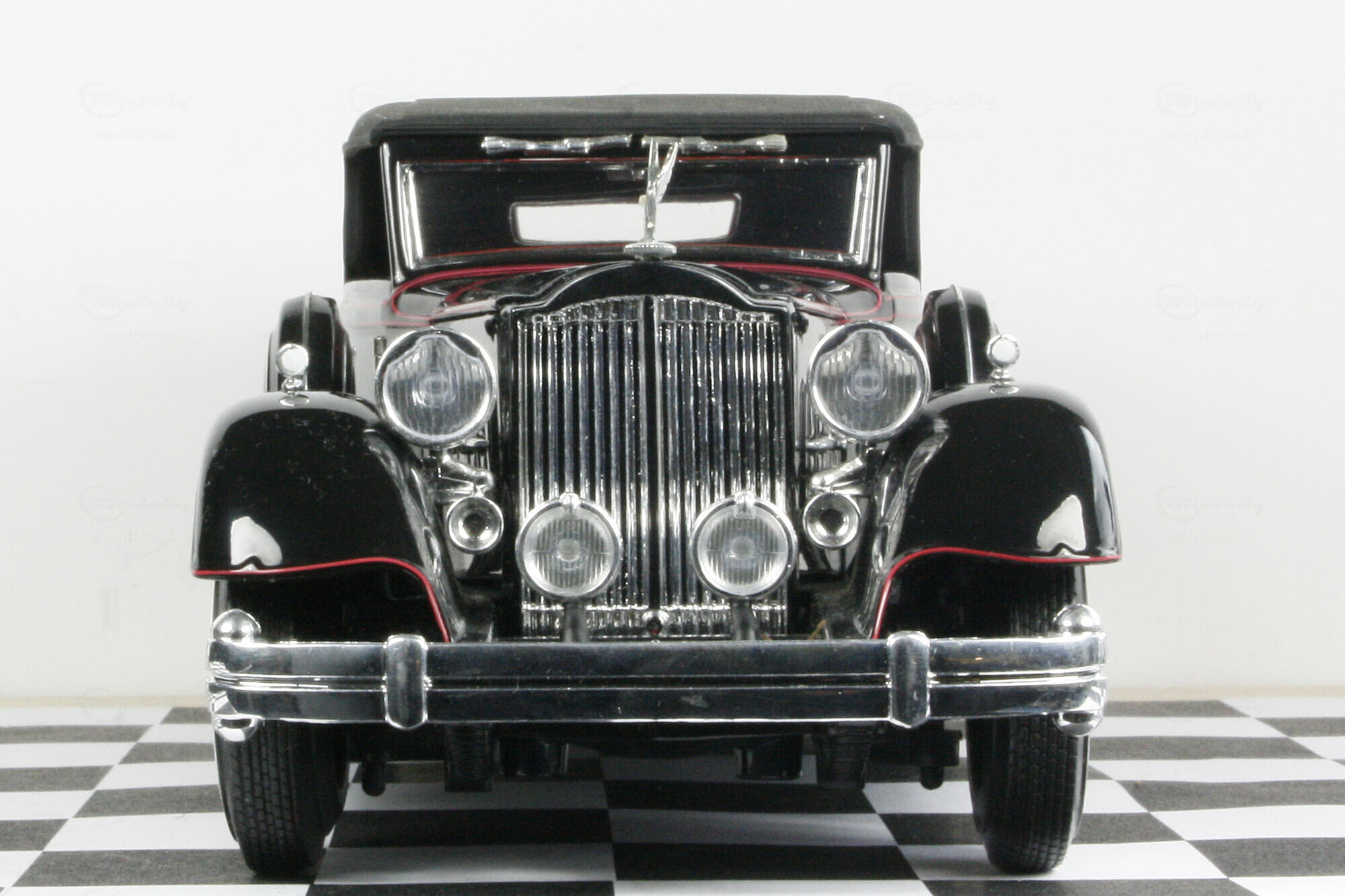 Auf der Weltausstellung 1033 stell Packard erstmalig seine neue Modellreihe „Twelve“ vor. Der Name kennzeichnete den 12 Zylindermotor der dieser Serie als Antrieb diente. Der Wagen wurde werksseitig mit bis zu 14 verschiedenen Karosserievarianten angeboten und von unabhängigen Karosseriebauern wie LeBaron und Dietrich kamen noch einmal genauso viele hinzu. Wie alle Packards war auch dieses Modell in der Luxus-Oberklasse angesiedelt und mit Preisen von 3.500,-- $ bis zu über 7.000,-- $ nur den Reichen vorbehalten. Das Vorbild für das Modell ist ein „Convertible Victoria“ aus der Werksfertigung von 1934 von welchem 244 Exemplare gebaut wurden. Er wurde von einem V12 „Twin Six“ Motor mit 7,3 l Hubraum und einer Leistung von 162 PS angetrieben und war 162 km/h schnell. Das 2,4 t schwere Fahrzeug war 5,50 m lang, 1,90 m breit und 1,60 m hoch. Bei Ende der Fertigung 1939 waren 5262 Twelve hergestellt worden, ein Nachfolgemodell wurde nicht vorgestellt.
