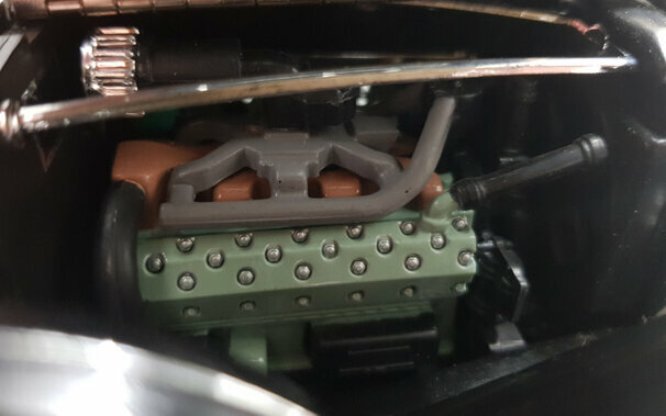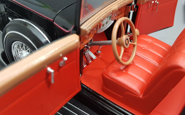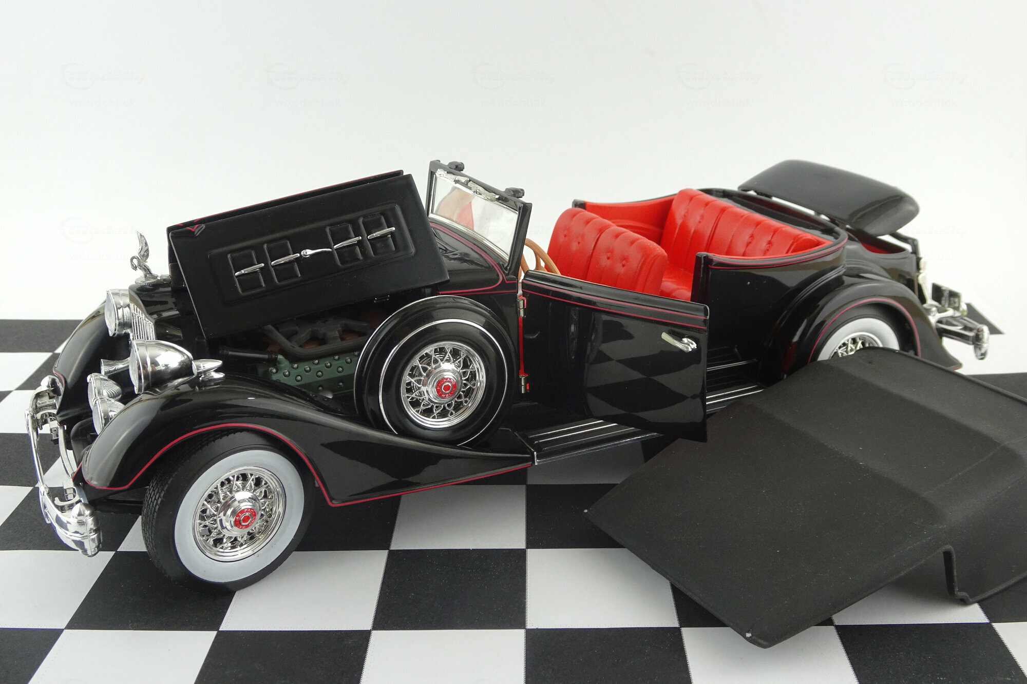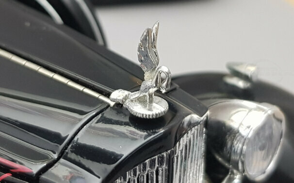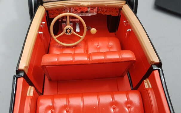 Anson brachte das Modell 2001 in 2 Farben auf den Markt. Das Modell hat eine ausgezeichnete Spritzgussqualität und auch die Lackierung ist von hoher Qualität. Besonders die Zierstriche in Rot und Chrom sind schön nachgebildet. Es verfügt über eine gute Detaillierung bis hin zur filigranen Kühlerfigur. Leider fehlen die Windabweiserscheiben am Rahmen der Frontscheibe. Motorhaube, Türen und Kofferklappe lassen sich öffnen und das Verdeck abnehmen. Der Motor ist recht ordentlich detailliert und im Innenraum sind alle Einzelheiten vollständig wenn auch teilweise einfach dargestellt. Maßstab und Proportionen stimmen nahezu exakt. Das Modell wird nicht mehr gefertigt und ist im Netzt vereinzelt zu bekommen. Die Preise für ein neues Modell in OVP liegen bei 100,-- bis 150,-- €, gebraucht gibt’s schon Angebote um die 50,-- €.