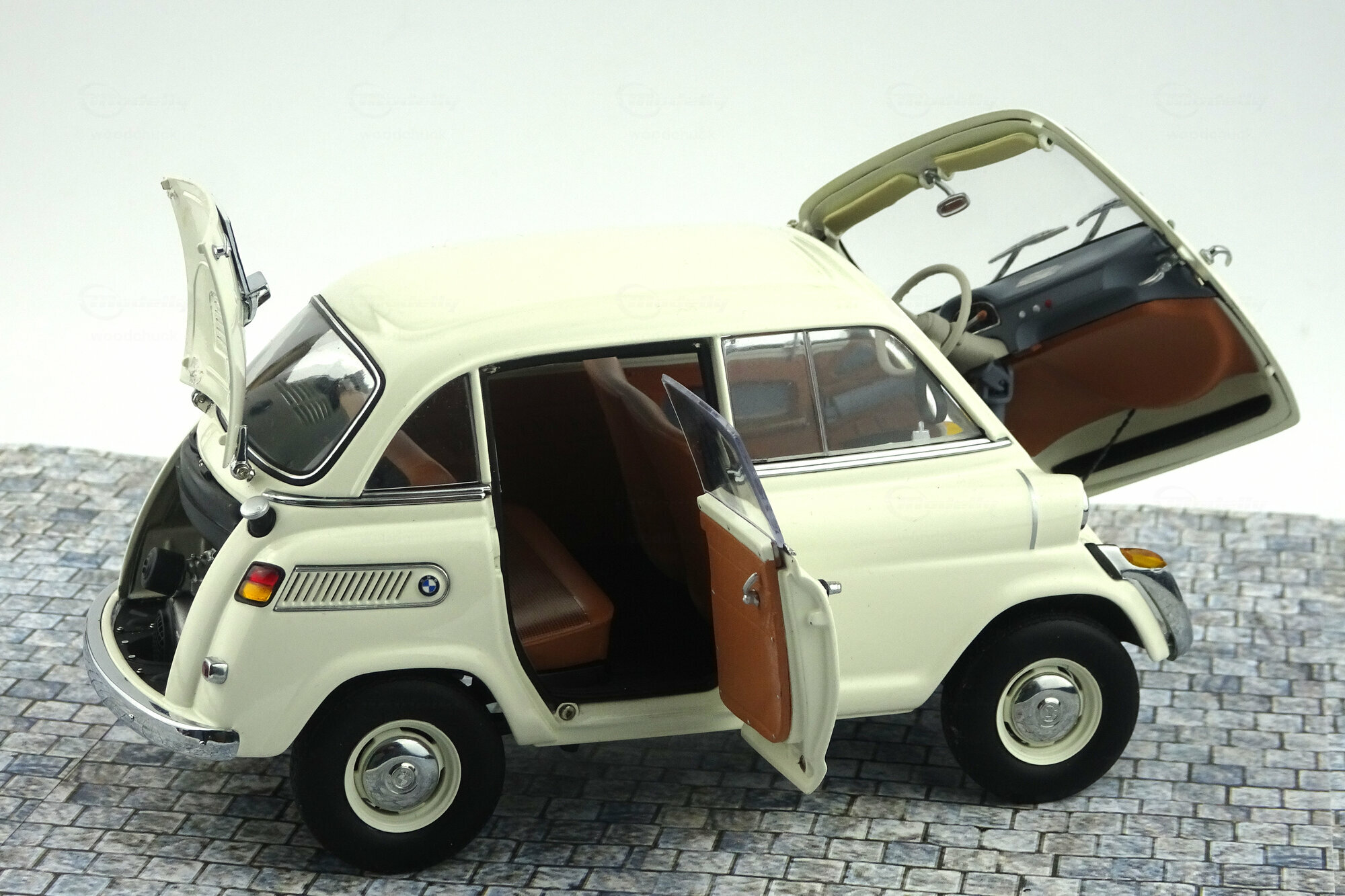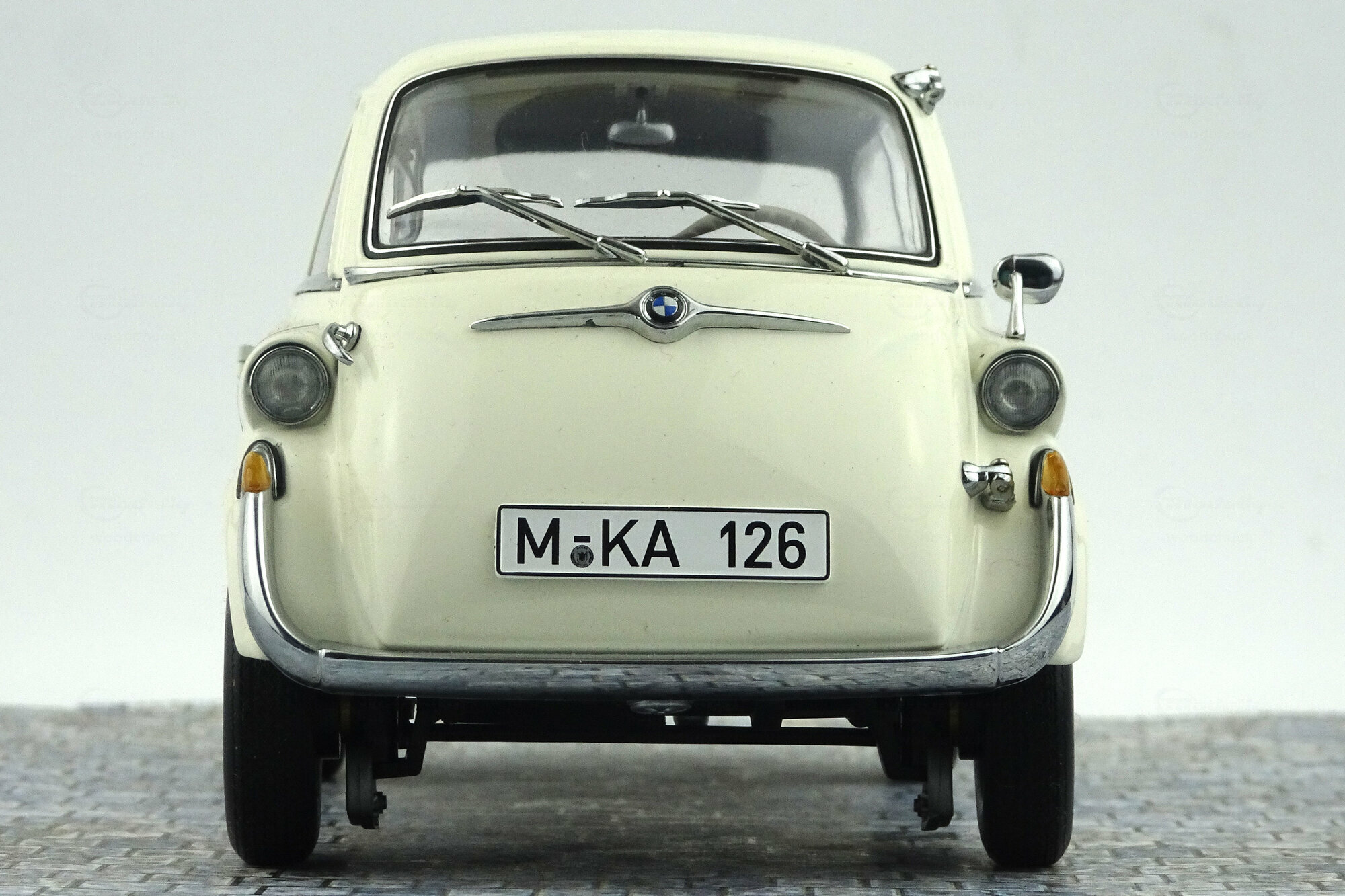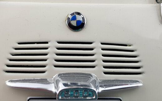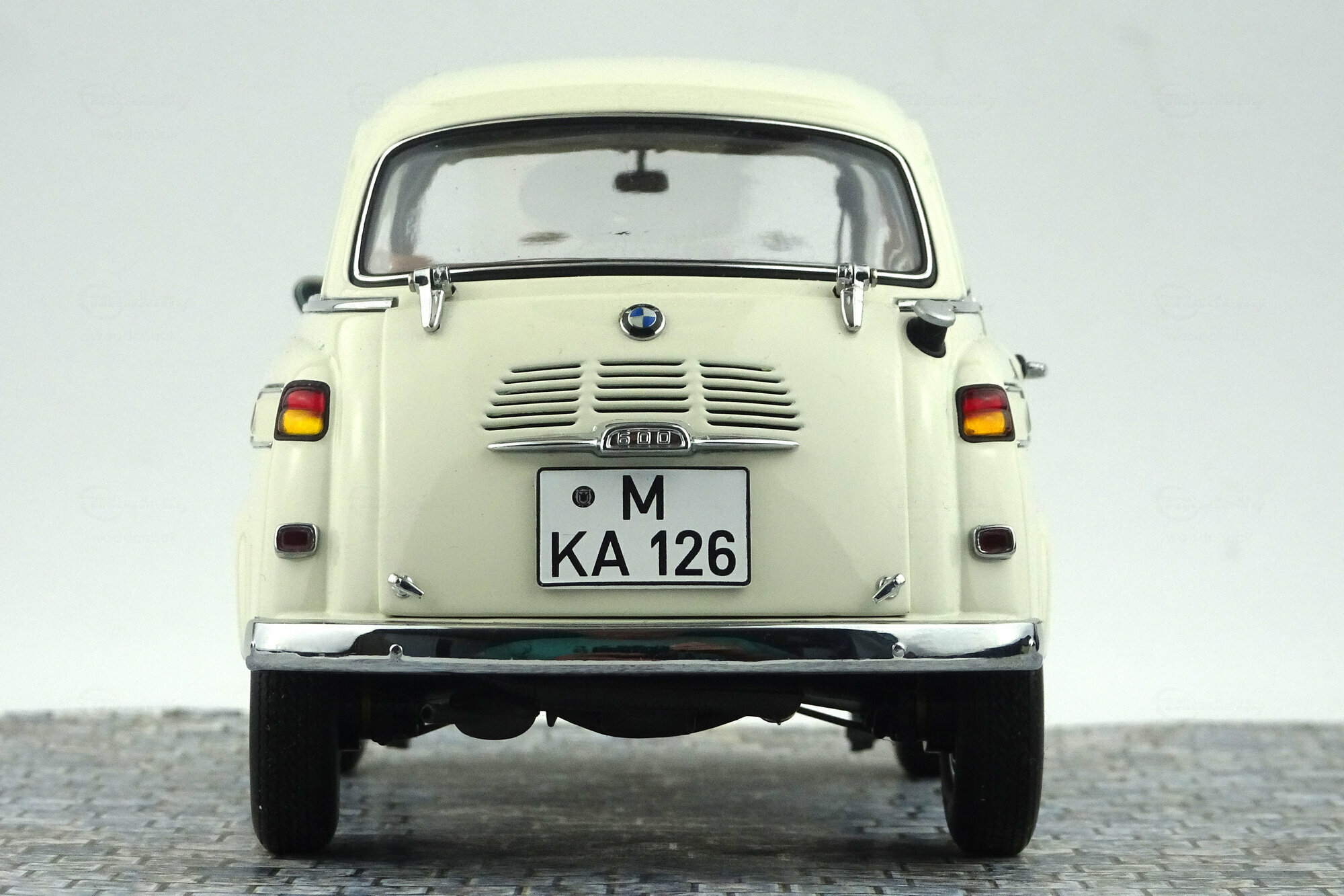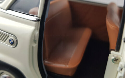 AutoArt brachte 2005 ein DieCast-Modell des BMW 600 von 1957 in verschiedenen Farbvarianten, darunter auch zweifarbige Versionen, heraus. Das Modell ist hervorragend gefertigt und besitzt eine tadellose Lackierung. Die umfangreichen äußeren Details sind sehr fein ausgeführt, gut gearbeitet und ausgezeichnet eingepasst. Mit dem Türgriff der Fronttür läßt sich diese sogar verriegeln. Auch die Räder und die Unterseite sind sehr gut gestaltet. Es lassen sich Fronttür, Seitentür sowie die hintere Motorklappe öffnen. Der darunter verborgenen Motor ist ausgezeichnet detailliert und gut gestaltet. Dieses setzt sich auf der Unterseite bei Auspuffanlage, Getriebe, Drehwellen und Federung fort. Auch im Innenraum wird dieses Niveau eingehalten. Feine Details und gur modellierte Sitze und Verkleidungen sind neben der mit zwei Kardangelenken versehenen Lenksäule die Highlights. Den Maßstab wird ebenfalls sehr gut eingehalten. Ein hervorragendes Modell dieses eigenwilligen deutschen Kleinwagens der Fünfziger was seinen damaligen Preis von um die 80 € absolut wert war. Es wird nicht mehr gefertigt und ist auch im Netz nur noch sehr selten und dann zu Preisen oberhalb von 300 € zu bekommen.