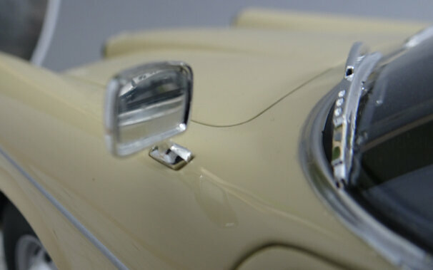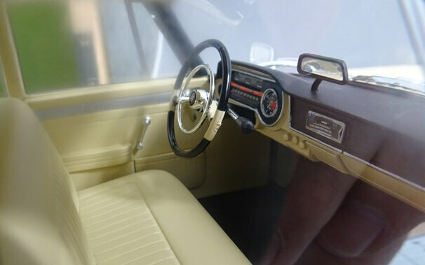 Das Resin-Modell von BoS Models der Berlina Version erschien im Februar 2018. Die Karosserie gibt die eigenwilligen Formen des Originals recht gut wieder und wartet zusätzlich mit einer sauberen, hell-beigen Lackierung und umfangreichen schönen Details auf. Im Innenraum ist ein gutes Lenkrad sowie Armaturenbrett gelungen, die weitere Einrichtung entspricht eher dem mittleren Standard. Der Maßstab wird nur akzeptabel eingehalten, insgesamt ist das Modell wohl etwas zu groß und in jedem Falle zu hoch. Wie auch immer, wieder ein seltenes Original welches BoS im großen Maßstab nachgebildet hat. Daher und auch wegen der limitierten Auflage ist der Preis ab 120 € wohl in Ordnung.