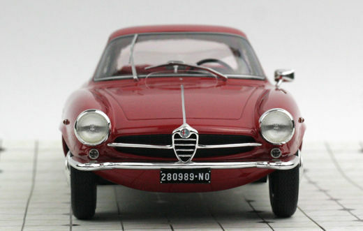 Das im April 2016 von Bos-Models erschienene Resin-Modell des Alfa Romeo Giulietta SS ist dem doppelt so teuren Modell von Technomodel aus Italien in keinster Weise unterlegen. Eine gut gearbeitete Karosserie und eine sehr gute Lackierung verbunden mit feinen Details, schönen Chromteilen und filigranen Schriftzügen und Emblemen ergeben einen hervorragenden Gesamteindruck. Von der Unterseite gibt es nichts zu berichten, die Räder, mit feinem Alfa-Emblem, sind jedoch gut gelungen. Im Innenraum findet man ein ausgezeichnet gestaltetet Armaturenbrett mit einem ebensolchen Lenkrad, sehr detaillierte Türverkleidungen und schön modellierte Sitze. Die Proportionen sind stimmig, alle Einzelmaße sind jedoch gegenüber 1:18 um ca. 2 mm zu klein, was jedoch tolerabel erscheint. Alles in allem ist das Preis-Leistungsverhältnis bei den ursprünglichen Einstandspreis von ca. 100€ durchaus in Ordnung. Aktuell ist das Modell weder bei den Händlern noch bei E-bay im Angebot.