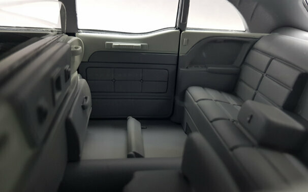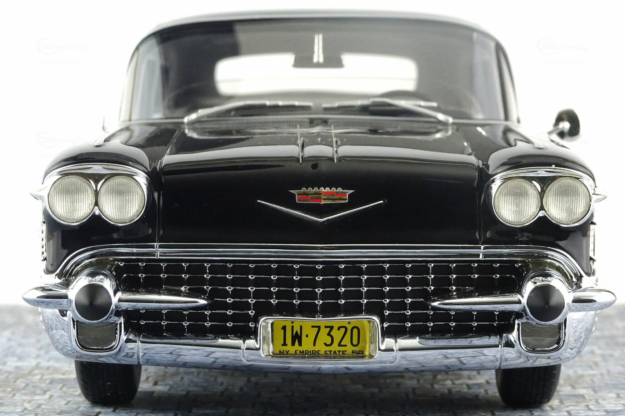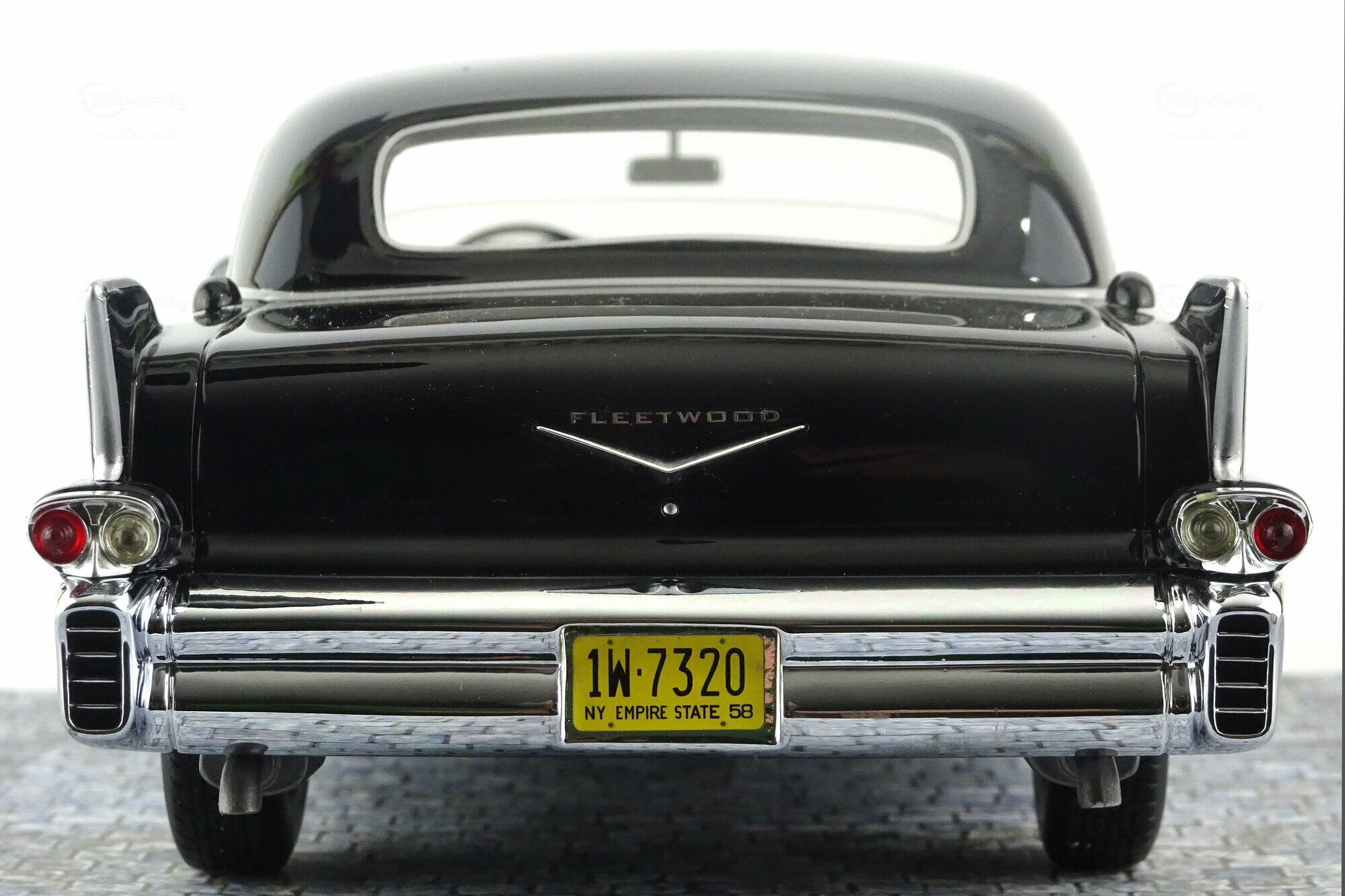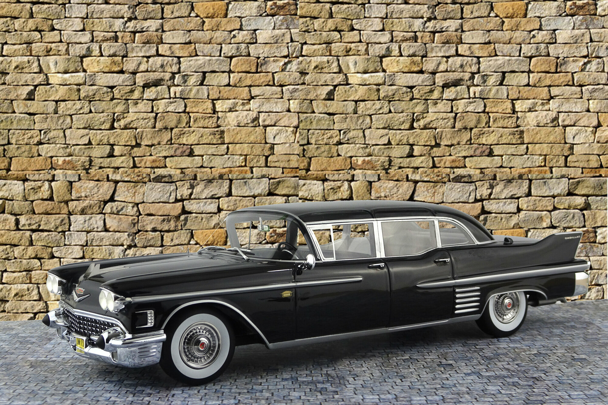 Im September 2017, eine Monat vor dem 67ziger Modell, erschien bei BoS Models ein Resinmodell des Cadillac Serie75 Fleetwood von 1958. Das schwarz lackierte Modell gibt die Erscheinung dieses riesigen Autos mit seine großen hackflossen und dem reichlichen Chromschmuck, auch wenn dieser teilweise in Silberfarbe ausgeführt ist, sehr schön wieder. Ebenso ist die Front mit der gewaltigen Stoßstange und dem über die gesamte Wagenbreite reichenden Kühlergrill gut nachgebildet. Im Innenbereich hat man, wenn auch teilweise recht einfach, versucht so viele Details wie möglich darzustellen. Der vordere Fahrerbereich ist mit einem sehr schönen Armaturenbrett und Lenkrad versehen. Auch die Türverkleidungen sind hier gut detailliert. Hinten, hinter der halb geöffneten Trennscheibe, geht es leider sehr einfarbig grau zu. Es sind zwar viele Details als Prägung vorhanden jedoch weinig farbliche Nuancierungen. Obwohl man den Unterschied zwischen Vorn( Fahrerbreich) und Hinten (Passagiere) hinsichtlich des Komforts erkennen kann wäre auch dort etwas schöner besser gewesen. Beim Maßstab braucht es etwas „guten Willen“, das Modell ist ein paar Millimeter zu lang und zu breit. Alles in Allem erhält man für 120 € sehr viel beeindruckendes Modell.