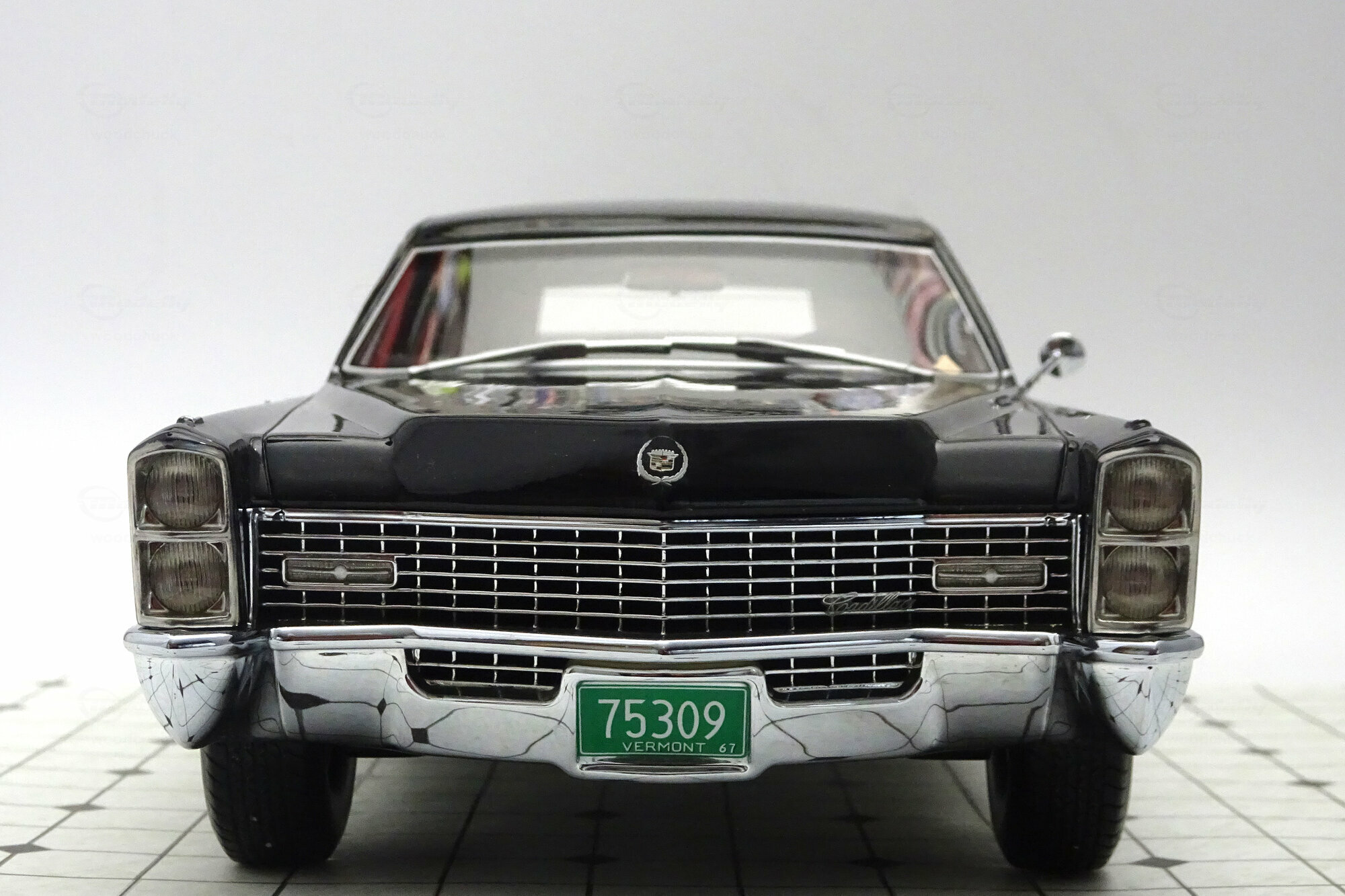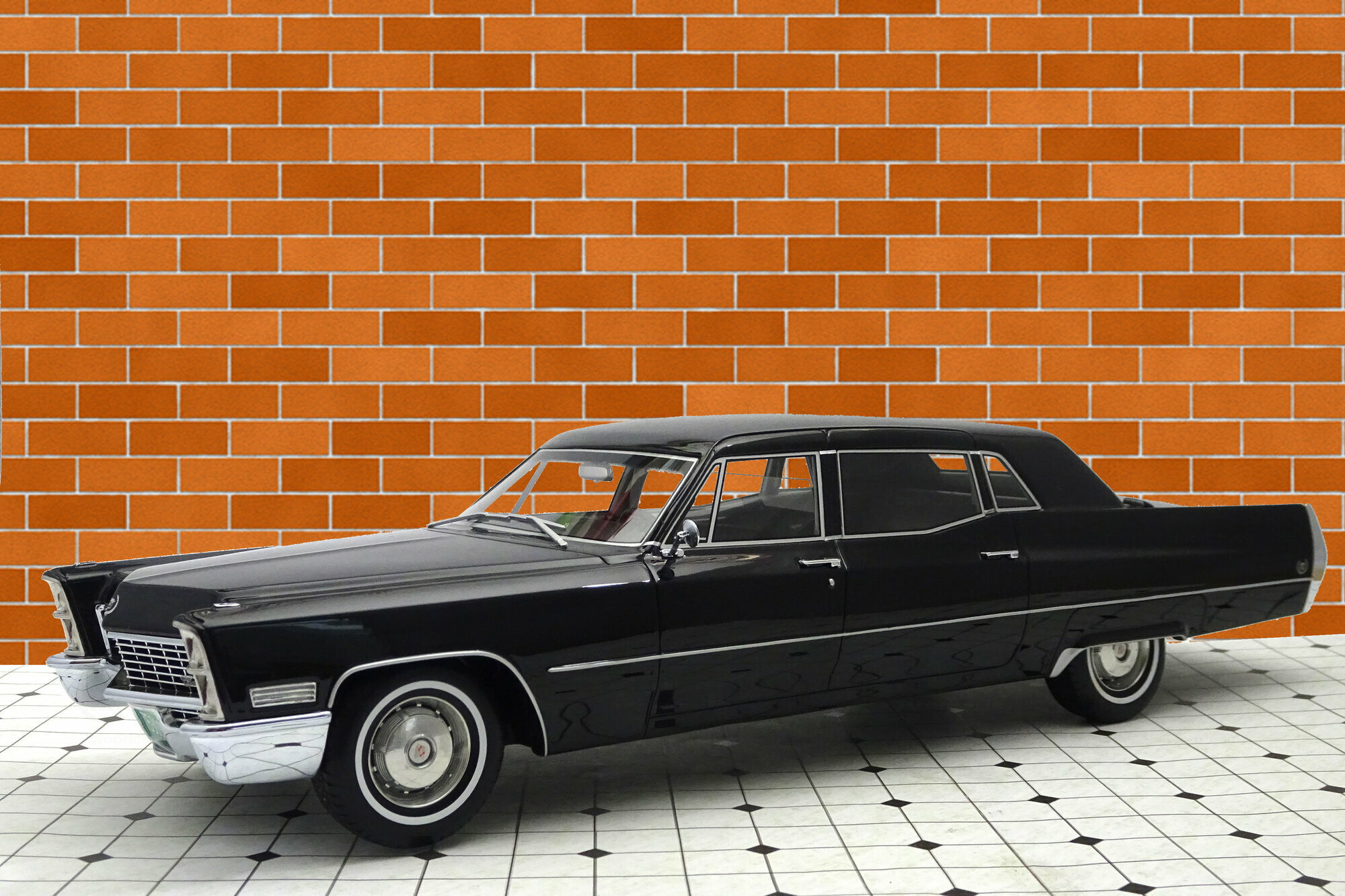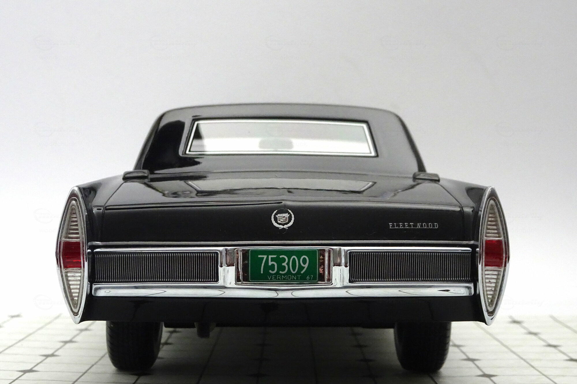 Ein Modell der 1967 Series 75 Fleetwood Limousine erschien im Oktober 2017 von BoS Models als Resinmodell. Es gibt die klaren, gestreckten Linien dieses wahrhaft riesigen Autos gut wieder und die schwarze Lackierung ist ebenfalls passend. Besonders die Front mit der gewaltigen Stoßstange, dem großen Grill und den übereinander angeordneten Scheinwerfern wirkt sehr imposant. Zusammen mit den anderen Details und den gelungenen Rädern ergibt sich ein schönes Gesamtbild. Leider kann man das vom Innenraum nicht sagen. Außer einem recht ordentlichen Decal für die Instrumente ist alles andere sehr einfach gehalten. Die wenigen Details sind nur geprägt und überwiegend nicht farblich abgesetzt und die Trennscheibe ist sehr dürftig ausgeführt. Man kann jedoch erkennen, dass beim Original der vordere Bereich für den Chauffeur und der hintere Passagierbereich deutlich unterschiedlich ausgestattet waren. Das Modell ist bei allen Maßen außer dem Radstand ein paar Millimeter zu groß ausgefallen. Als Fazit kann man sagen, dass man hier für den aktuellen Händlerpreis von 120 € eine Menge Modell bekommt.