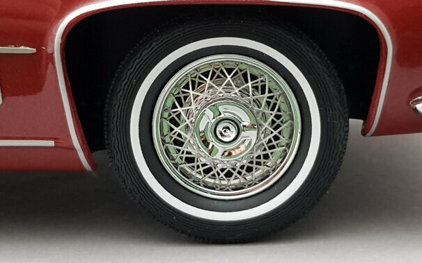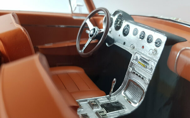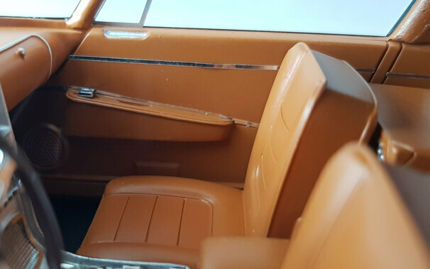 Ein Resinmodell des Dual Ghia L 6.4 erschien im August 2017 von BoS Models. Die sauber gearbeitete in einem schönen metallic dunkelrot lackierte Karosserie gibt die eleganten Linien des Ghia Designs sehr gut wieder. Auch die Details wie Fenstereinfassungen, Zierstreifen, Embleme sowie der Chromschmuck erzeugen zusammen mit den schönen Weißwandreifen auf Speichenfelgen einen hervorragenden Gesamteindruck. Auch der Innenraum hält dieses hohe Niveau. Mit viel Liebe zum Detail sind hier die Einzelheiten nachgebildet und farblich akzentuiert. Die Ledersitze sind gut modelliert und auch der spezielle Koffersatz für die Rückbank wurde nicht vergessen. Das Modell ist bei allen Maßen ca. 4mm zu groß geraten, nur der Radstand stimmt. Dennoch wirk es proportional korrekt. Dennoch halte ich den aktuellen Preis von 120 € für durchaus angemessen.