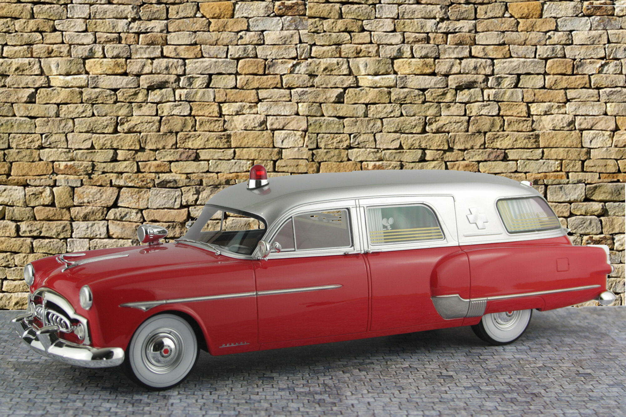 Die Henney Carriage Works wurde 1879 als Unternehmen zur Herstellung von Kutschen gegründet. 1927 firmierte sie dann in Henney Motor Company um, war aber bereits seit Anfang der 20ziger Jahre der bekannteste Hersteller von Ambulanz- und Bestattungsfahrzeugen in den USA. Diese basierten überwiegend auf LKW-Chassis von Dodge. Nach der Übernahme von Dodge durch Chrysler endete diese Beziehung und Henney begann n eigene Chassis herzustellen was jedoch bereits 1934 wieder aufgegeben wurde. 1938 wurde eine Verbindung zu Packard aufgebaut und seitdem verwendete Henney exklusiv nur noch Packard Fahrgestelle für seine Modelle. Während die Junior-Modelle die Fahrgestelle von Serienmodellen verwendeten, benötigten die Senior-Modelle die Commercial Varianten. Die Senior-Modelle des Jahres 1952 nutzten das Commercial Chassis Series 2513 mit einem Radstand von 156 Inch (3,96 m) welches für die Aufnahme der 6,50 m langen und 2 m breiten Karosserie der Bestattungs- und Ambulanzwagen ausreichte. Die Front, die Motorhaube sowie vordere und hintere Kotflügel waren dem Packard Patrician nach empfunden. Der hinten abgerundete Kombiaufbau stammte von Henney uns wies einige Besonderheiten auf. Die große Hecktür schwang zu Seite auf und die beiden Türen an den Seiten waren entgegengesetzt angeschlagen und auf eine B-Säule wurde verzichtet. Dies erlaubte bei Modellen Ohne feste Trennwand mit dem „Nu-3-Way“ System die Beladung mit einem Sarg oder einer Krankentrage sowohl von hinten als auch von den Seiten. Die baugleichen Ambulanzwagen waren zusätzlich noch mit kundespezifischen Warn- und Signalleuchten ausgestattet. Als Motor diente für beide Modelle der Serienmäßige 8-Zylinder Reihenmotor mit 5,5 Liter Hubraum und 152 PS Leistung. Vom Modell 1952 wurden ca. 320 Exemplare beider Varianten hergestellt. Als dann die Nachfrage nach Ambulanz- und Bestattungsfahrzeugen deutlich nachließ und gleichzeitig Packard ebenfalls in Bedrängnis geriet, stellte Henney 1954 diesen Fertigungszweig ein.