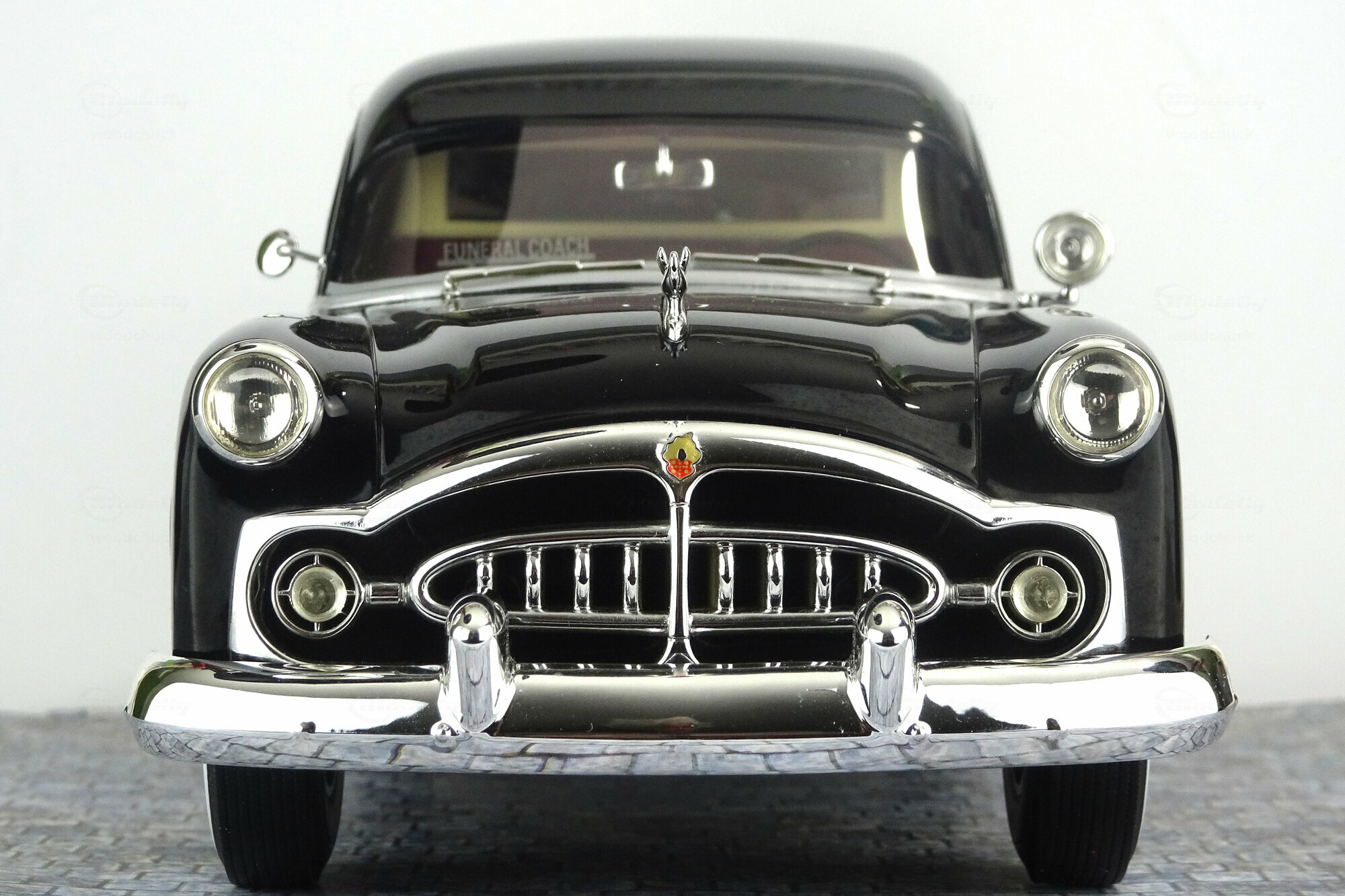 Bei BoS Models erschien im April 2018 ein Resinmodell des Henney Hearse Senior von 1952. Das selbstverständlich in Schwarz lackierte Modell gibt die Imposante Erscheinung dieses riesigen Fahrzeugs sehr schön wieder. Das geschwungene Design des Henny Entwurfes verbunden mit den klassischen Linien des Packard Patrician kommen sehr gut zur Geltung. Der Chromschmuck und die äußeren Details, wie die entgegengesetzt angeschlagenen Türen, die große Hecktür, der Suchscheinwerfer am linken Außenspiegel sowie die filigrane Kühlerfigur, sind gut nachgebildet. Innen findet man vorn im Fahrerbereich ein gut gestaltete Lenkrad und Armaturenbrett sowie ordentlich modellierte Sitze und Türverkleidungen. Im hinteren Abteil setzt sich die Detaillierung in gleicher Weise fort und man findet dort neben einem kleinen Schrank einen hellbraunen Sarg bei welchem leider auf eine holznachbildung verzichtet wurde. Ebenso schade ist es, dass die Fenstergardinen aus Plastik nachgebildet wurden, dies sieht zwar ordentlich aber leider auch etwas unecht aus. Soweit eine Überprüfung aufgrund fehlender Daten möglich war, wird der Maßstab eingehalten. Das Modell ist ab 150 € im handel erhältlich und man bekommt eine Menge Modell dafür.