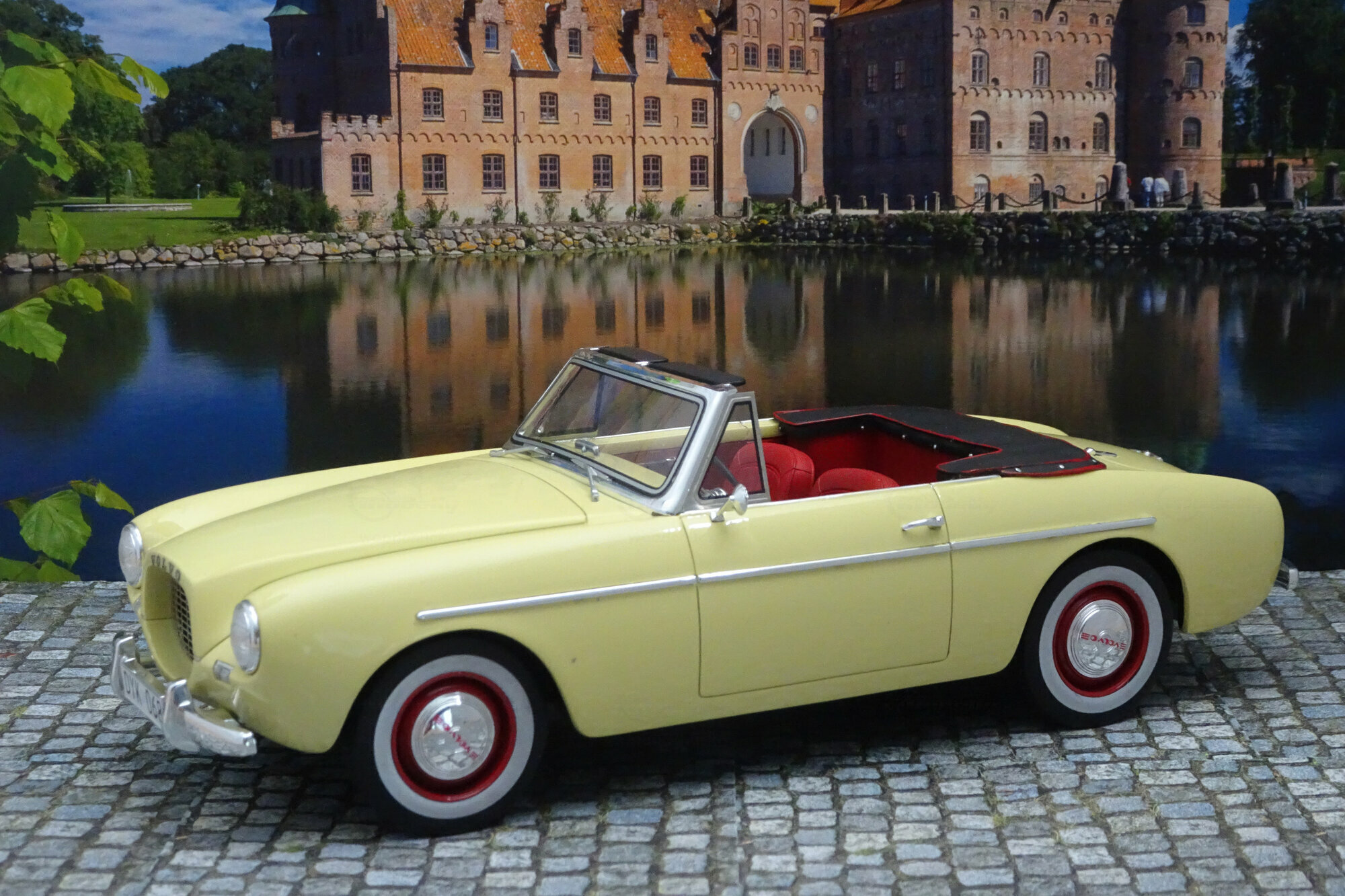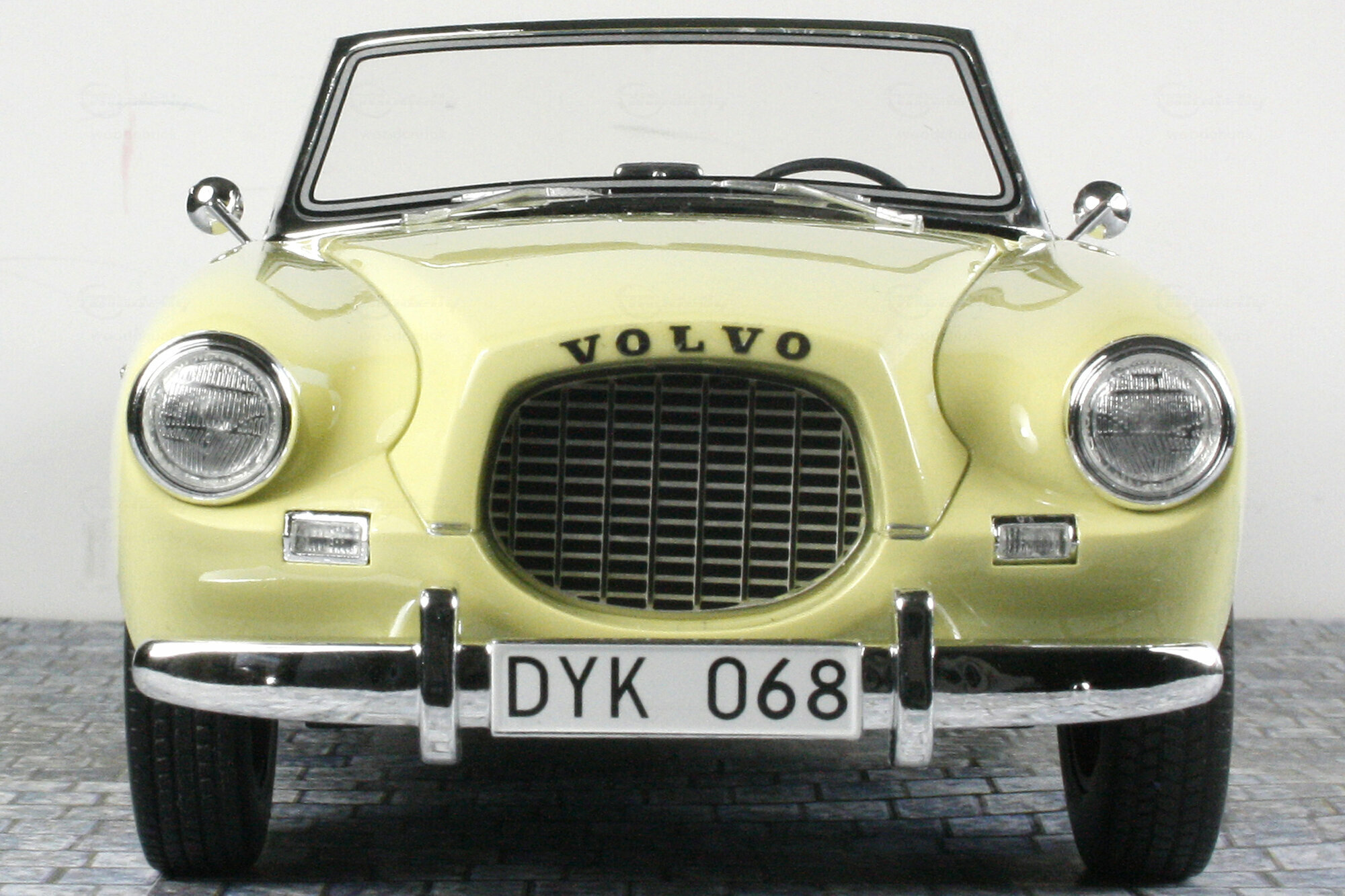 Der schwedische Automobilhersteller Volvo stelle 1954 mit dem P 1900 seinen ersten Sportwagen vor. Die Idee ging auf den Volvo-Mitbegründer Assar Gabrielsson zurück der von den Möglichen des GFK-Karosseriebaus wie er z.B. seit 1953 bei der Corvette eingesetzt wurde begeistert war. Der P 1900 erhielt eine solche GFK-Karosse die auf einem Stahrohrrahmen befestigt war. Die meisten anderen Komponenten wie auch der Motor stammten vom PV 444. Dieser 4-Zylinder Reihenmotor hatte 1,4 Liter Hubraum und leistete 71 PS. Damit war das 4,22 m lange, 1,57 breite und 969 kg leichte Modell 150 km/h schnell. Es gab nur eine zweisitzige Cabrio-Version was erkennen lässt, dass man auf den Export ausgerichtet war, da Skandinavien nicht unbedingt eine Gegend für Cabrios ist. Das Fahrzeug wurde ab 1956 gefertigt und das Interesse war groß, die Absatzzahlen blieben jedoch weit hinter den Erwartungen zurück. Das mag an der Tatsache, daß Volvo nicht als Sportwagen- Hersteller galt, aber auch an dem extrem hohen Preis von fast 20.000 schwedischen Kronen gelegen haben. Sicher haben aber die massiven Qualitätsmängel des Wagens dazu beigetragen. Diese haben schnell der Ruf des Modells und teilweise auch Volvo selbst geschadet. So wurde die Produktion bereits 1957 nach nur 67 gebauten Fahrzeugen, von denen heute noch 50 existieren, eingestellt. Ein Nachfolger erschien erst 1961 mit dem P 1800.