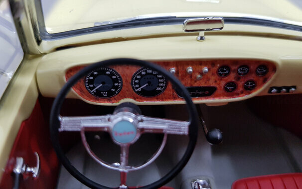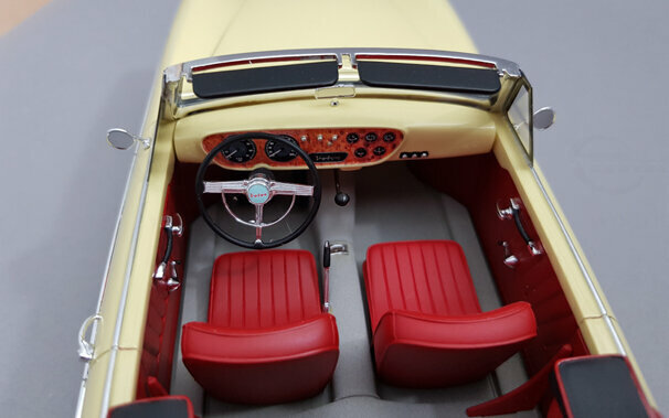 BoS Models nahm sich 2014 dieses seltenen Schweden an und präsentierte ein Resinmodell des P 1900 Sport. Die äußeren Formen sind gut getroffen und ach die Verarbeitung und Lackierung des bei Ottomobile gefertigten Modells sind ohne Tadel. Die äußeren Details sind sehr schön und filigran ausgeführt und auch die Räder sind absolut passend. Der gut einsehbare Innenraum mit einem sehr gut gelungenen Armaturenbrett in Wurzelholz, feinem Lenkrad und Schalthebel, Teppichbodennachbildung, gut modellierten Sitzen und detaillierten Türverkleidungen ist hervorragend gestaltet. Der Maßstab wird gut eingehalten und der Gesamteindruck ist stimmig. Ein schönes Modell dieses recht seltenen Fahrzeugs was seine Einstandspreis von 100 € absolut wert war. Aktuell gibt’s den P1900 im Handel für 120 €.