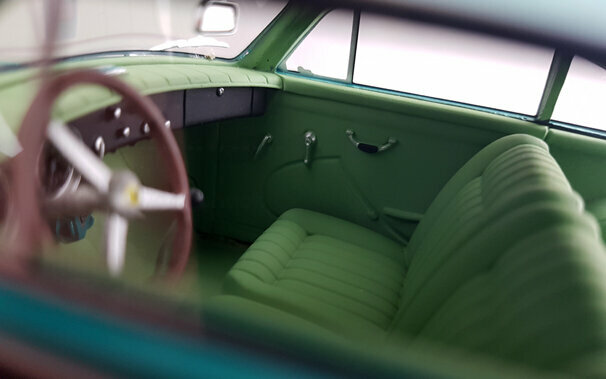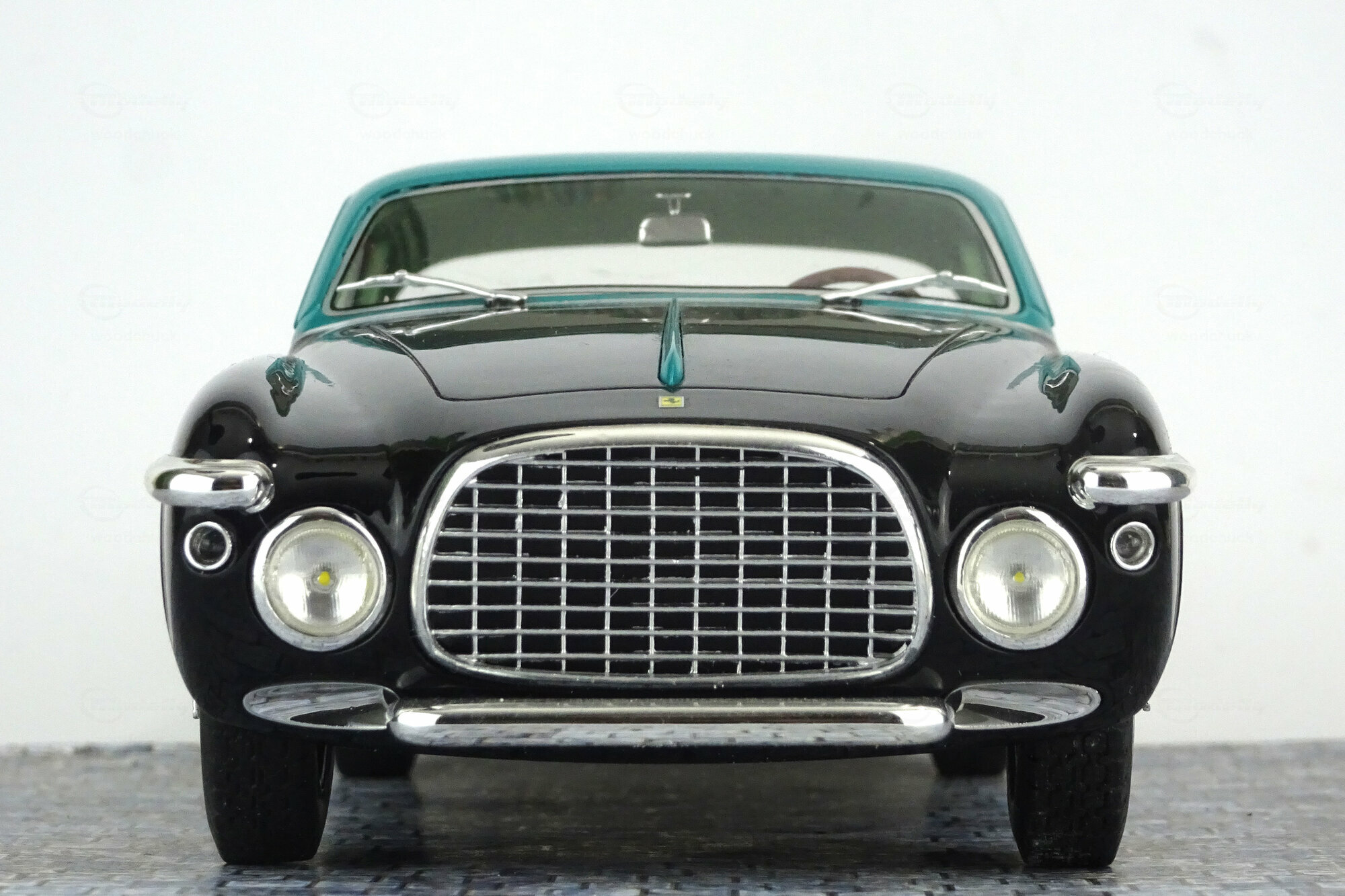 CMF brachte den Ferrari 212 Europa Vignale im November 2017 als Resin-Modell heraus. Die Karosserie ist gut modelliert und mit einer authentischen Lackierung in Schwarz mit metallic-grünem Dach des Chassis 0267 EU, welches auch das Vorbild für das Modell war, versehen. Die Speichenräder aus geätztem material sind ebenfalls recht ordentlich gelungen. Leider erscheint der Kühlergrill etwas zu breit und der Versatz der beiden Rückleuchten ist zu stark. Die beiden Auspuffrohre bestehen nur aus kurzen Endstücken welche direkt unter das Chassis geklebt waren und bei meinem Modell leider fast abfielen. Überhaupt war die Verarbeitung des Modells etwas nachlässig, so war bei mir z. B. das Lenkrad abgeknickt und lag im Innenraum. In diesem findet man noch ein ganz anständig gestaltetes Armaturenbrett, ansonsten ist aber „Karo-Einfach“ angesagt. Auch beim Maßstab war man etwas ungenau, das Modell ist zu lang und zu breit, auch wenn die Proportionen stimmig aussehen. Als Fazit bleibt: Auch wenn dieses eine auf 300 Stück limitierte Auflage ist, kann man von einem Modell für 170 € etwas mehr erwarten. Das nahezu zeitgleich erschienene Modell von Matrix ist hier wohl deutlich besser, allerdings muß man hier nochmals 80 € aufsatteln.