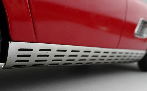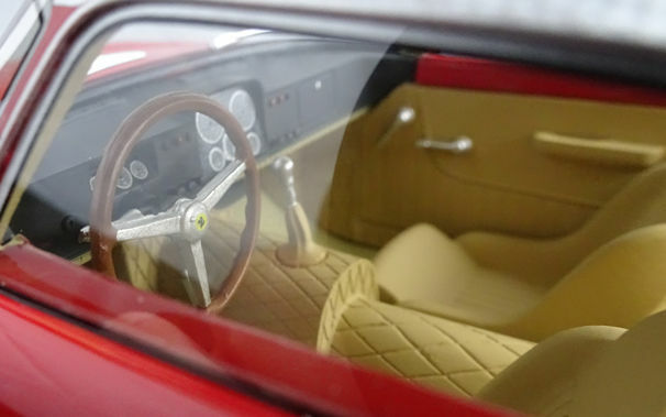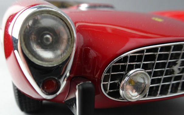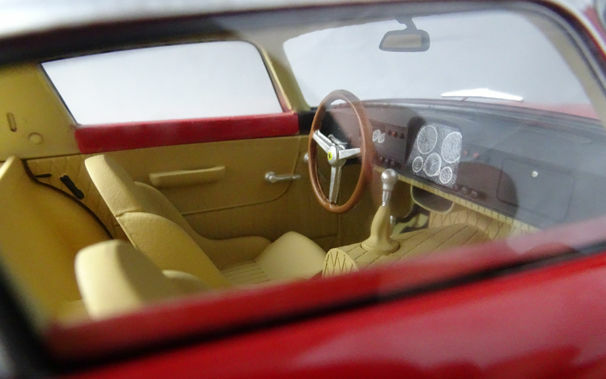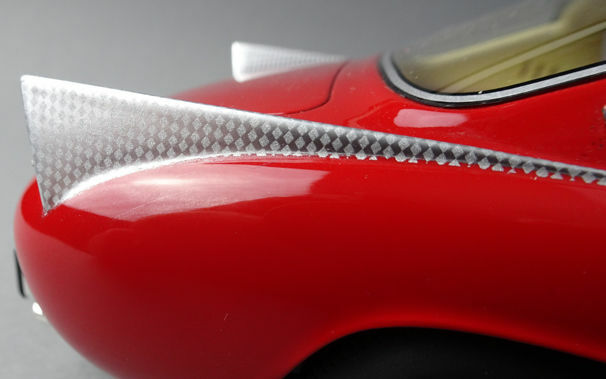 CMF brachte das Scaglietti Modell des 410 im Dezember 2017 als Resinmodell heraus. Es hat eine gut gearbeitete Karosserie mit einer schönen dunkelroten Lackierung des neu aufgebauten Fahrzeugs (das Original war Schwarz). Auch die Edelstahlnachbildung am Dach und an den Heckflossen ist recht gut gelungen, an den Schwellern jedoch ist etwas unsauber gearbeitet worden. Die sonstigen Details sind gut ausgeführt und man hat dem Modell auch sehr schöne Speichenräder gegönnt. Im Innebereich findet an ein ordentliche gestaltetes Armaturenbrett und Lenkrad welche meines Erachtens etwas zu senkrecht steht. Die gesamte Innenausstattung ist sehr schön, wie beim Original, in hellem braun modelliert, wirkt aber durch die wenigen Farbakzente etwas steril und leblos. Die Maße stimmen, und die Proportionen wirken passend. Ein schönes Modell dieses Unikats wenn auch der Preis von ca. 170 € schon etwas gewöhnungsbedürftig ist.