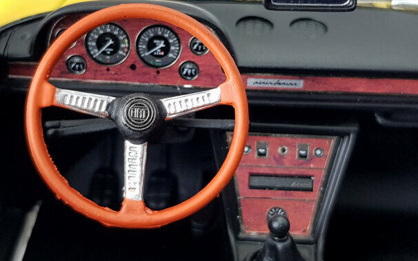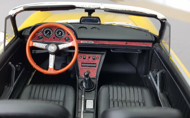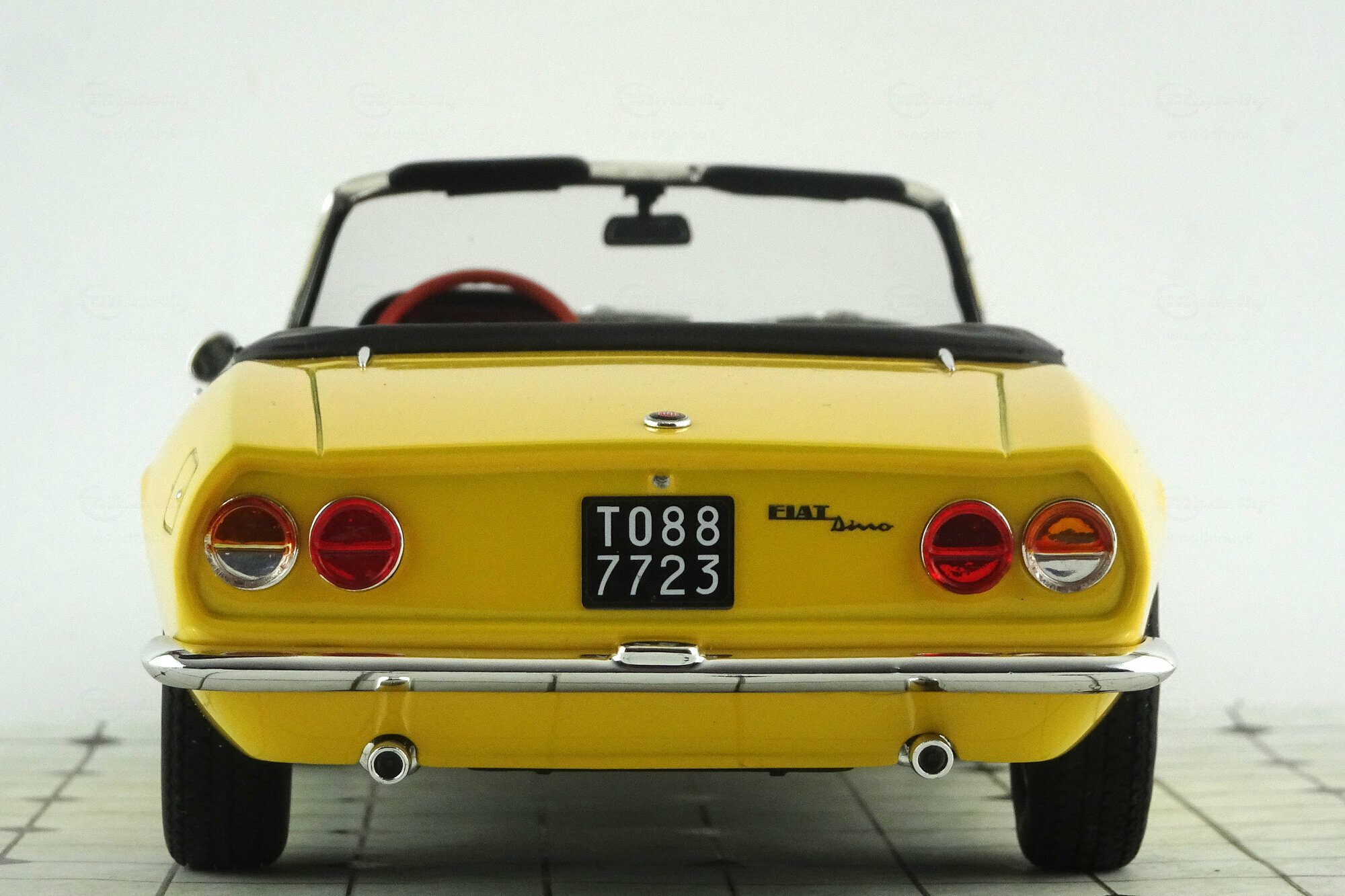 Das Resinmodell des Dino Spider von Cult Scale Models erschien im Dezember 2019. In Ferrari-Gelb gehalten gibt die gut gearbeitete Karosserie die rundlichen Formen des Pininfarina-Entwurfes sehr gut wieder. Die äußeren Details, besonders die feinen Schriftzüge und Embleme, sind ebenso wie die Räder gut gelungen. Im Innenraum findet man eine schöne Gestaltung des Armaturenbretts, der Mittelkonsole und des Lenkrades. Auch die Sitze sind ordentlich modelliert. Leider wurde der Bodenraum völlig vernachlässigt. Der Maßstab wird auffallend gut eingehalten. Alles in Allem ist das Modell seinen Einstandspreis von ca. 140 € durchaus wert. Parallel gibt es auch ein Modell von Laudoracing für ca. 100 € über dessen Qualität ich jedoch keine Informationen habe.