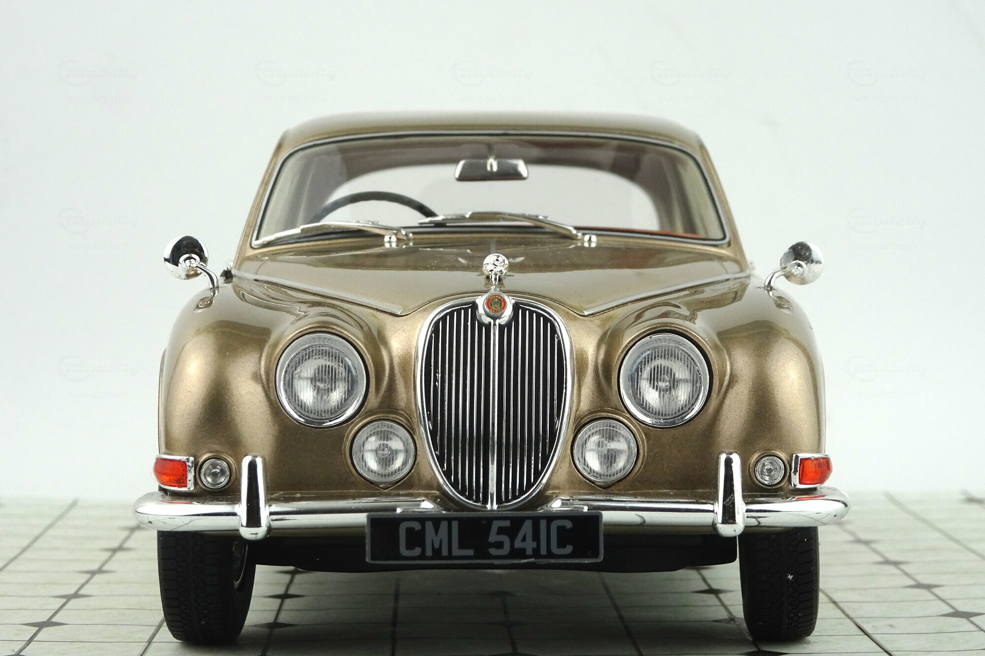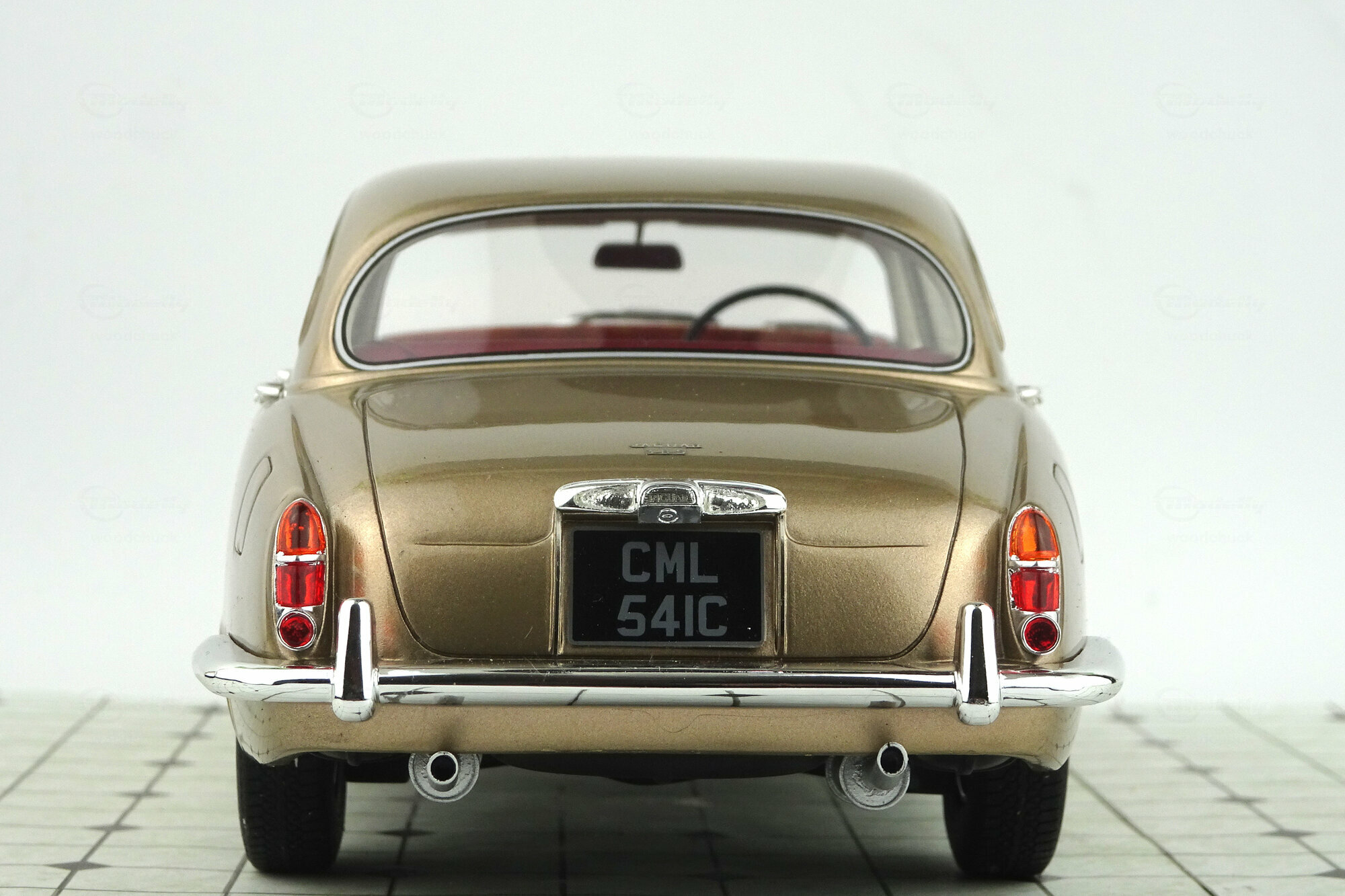 Cult Scale Models brachte im März 2019 ein Resinmodell des 3.8 S von 1965 heraus. Das Modell ist gut verarbeitet und mit einer tadellosen Lackierung in Gold-metallic versehen. Die Kontur stimmt überwiegend, nur in der Fronpartie hat sich ein Fehler eingeschlichen. Die Motorhaube fällt beim Original nach vorn deutlich stärker und gerundet ab sodass der Kühlergrill schräg nach hinten steht. Dies ist am Modell leider nicht wiedergegeben. Die äußeren Details sind filigran ausgeführt und von guter Qualität was auch für die Räder gilt. Im Innenraum hat man versucht das bei Jaguar obligatorische Wurzelholz nachzubilden was leider nur sehr unvollkommen gelungen ist. Der Instrumentenbereich ist recht ordentlich geworden, Sitze und Verkleidungen sind akzeptabel. Beim Maßstab, der ansonsten gut eingehalten wird, fällt leider auf, daß das Modell 5 mm zu lang geraten ist. Dennoch ein recht schönes Modell was jedoch mit einem Preis von ca. 160 € etwas zu teuer geraten ist.