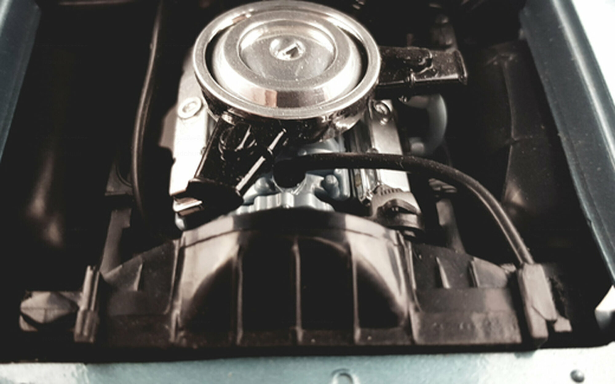 gestalteten und detaillierten Motor nebst Motorraum. Auch im Innenraum setzt