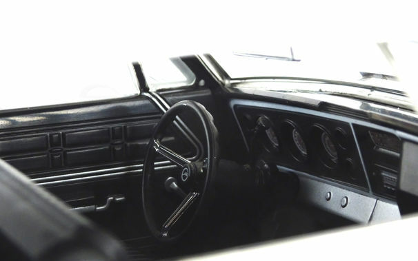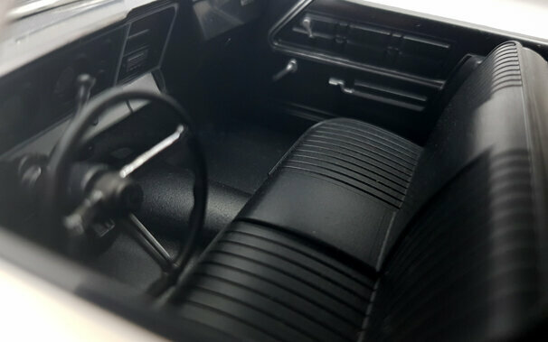 Greenlight brachte das Modell ursprünglich in schwarz als „Supernatural“-Variante mit 2 Figuren heraus. Später erschienen dann noch „zivile“ Varianten in blau/weiß und Weiß. Das Modell hat eine Metallguss-Karosserie von guter Qualität und die Lackierung ist sauber ausgeführt. Leider hat Greenlight das Modell wie ein Resin-Modell gestaltet und so gibt es keine zu öffnenden Teile und damit auch keine Motornachbildung. Das Fahrgestell auf der Unterseite ist nur rudimentär dargestellt und die Vorderräder sind nicht lenkbar, schade. Der Innenraum, der durch die Fenster nur schwer einsehbar ist, wurde einfach aber vollständig ausgestattet, hier sind Resin-Modelle präziser. Schön gelungen sind der Kühlergrill und die verschiedenen Schriftzüge und Logos am Modell. Der Preis von um die 70,-- € ist dennoch meines Erachtens zu hoch bemessen.