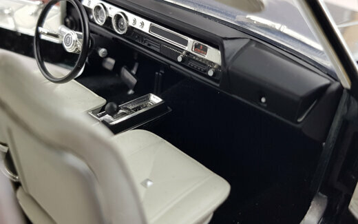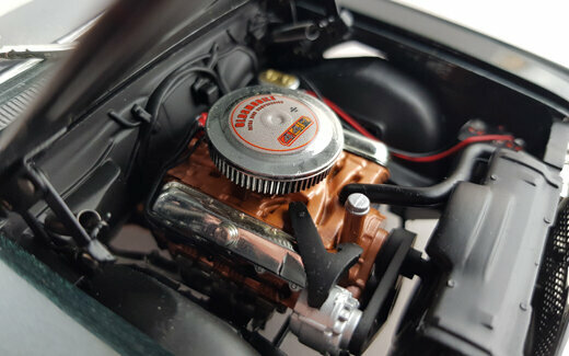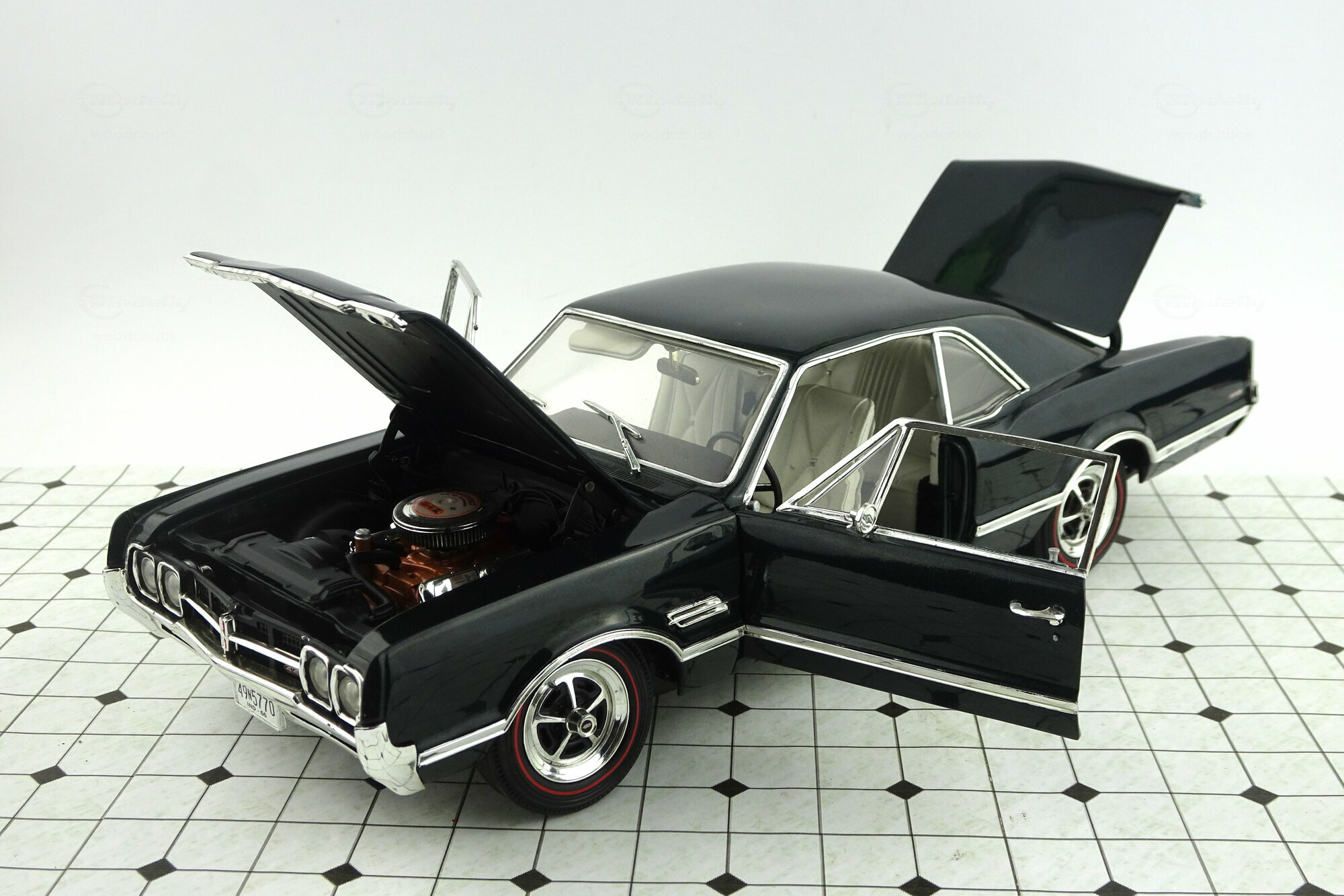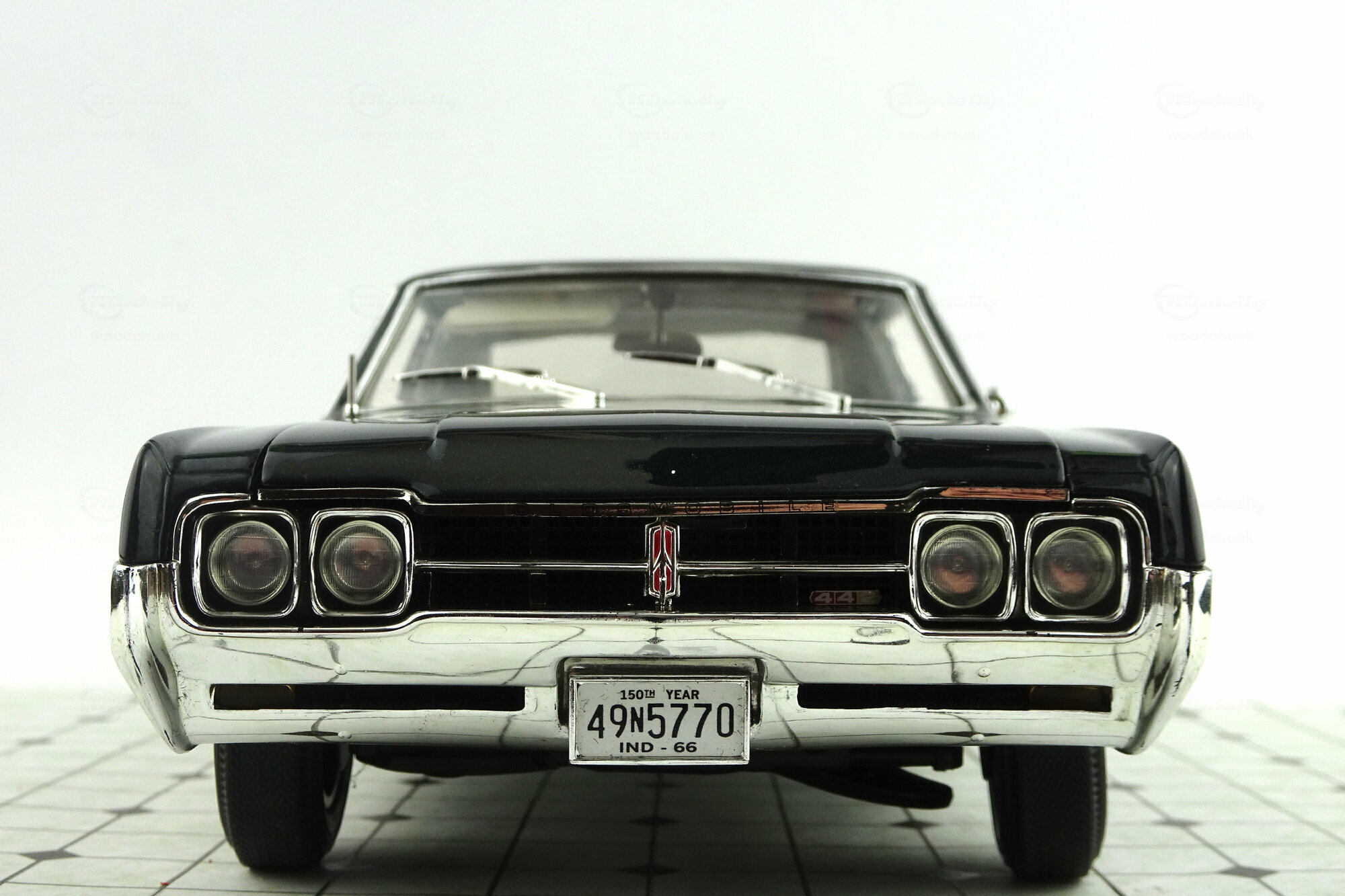 Bei Highway 61 erschien 2005 ein DieCast-Modell des Cutlass 4-4-2 von 1966 in 3 Farbvarianten. Das sauber gegossene und mit einem pearl-effect-Lack versehene Modell gibt den GTO-Konkurrenten sehr gut wieder. Die äußeren Details sind von guter Qualität und ach die Räder sind gelungen und entsprechen dem damaligen Zeitgeschmack. Die Unterseite ist gut detailliert und hat natürlich eine mitdrehende Kardanwelle. Es lassen sich Motorhaube, beide Türen sowie Kofferraum öffnen. Dieser ist mit einem gestreiften Boden ausgestattet und beherbergt das Reserverad. Die Motorhaube verbirgt einen gut detaillierten Motorraum sowie den schön gestalteten und ebenso gut detaillierten V8 Motor. Der Innenraum punktet mit sehr schon modellierten Sitzen, gut gearbeiteten Türfüllungen, Veloursboden sowie einem detaillierten Armaturenbrett. Der Maßstab wird gut eingehalten. Wieder einmal ein sehr schönes Modell mit guter Verarbeitung aus dem Hause Highway 61 welches in jede Muscle-Car Sammlung gehört. Leider wird es nicht mehr gefertigt und ist auch im Netz kaum zu bekommen. Die gezahlten Preise belaufen sich auf min. 185 € plus Versand.