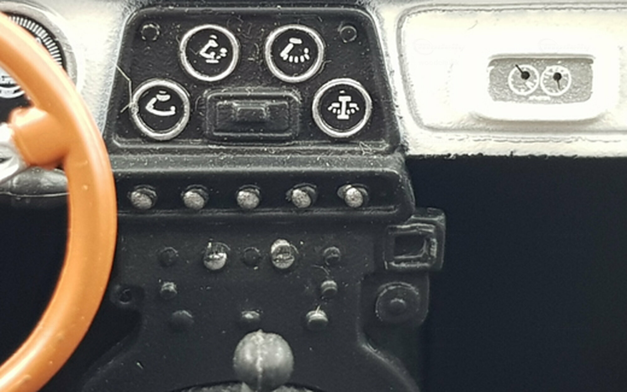 etwas zu schmal geraten ist, ist recht gut detailliert, das Lenkrad sieht schön