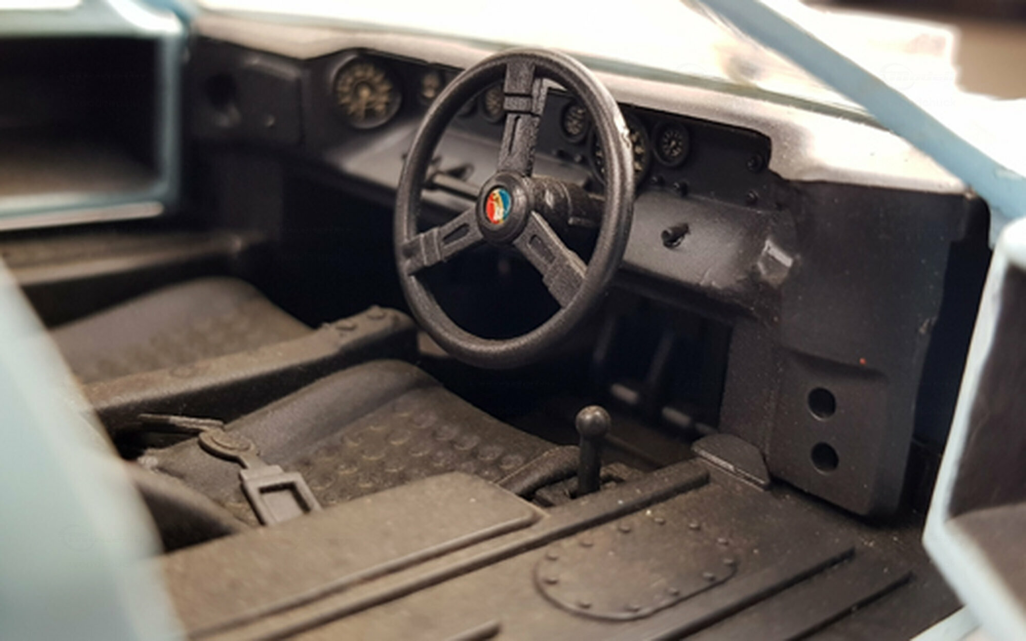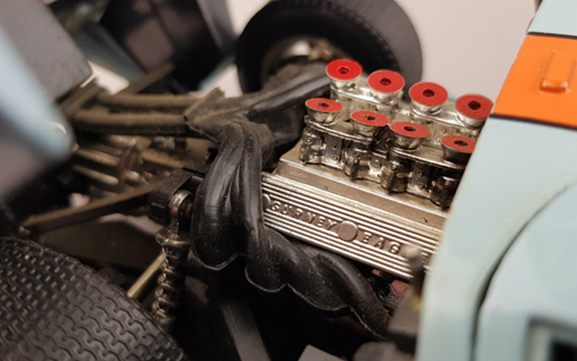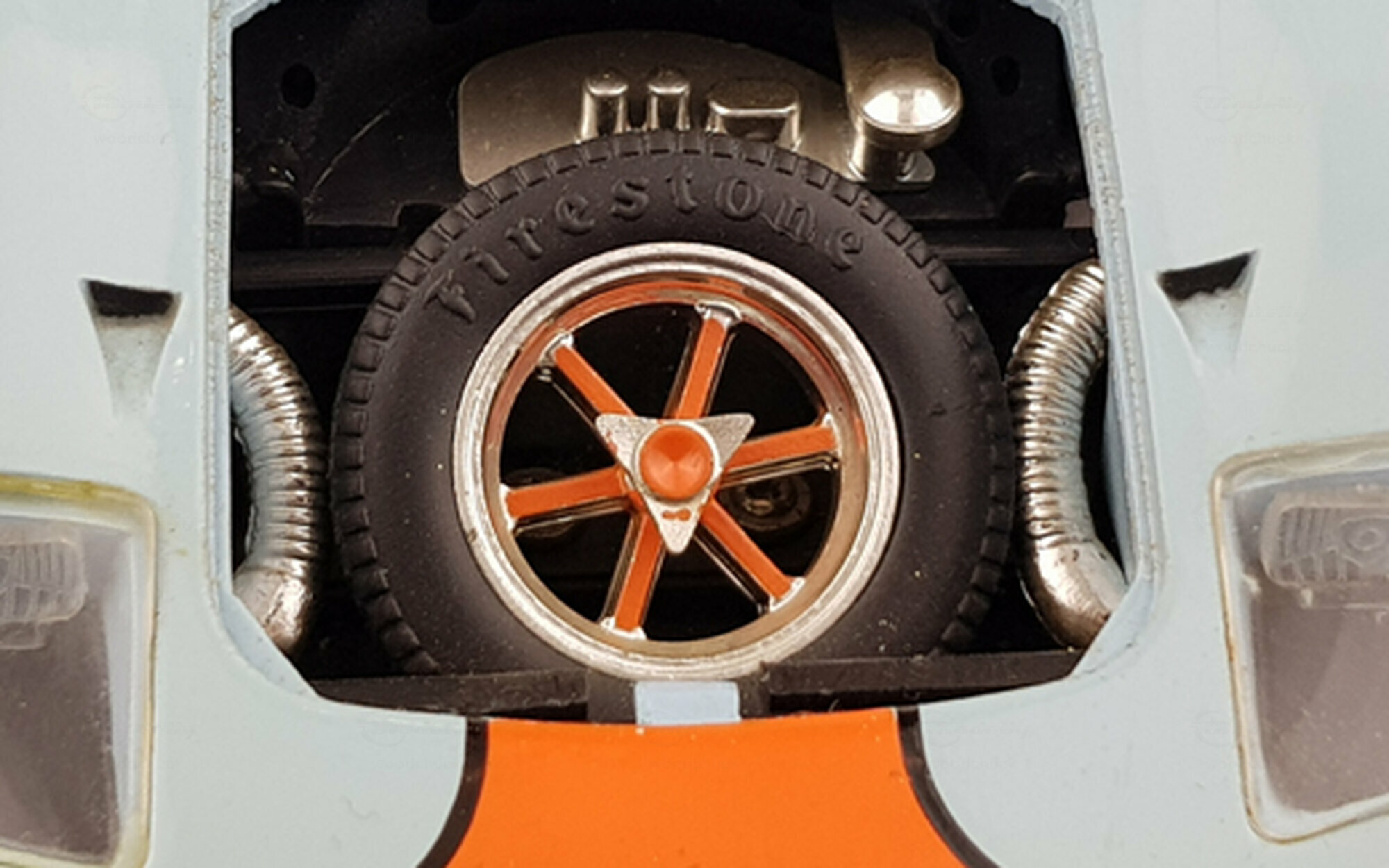 den Gulf Oil Farben Hellblau und Orange gehalten und ebenso wie der Metallguss