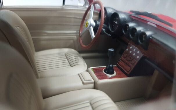 Auf dem Brüsseler Autosalon 1960 stellte Ferrari den 400 Superamericana als Nachfolger des 410 Superamericana erstmals vor. Die Karosserien ( Spider und Coupes)stammten, wie bei Ferrari üblich, überwiegend von Pininfarina und von der ersten Serie wurden 23 Modelle gefertigt wovon die meisten mit der sog. Aerodinamica- Coupé-Karosserie versehen waren. Ab 1963 gab es dann die Serie II mit längerem Radstand vor der nochmals 23 Modelle, 19 als Aerodynamica Coupé, gefertig wurden und die das Vorbild für das Modell darstellt. Als Antrieb erhielt der 400 Superamericana einen aus dem Colombo V12 entwickelten 4 Liter Motor mit einer Leistung von 340 PS. Damit erreichte der 4,70 m lange, 1,77 m breite und 1,5 t schwere Wagen eine Höchstgeschwindigkeit von 265 km/h. 1963 musste man für einen solchen Wagen ca. 84.000 DM hinlegen was den Durchschnittsverbrauch von ca. 20 Litern zweiranging erscheinen läßt. Die Produktion endete 1964 mit dem Erscheinen des Nachfolgermodells 500 Superfast.