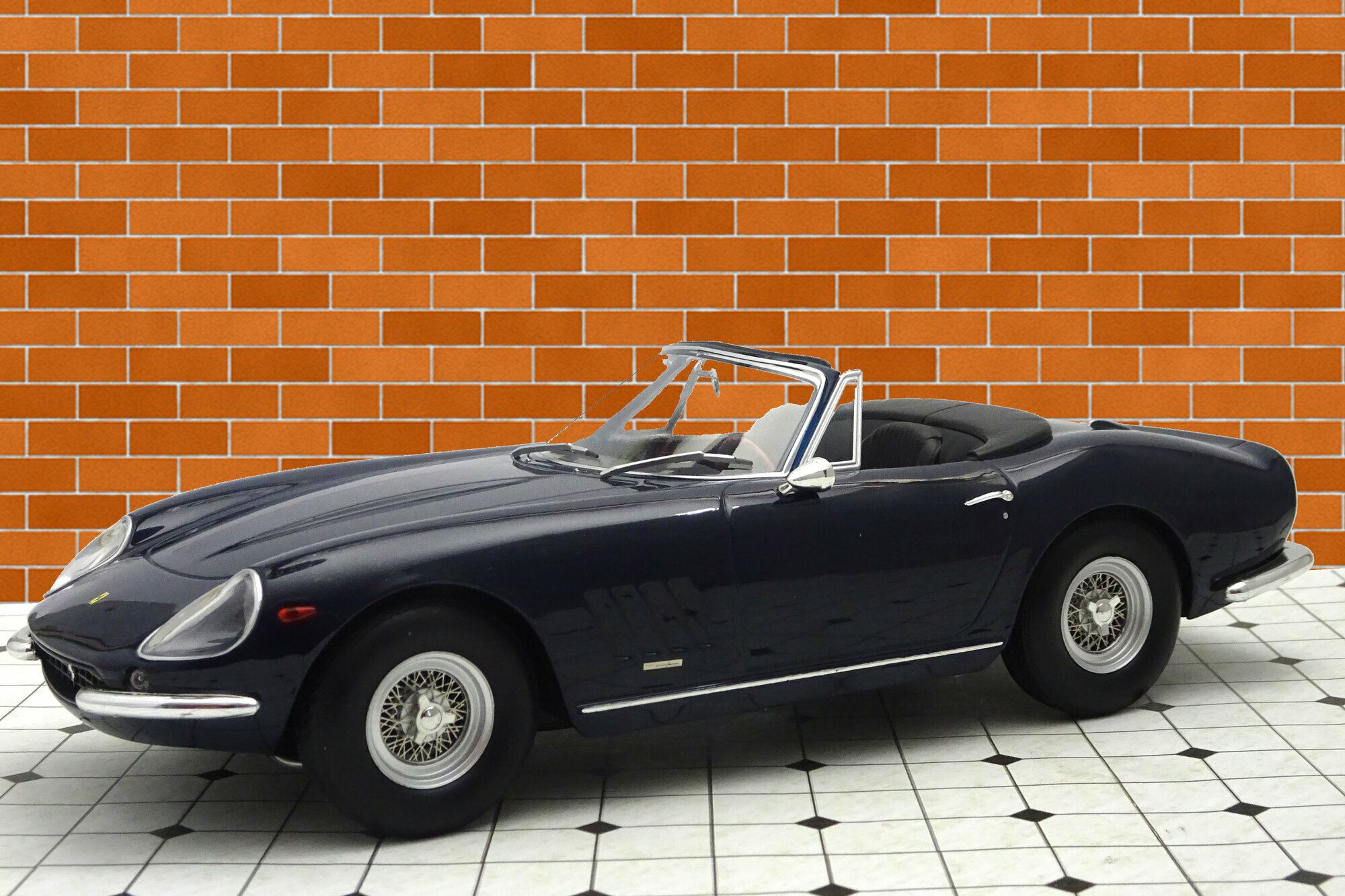 Ein DieCast-Modell des 275 GTB/4 NART Spyder erschien im Oktober 2018 bei KK-Scale in den Farben Rot, Gelb und Dunkelblau jeweils auf 500 Stück limitiert. Das Modell mit einer Metallkarosserie jedoch ohne Teile die man öffnen kann ist gut gearbeitet und besitzt eine ausgezeichnete Lackierung. Obwohl die Linien des Modells mit dem Original recht gut übereinstimmen, wirkt es dennoch irgendwie zu hoch. Dies mag an der Frontscheibe liegen die etwas zu hoch und groß geraten ist. Auch die Front ist nicht völlig korrekt. Die Scheinwerferverkleidung ist beim Original unten mehr nach innen gerichtet und insgesamt etwas schmaler. Die beiden Stoßstangen reichen beim Original nicht in den Kühlergrill hinein. Auch bei den Rädern ist ein Fehler unterlaufen. Die sonst recht gut gemachten Speichenfelgen sind zu klein und lassen die Reifer zu voluminös wirken. Es liegen alternativteile für eine offene oder geschlossenen Version bei. Das aus Kunststoff gefertigte Verdeck ist zu hoch und an den hinteren Seitenfenstern nicht schräg genug. Der Innenraum ist recht schön nachgebildet und weist viele gut gemachte Details auf. Der Maßstab wird außer bei der Höhe, hier sind 5 mm zu viel, sehr gut eingehalten. Fazit: ein recht schön gemachtes Modell dieses seltenen Stückes jedoch mit einigen Schwächen für das der Preis von 80 € schon recht stolz ist.