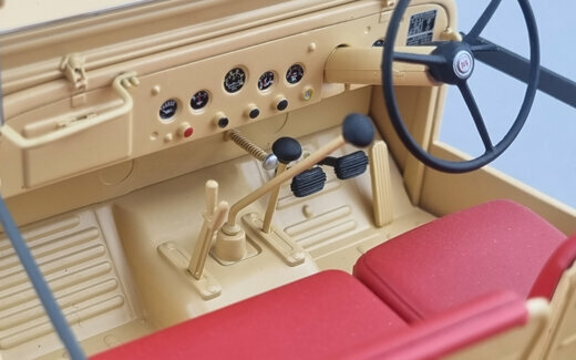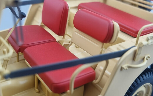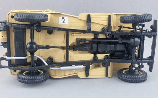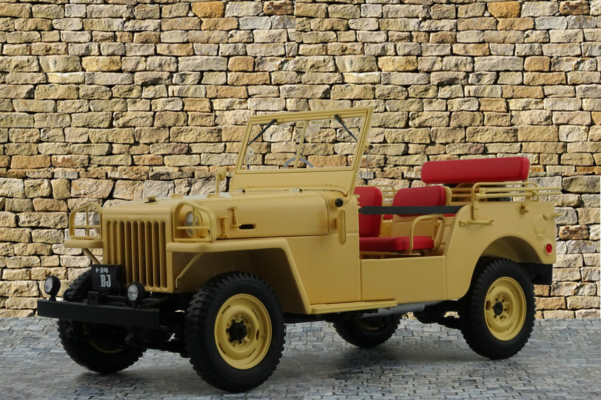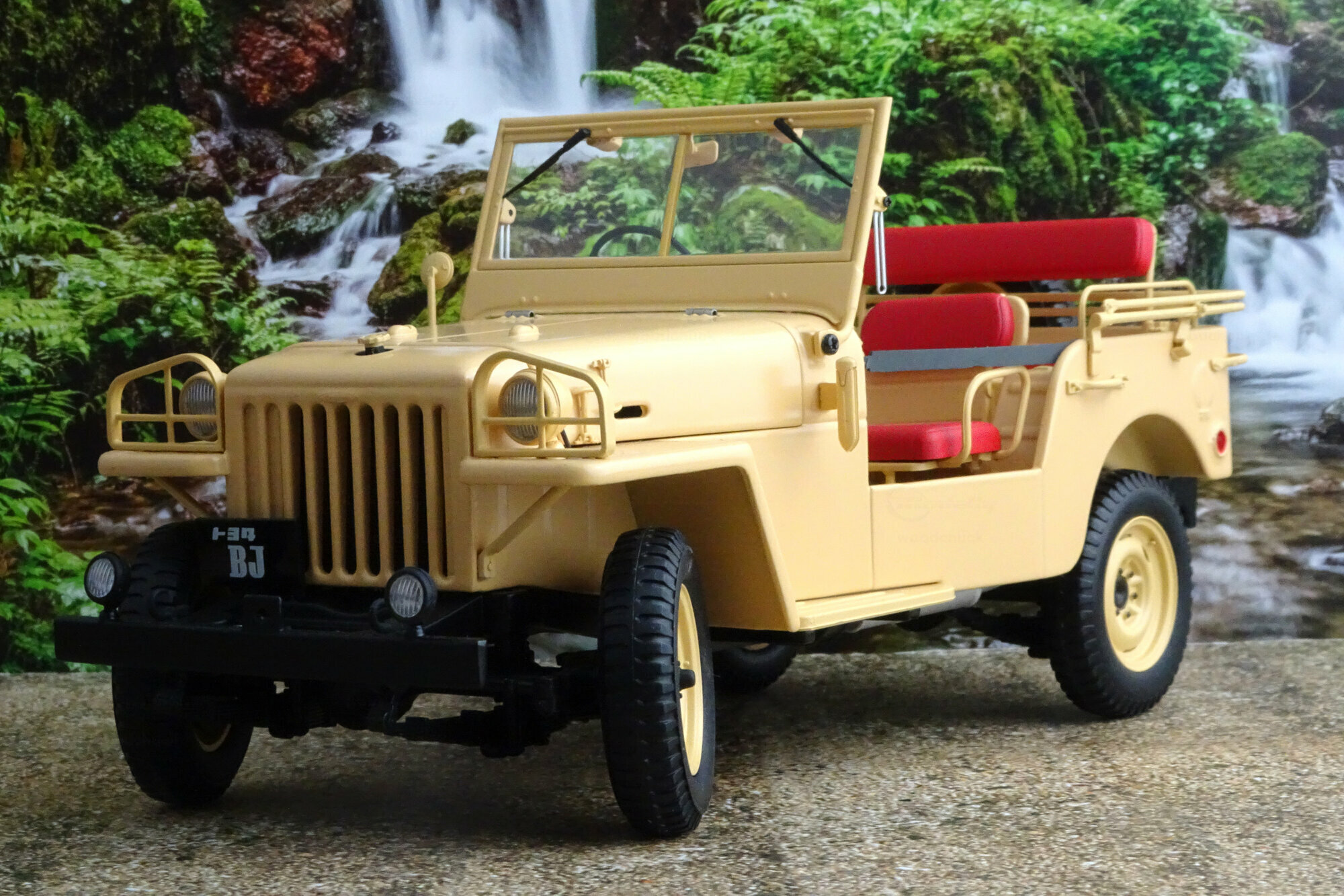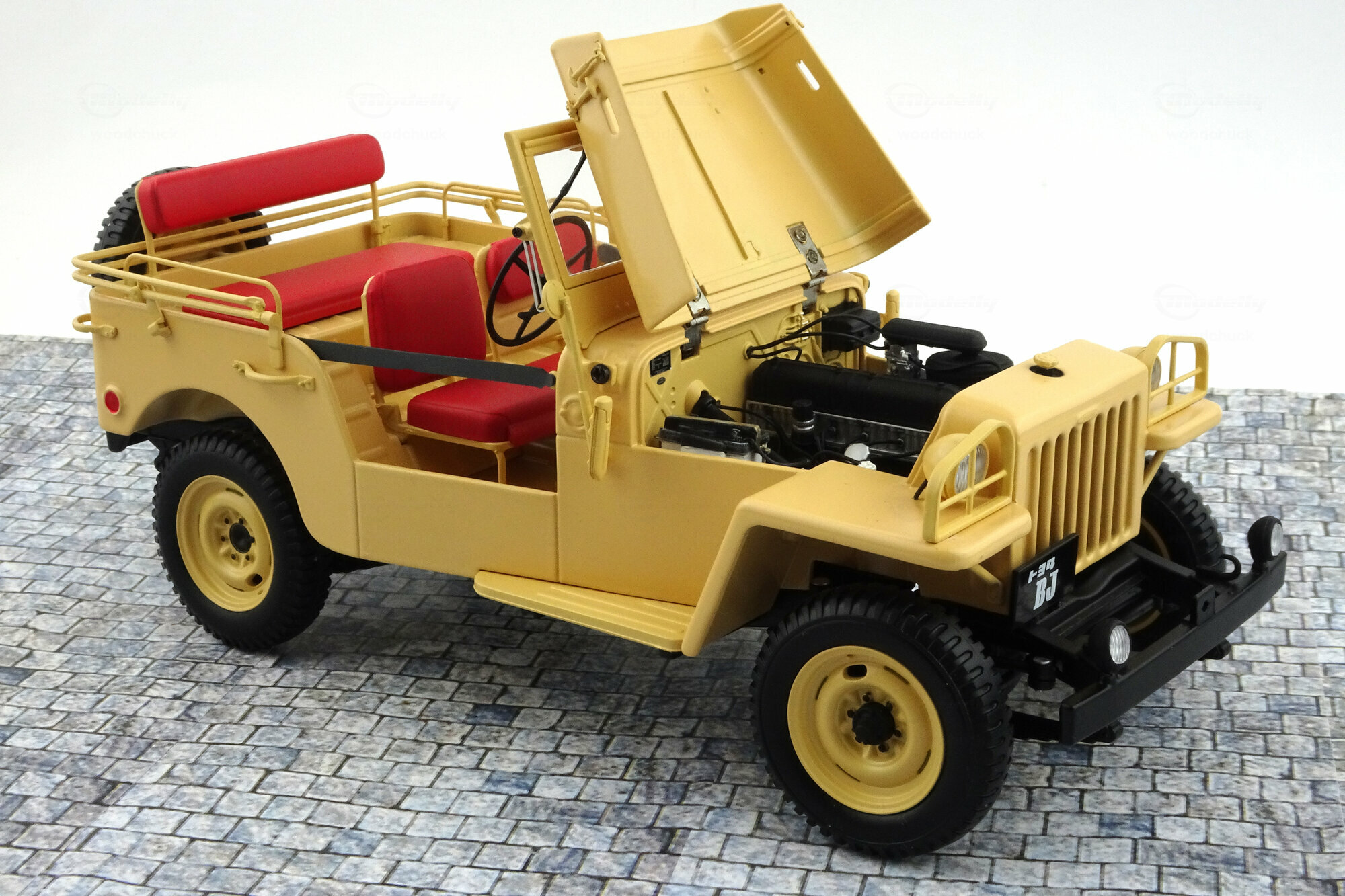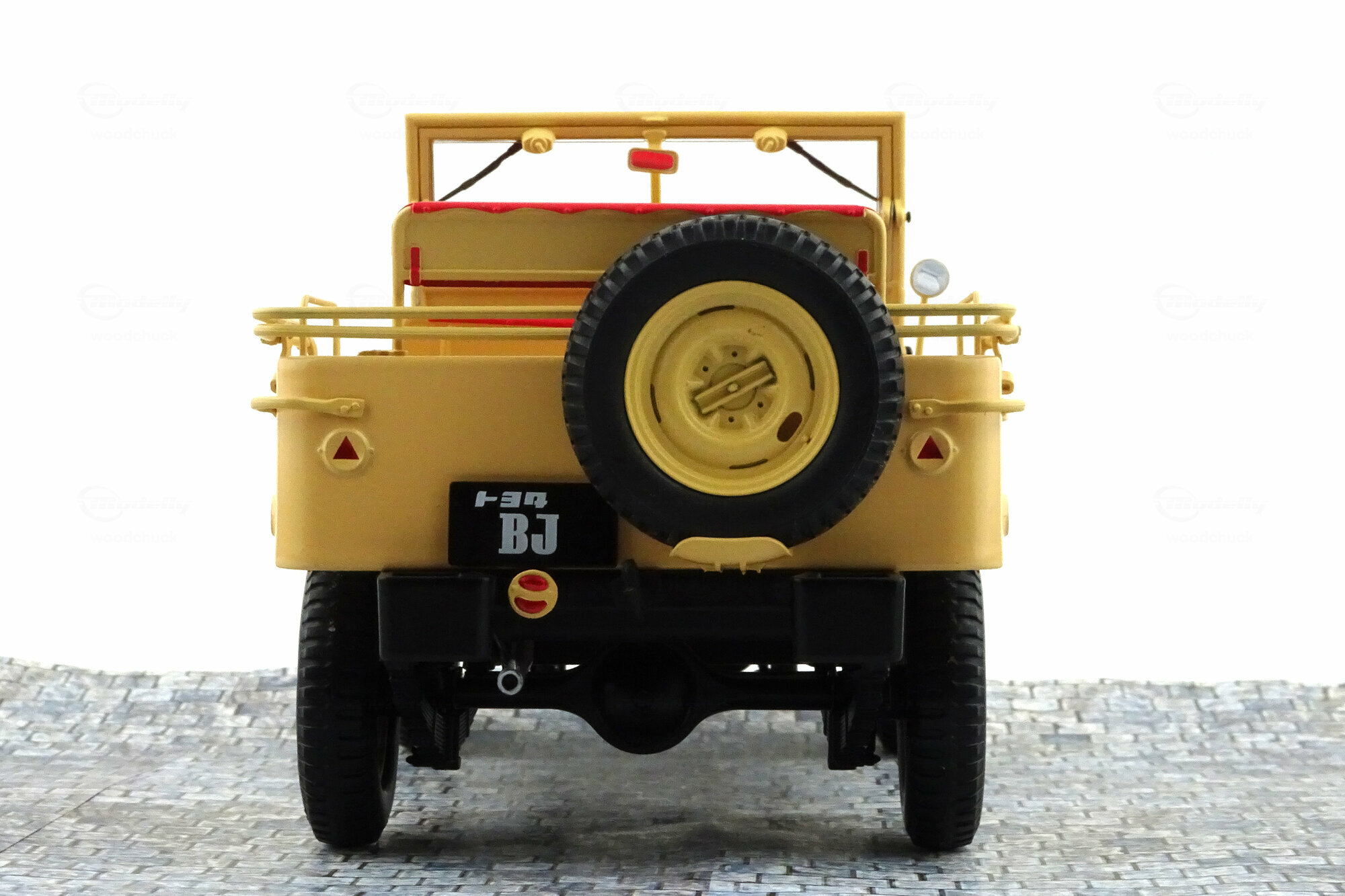 Kyosho brachte im Dezember 2021 ein DieCast Modell des „Toyota Jeep BJ“ von 1951 unter der Bezeichnung Land Cruiser BJ in 2 Farbvarianten heraus. Das Modell wird als offene Variante ohne Verdeck geliefert. Die Verarbeitung wie auch die Lackierung sind hervorragend. Im äußeren Bereich wie auch im Innenraum findet man eine Fülle von feinsten, teilweise extrem filigranen Details. Es ist eine wahre Augenweise die kaum Wünsche offen lässt. Ebenso gelungen sind die Unterseite sowie die Räder. Die Frontscheibe lässt sich nach vor klappen und die Motorhaube öffnen. Diese gibt einen hervorragend gestalteten Motor mit vielen Nebenaggregaten sowie kompletter Verkabelung aus feinstem Material frei. Über die Maßstabstreue kann ich wenig sagen, da ich außer dem Radstand, dieser wird aber genau eingehalten, bislang keine Angaben über die Abmessungen finden konnten. In der Summe ein hervorragendes Modell mit bester Verarbeitung und hoher Detaillierung was seinem Preis um die 200 € absolut wert ist. Im Netz ist es aktuell, überwiegend die grüne Variante, um 210 € erhältlich.