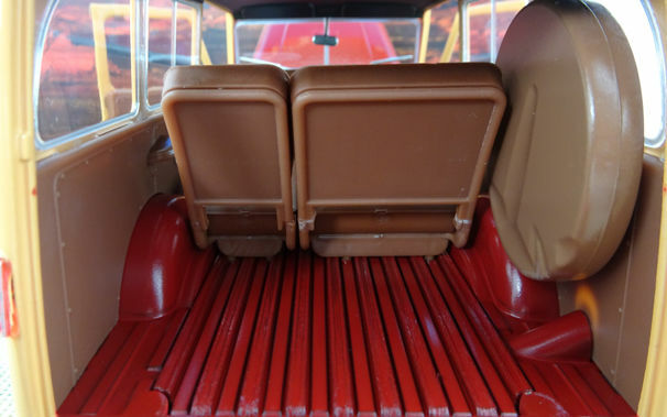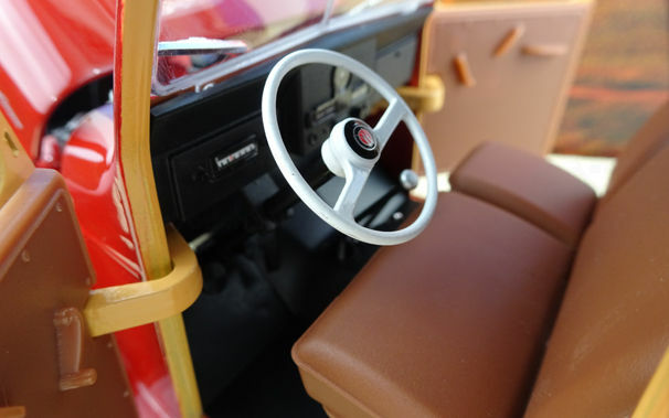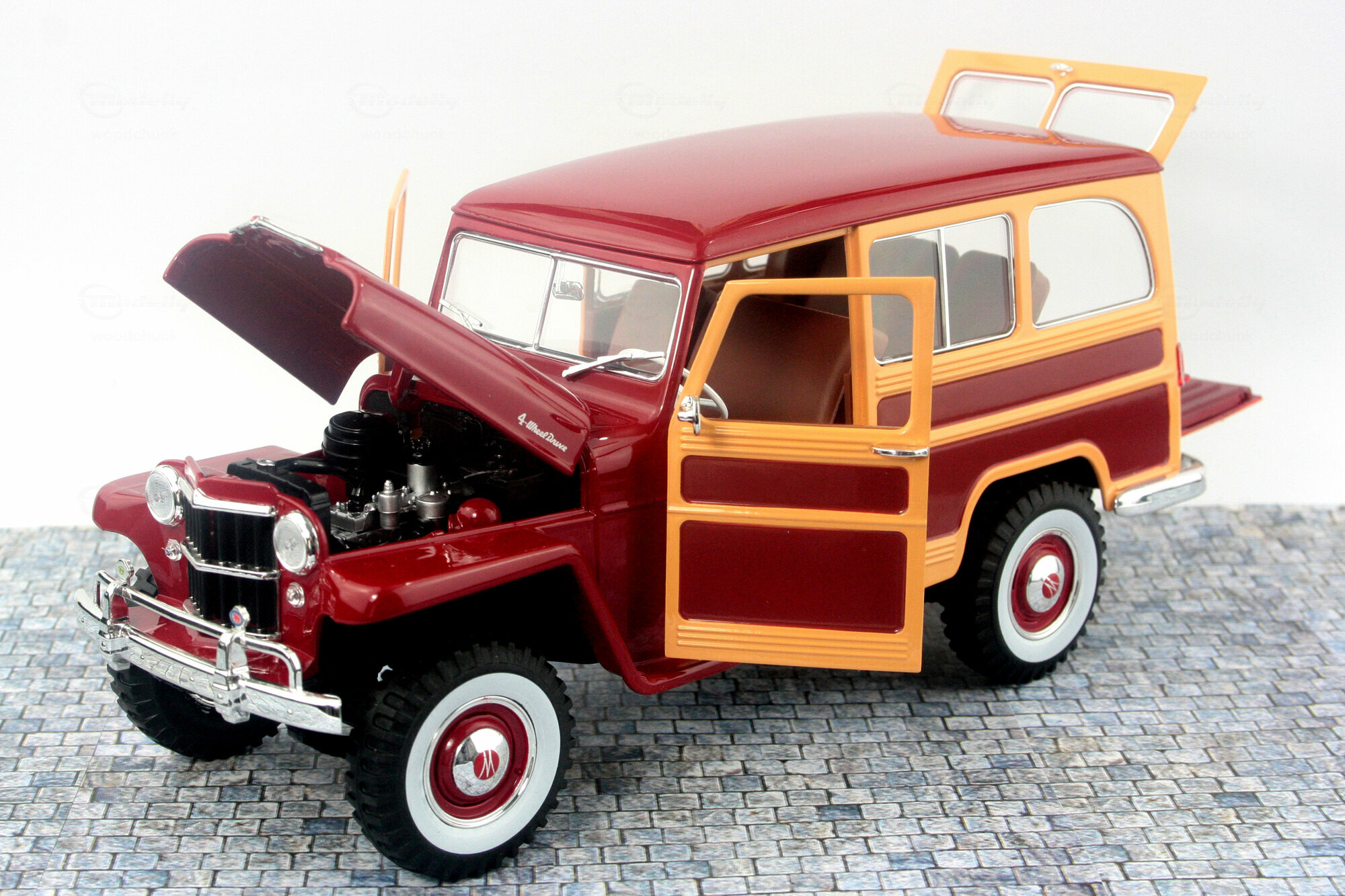 Das Modell des Station Wagons erschien 2017 von Lucky DieCast in 2 Versionen. Die „Woody“-Version hat eine rotbraun/gelbe Lackierung die den optischen Eindruck der damals üblichen Kombiwagen mit Holzaufbau (Woodies) vermittelt obwohl die Karosserie aus Metall bestand. Die Gussmetall-Karosserie ist gut verarbeitete mit einer ordentlich ausgeführten Zweifarb-Lackierung versehen. Die Details sind zufriedenstellend und wie auch das Chrom in guter Qualität. Anstatt der Standard Räder sind hier Weißwandreifen auf Felgen mit Chrom-Radkappen montiert. Das Fahrgestellt ist ausreichend detailliert und zeigt auch den vollständigen Allrad-Antriebsstrang ist jedoch in rotem einfarbigen Kunststoff ausgeführt was einen spielzeughaften Eindruck macht. . Leider ist der Auspuff vollständig in Chrom ausgeführt. Die Türen, Motorhaube und die zweiteilige Heckklappe lassen sich öffnen sowie die Rücklehnen der Vorder- und Rücksitze umlegen. Der Motor ist recht gut detailliert, verzichtet jedoch alle jegliche Verkabelung. Die hölzernen Bodenleisten im Laderaum sind zwar nachgebildet, aber nicht farblich abgesetzt. Das Ersatzrad wird nur in einem Gehäuse dargestellt. Der Innenraum ist solide nachgebildet, so findet man ein ordentlich nachgebildetes Armaturenbrett mit guten Decals und ein besonders fein gearbeitetes Lenkrad. Die Sitze sind einfach gefertigt, machen aber einen guten Eindruck. Der Boden wie auch die Türfüllungen sind aus strukturiertem Kunststoff mit eingeprägten Details, lediglich der Pedalsatz ist recht gut herausgearbeitet. Obwohl Modelllänge und Radstand mit dem Maßstab einigermaßen übereinstimmten ist das Modell zu schmal und zu hoch. So wirkt es etwas zu zierlich, besonders in der Frontpartie. Das Modell ist im Handel um die 60,-- € zu haben.