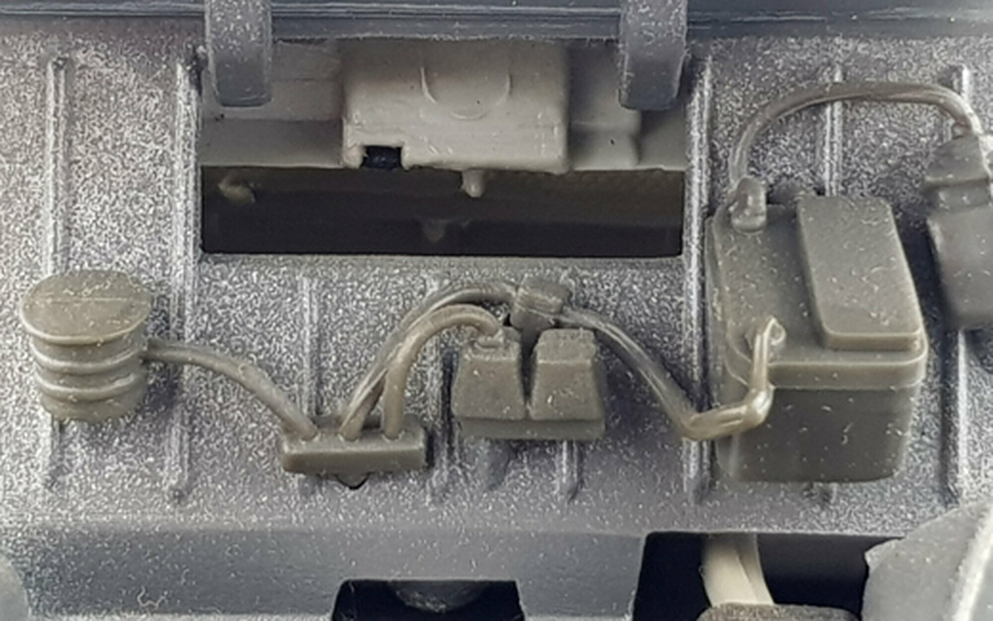 Motorhaube öffnen. Unter dieser befindet sich ein einfach aber umfangreich detaillierter