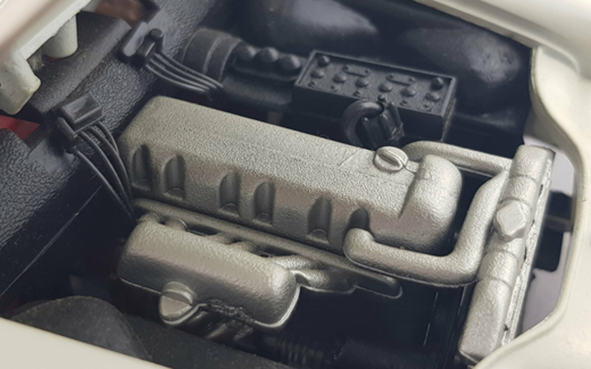 Ersatzrad. Unter der Haube findet man einen sehr schwach detaillierten Motor