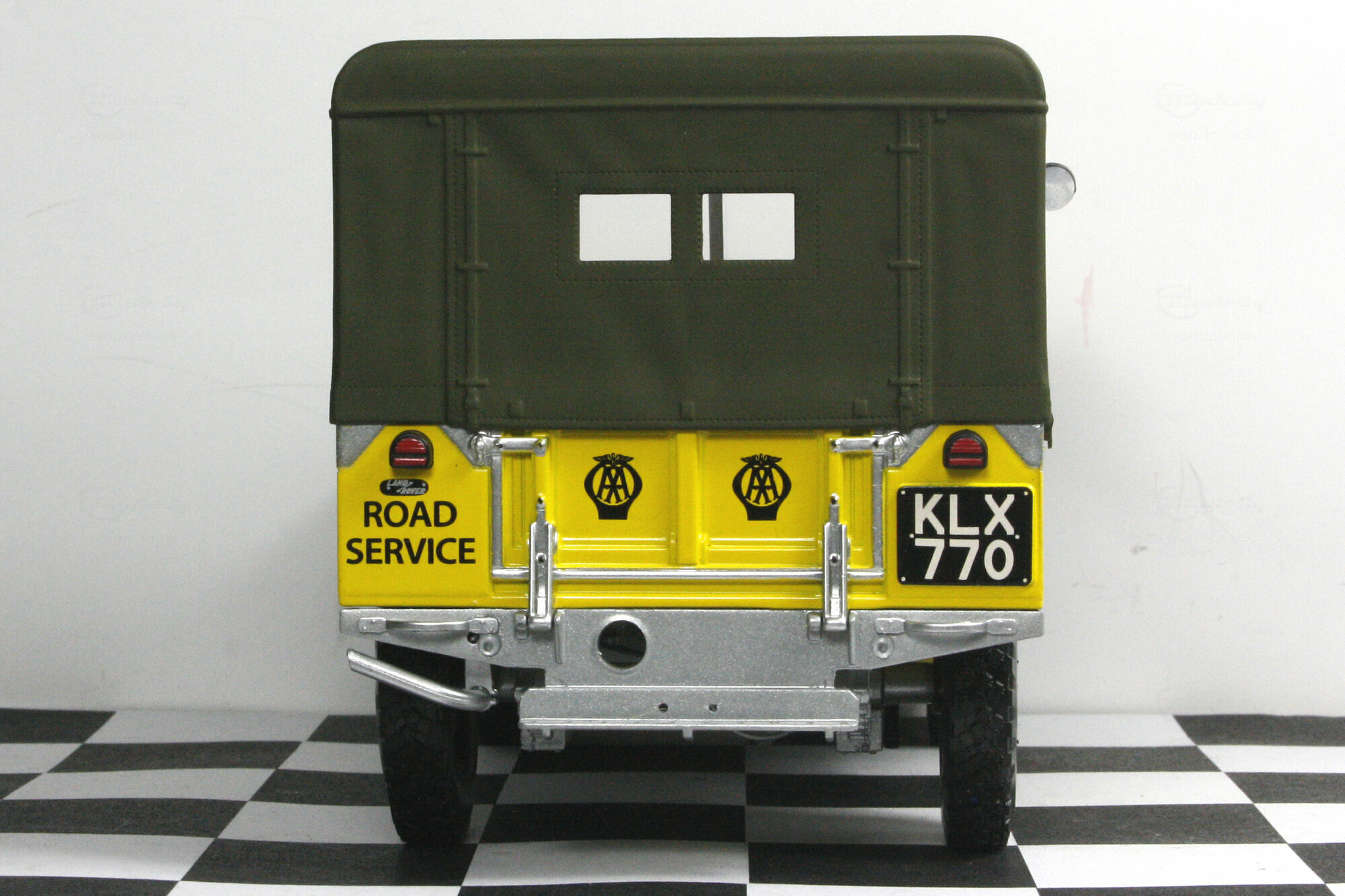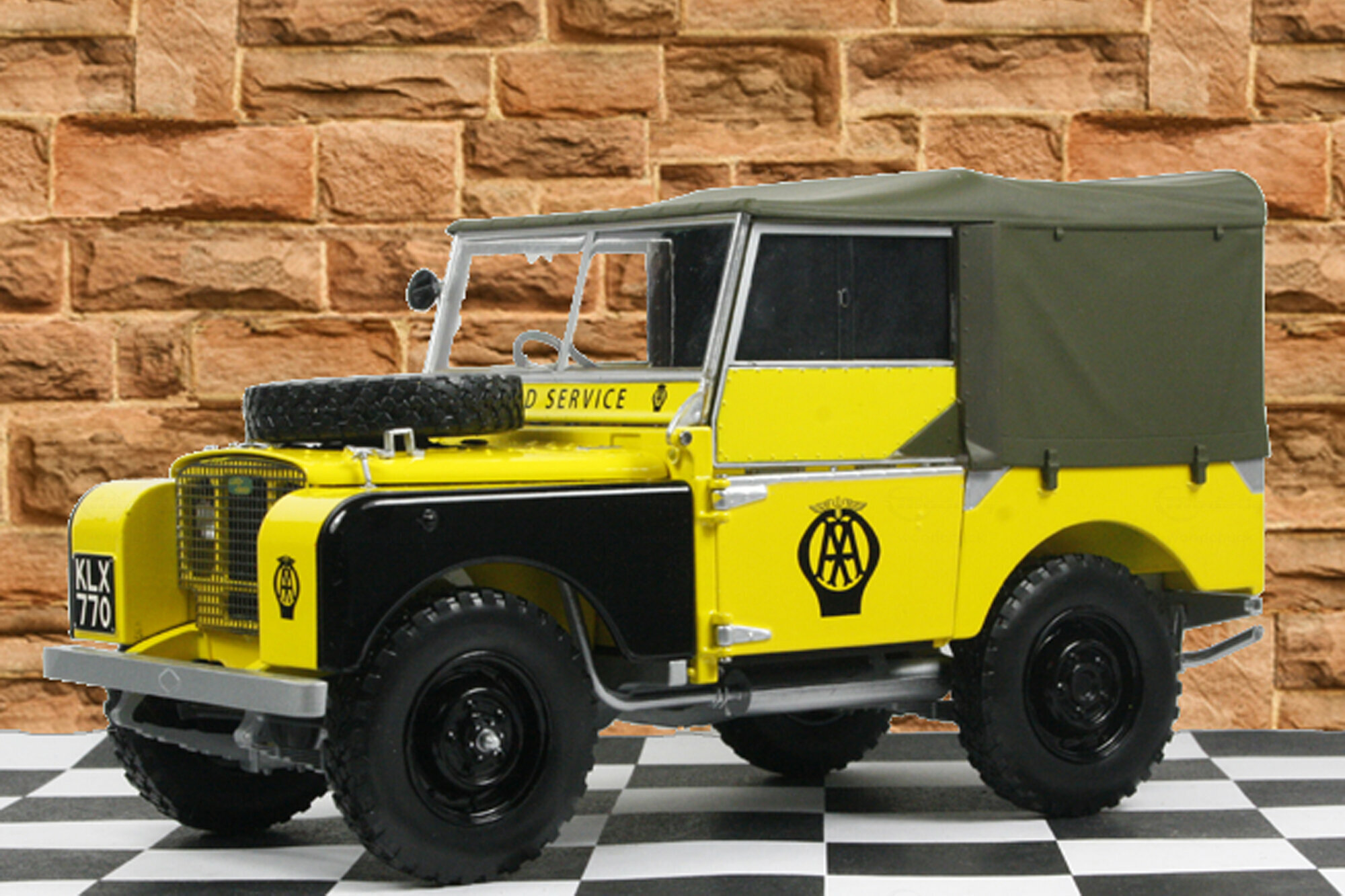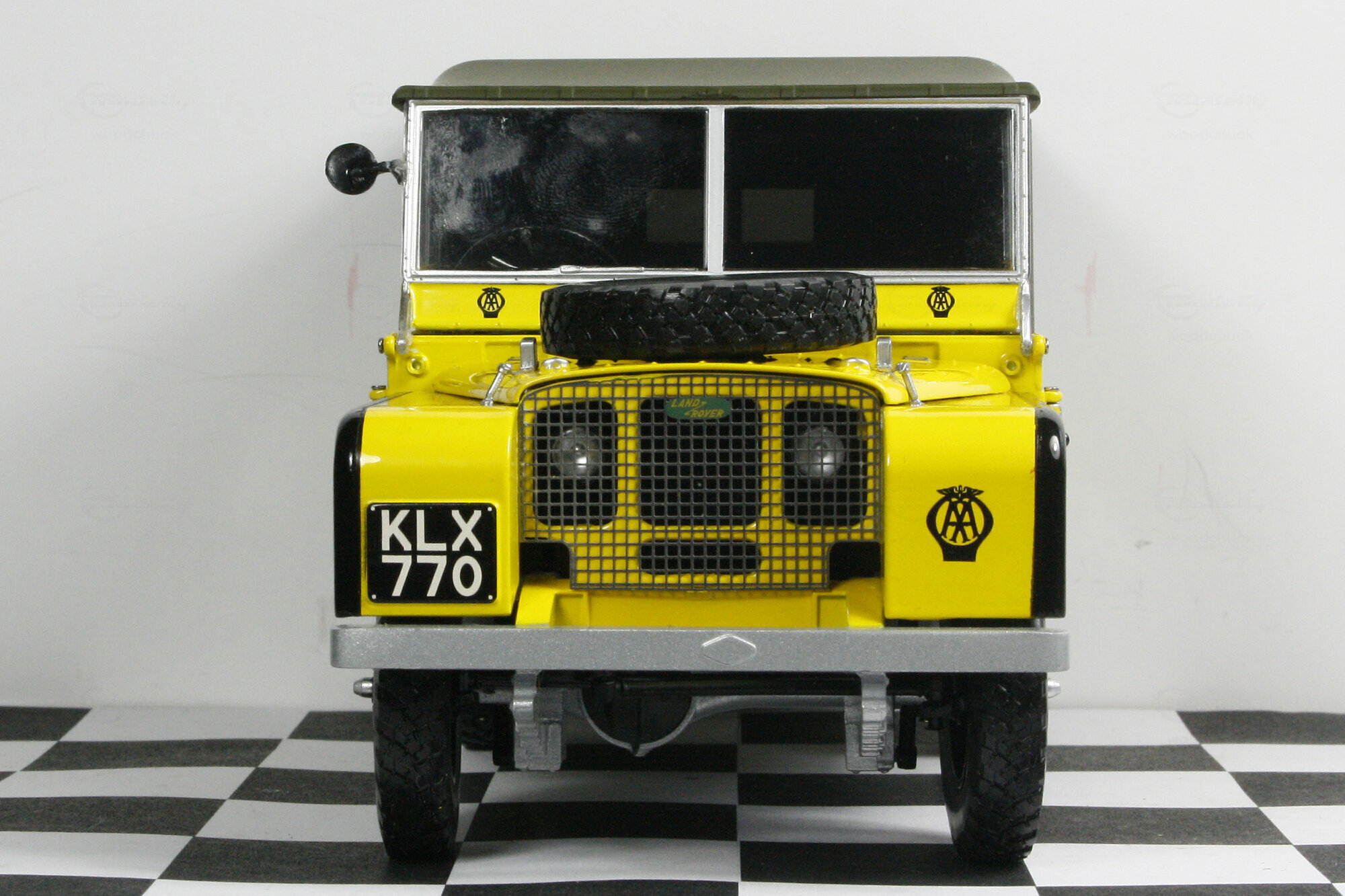 Minichamps hat das Modell des Land Rover Series I erstmals im typischen Airforce Green 2012 auf den Markt gebracht. Später folgten dann noch weitere Farben und Modellvarianten wie die gelbe des Britischen Automobilclubs. Das Modell ist, wie bei Minichamps üblich, hervorragend gefertigt und lackiert und verfügt über alle Varianten-spezifischen Beschriftungen. Die äußere Detaillierung ist sehr schön und besonders ist das geätzte Kühlergitter hinter dem sich die Scheinwerfer befinden zu erwähnen. Das sehr schön nachgebildete Stoffverdeck läßt sich ebenso wie die oberen Türhälften komplett und die Motorhaube komplett abnehmen. Die Türen lassen sich öffnen und die Frontscheibe nach vor klappen. Die Nachbildung des Motors ist hervorragend gelungen und zeigt sehr viele feine Details. Die spartanische Ausstattung des Innenraumes wurde originalgetreu wiedergegeben. Auf der Unterseite findet man ein vollständiges Chassis aus Kunststoff, eine ebenso gut detaillierte Unterseite des Motors mit Allradgetriebe, 2 Kardanwellen und 2 Differentialgetrieben in den Achsen. Proportionen um Maßstab stimmen sehr gut. Insgesamt ein sehr hochwertiges Modell dieses klassischen Oldtimers. Das Modell ist bei Händlern in verschiedenen Versionen um die 120,-- € zu bekommen.