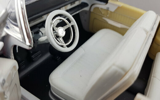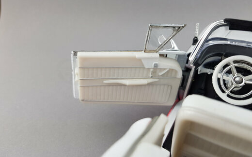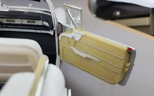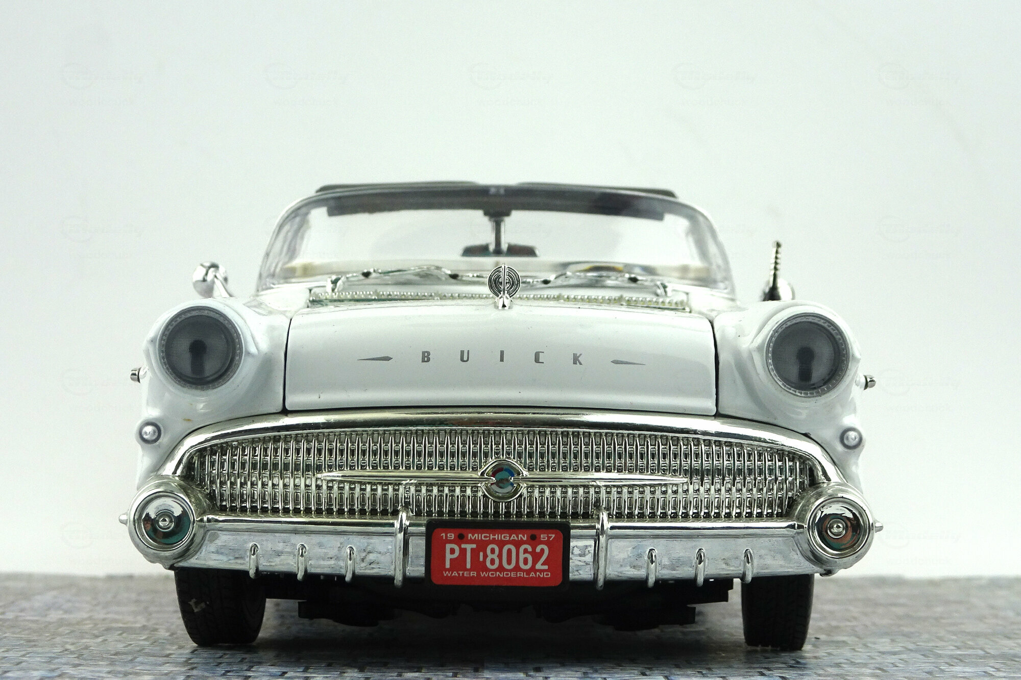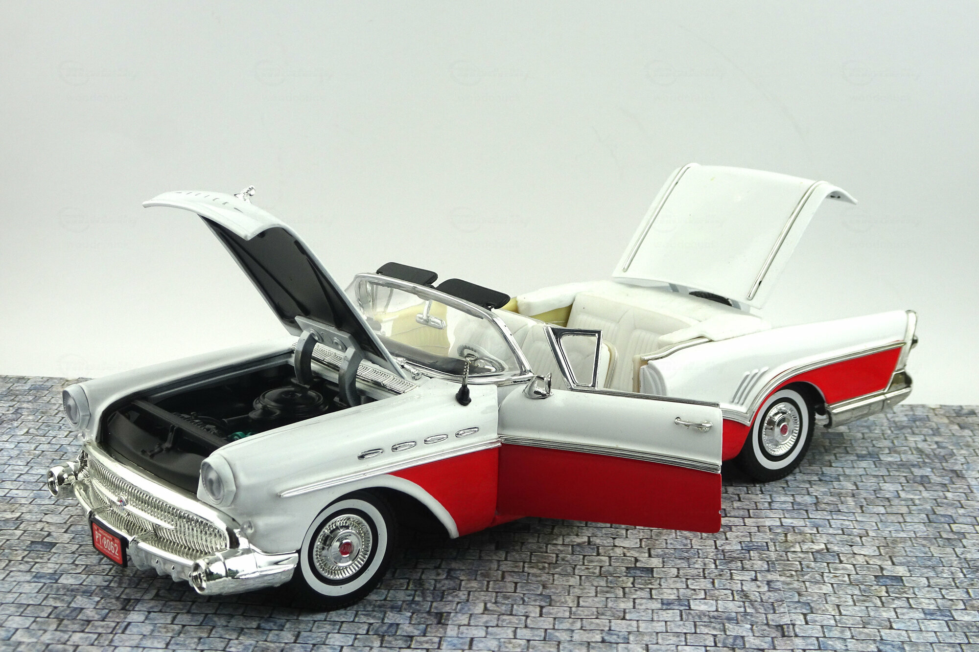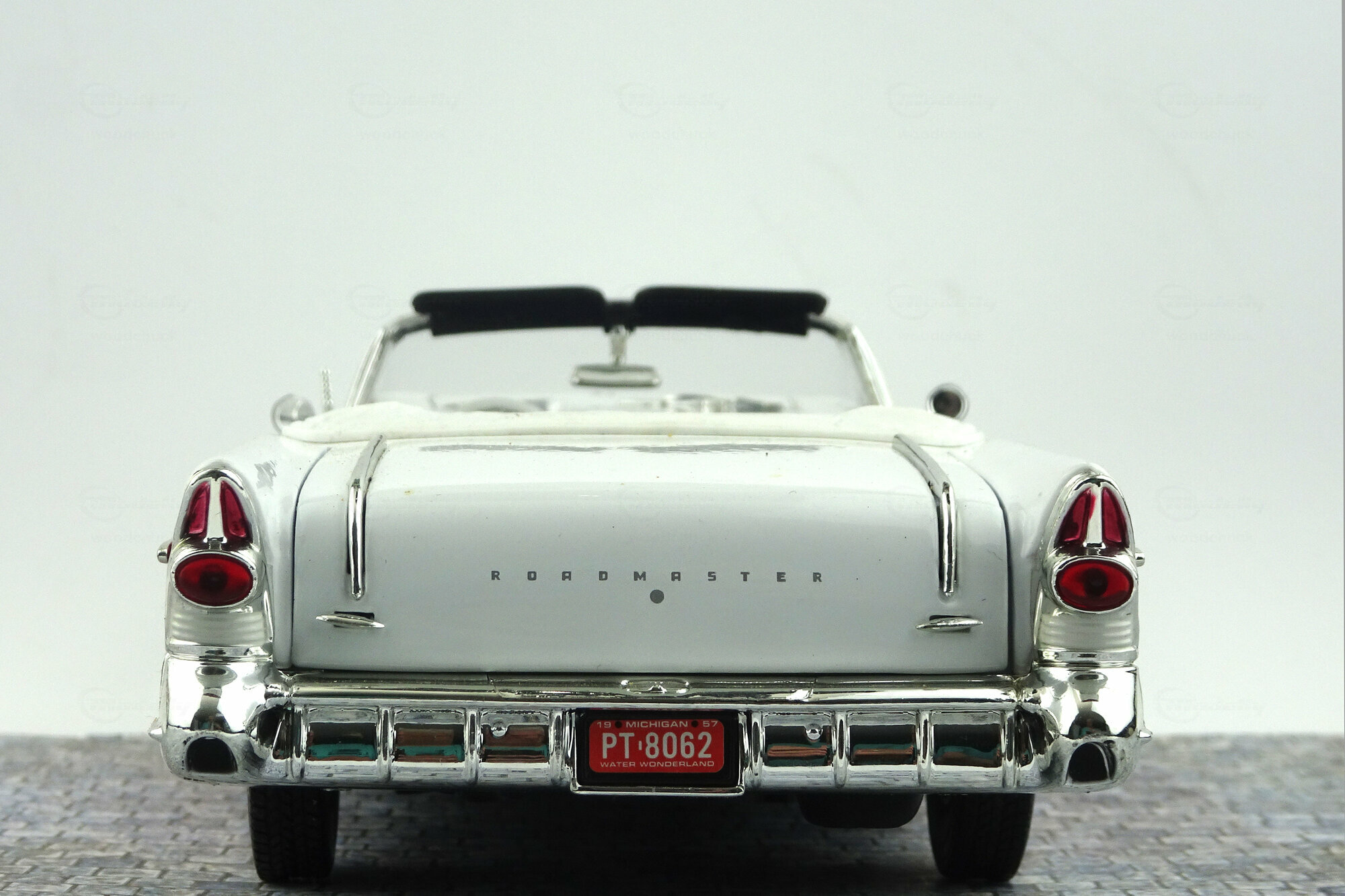MotorMax brachte 2005 ein DieCast-Modell des Roadmaster Convertible der Serie 70 von 1957 in 3 zweifarbig lackierten Varianten heraus. Der Spritzguss ist eher mittelmäßig und auch Lackierung neigt zu einer leichten „Orangenhaut“. Das Modell hat kein abnehmbares Verdeck. Die äußeren Details, besonders das viele Chrom, sind sehr einfach und grob ausgefallen. Hier fallen besonders die massive Einfassung der Frontscheibe sowie der große Kühlergrill auf. Auch die Räder passen sich diesem Niveau an. Es lassen sich beide Türen, die Motorhaube sowie der Kofferraum öffnen. Dieser ist völlig ohne Struktur und beherberg ein einfach gestaltetes Ersatzrad. Der Motor ist mit einfachen Mitteln grob detailliert. Auch im Innenraum setzt sich dieses fort, hier herrsch einfach geprägter Kunststoff vor und ab ehesten gefällt noch das Armaturenbrett. Bei meinem Modell sind Tür und Seitenverkleidung auf der rechten Seite in beige gehalten während die linke Seite weiß ist, merkwürdig. Der Maßstab wird recht gut eingehalten nur bei der Höhe fehlt einiges und so wirkt das Modell sehr lang und flach. Ein einfaches, mittelmäßiges Modell welches aber die gewaltige Größe dieser „Straßenkreuzer“ gut wiedergibt und mit um die 32 € auch nicht allzu teuer war. Es wird derzeit nicht mehr gefertigt und ist nur noch im Netz bei fast ausschließlich US-Anbietern zu Preisen um die 50 € zuzüglich Versandkosten zu bekommen.