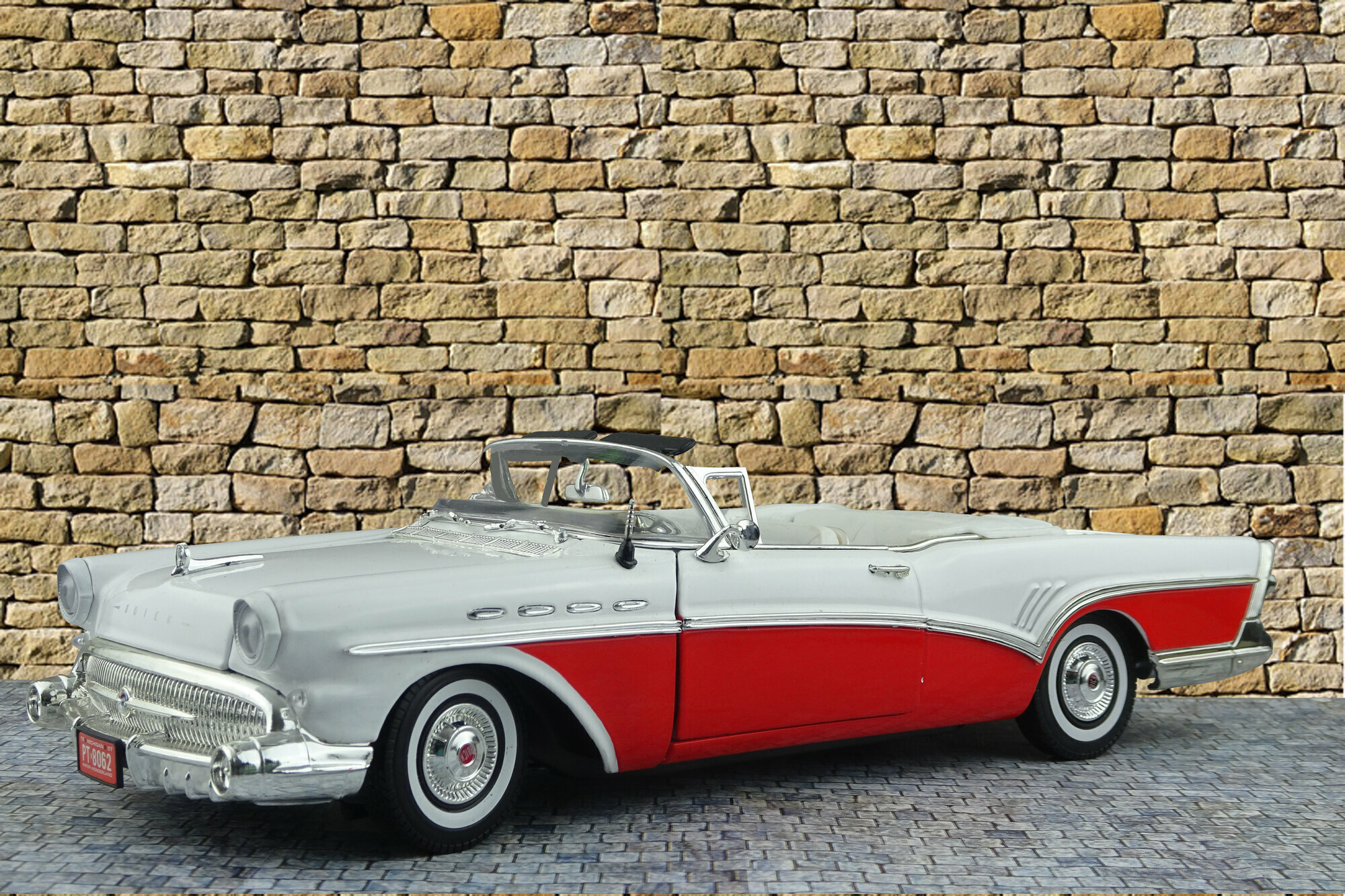 Buick verwendete die Bezeichnung Roadmaster erstmalig ab 1936 für die Serie 80. Ab 1940 fand der Name dann für die Serie 70 Verwendung und ab 1957 kamen dann besser ausgestattete Modelle der Serie 75 hinzu. Für das Modell Jahr 1954 erhielt der Roadmaster eine moderne Pontonkarosserie mit komplett integrierten Kotflügeln, einen kleinen „Hüftschwung“ sowie Panorama-Frontscheiben. Es wurden Limousine, Kombi, Coupé sowie Cabriolet angeboten. In den beiden Folgejahren mutierte der Kühlergrill zu einem, über die gesamte Wagenbreite gehenden, „Haifischmaul“ welches auch für das Jahr 1957 beibehalten wurde. Es wurden jedoch der „Hüftschwung“ sowie die Heckflossen deutlich vergrößert. Der 6 Liter V8 leistete nur 305 PS und brachte damit den 5,5 m langen und 2 m breiten sowie 2 Tonnen schweren Wagen auf 189 km/h Höchstgeschwindigkeit. Mit der Überarbeitung 58 wurde die Serie 70 eingestellt und im Herbst des gleichen Jahres ersetzte das Modell Electra den Roadmaster. Von der Baureihe 1953 bis 1958 wurden 309.272 Exemplare beider Serien gefertigt.