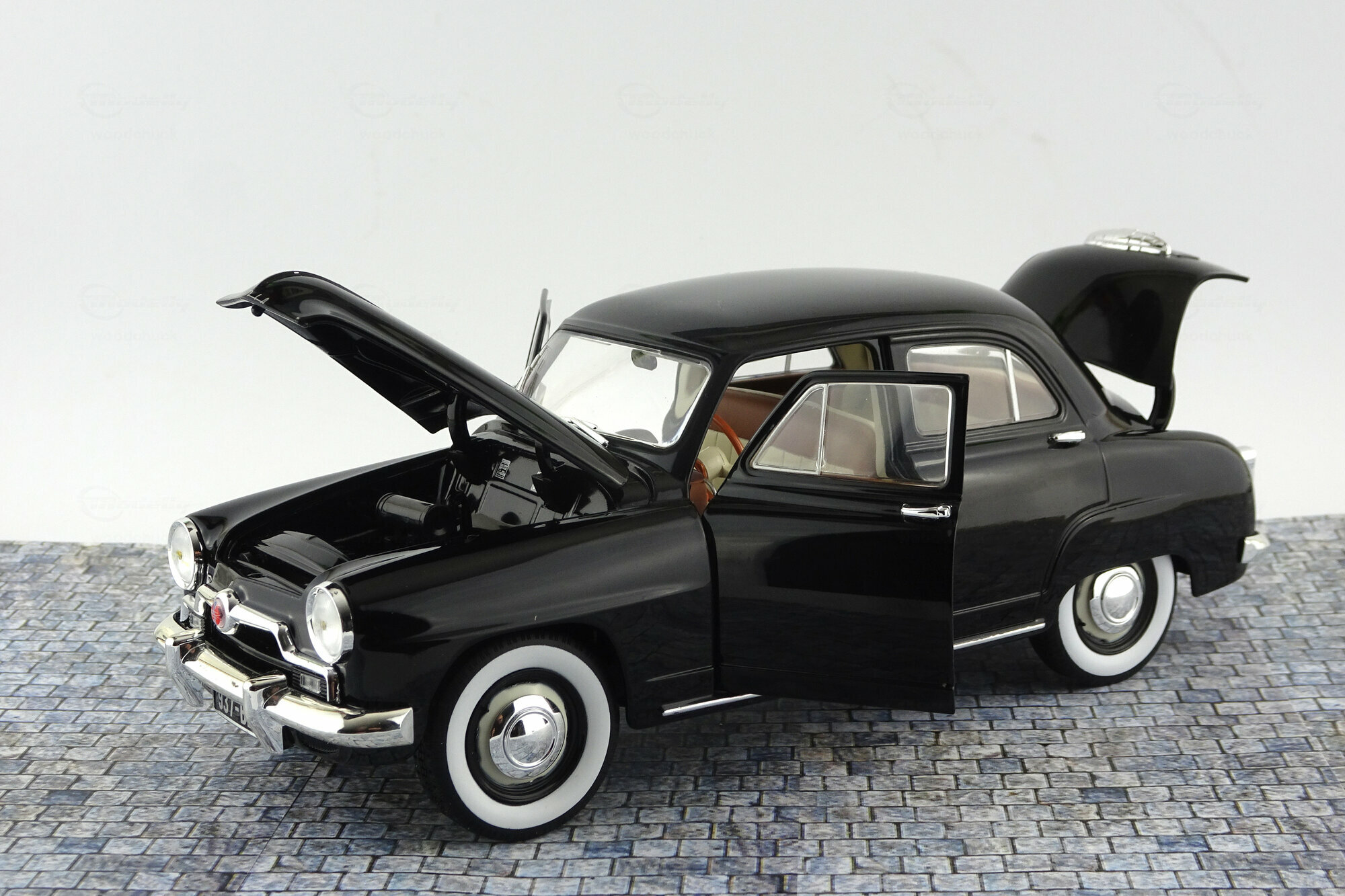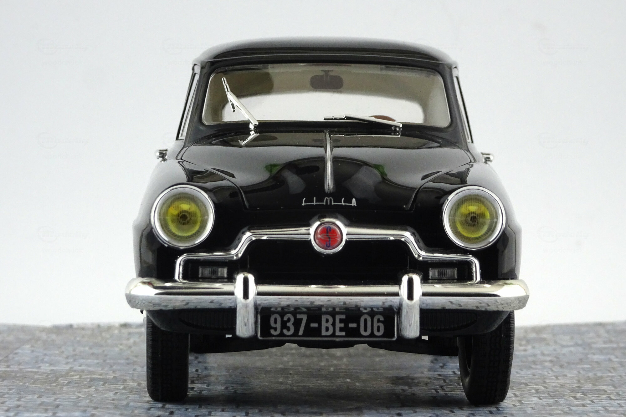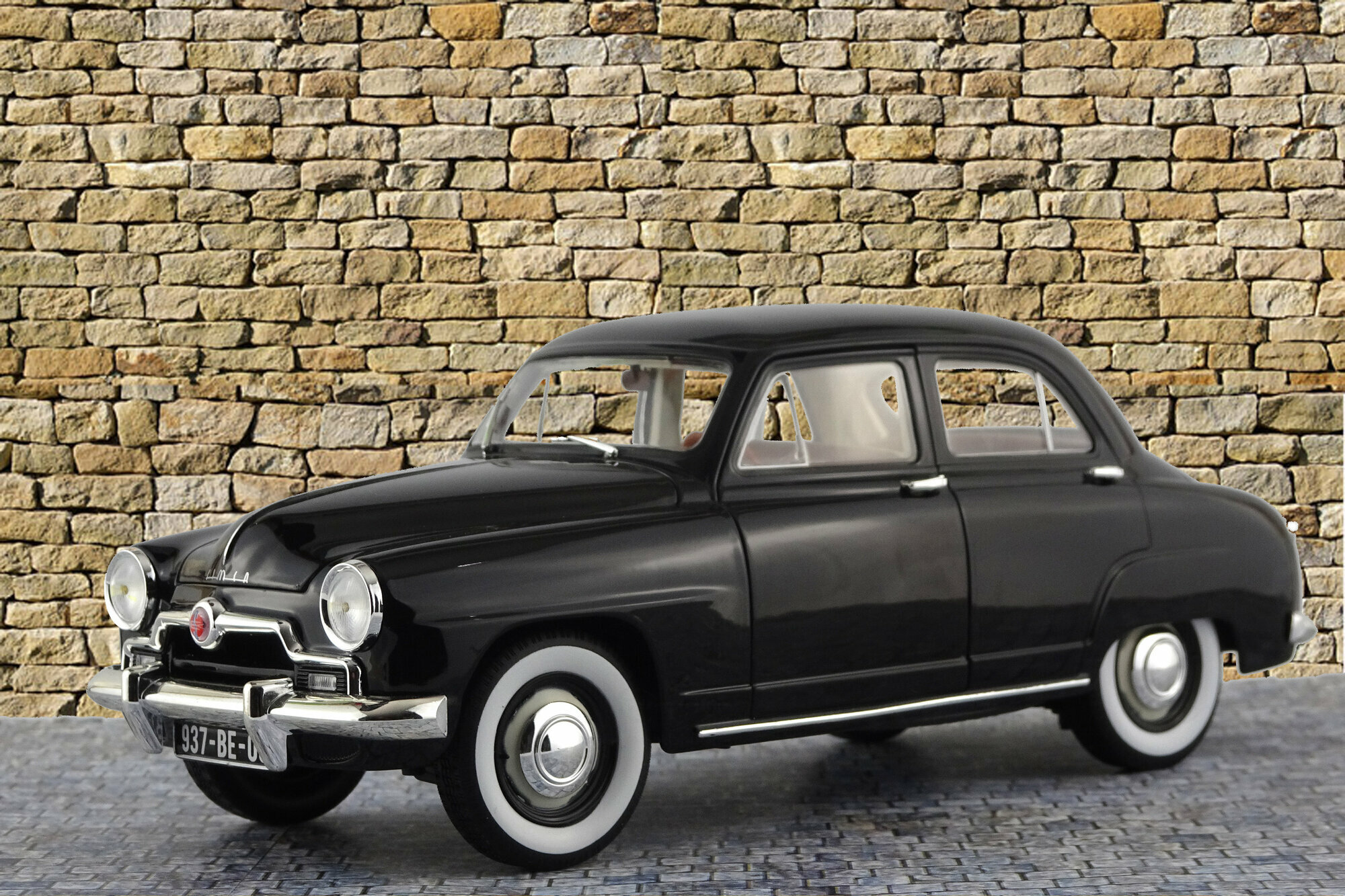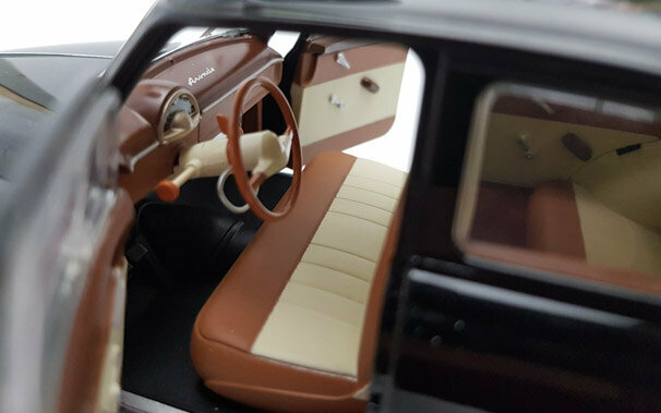 Im Mai 2013 erschien von Norev ein DieCast Modell Simca 9 Aronde in der Bauform von 51-54. Das Modell zeigt die runde, gefällige Form des Originals, ist gut Verarbeitet und hat eine tadellose. Schwarze Lackierung die gut zum Gesamteindruck passt. Die äußeren Details machen auch einen guten Eindruck, besonders sind hier die leicht gelb eingefärbten Scheinwerfer zu bemerken. Die Unterseite hat detaillierte Achsen, Auspuffanlage, Antriebsstrang sowie eine geprägten Chassisboden. Die Räder mit Weiwandreifen sind sehr schön gelungen. Die Vorderräder sind lenkbar und es lassen sich beide Vordertüren, Motorhaube und Kofferraum öffnen. Abgesehen von dem Ersatzrad ist der Kofferraum ein schwarzes Loch, was beim Original jedoch ähnlich gewesen sein mag. Unter der Haube findet man einen sehr schön detaillierte Motor, leider überwiegend in schwarz gehalten. Die Roten Zündkabel lockern dieses etwas auf, haben aber leider die Dimensionen von Kühlwasserschläuchen. Der Innenraum ist zweifarbig gehalten und bietet ein rech schönes Armaturenbret sowie ordentlich modellierte Sitze. Der Maßstab wird sehr exakt eingehalten. Der Einstandspreis von um die 40 € ist absolut angemessen. Aktuell ist das Modell im Internet zu Preisen von 50 – 55 € im Angebot.
