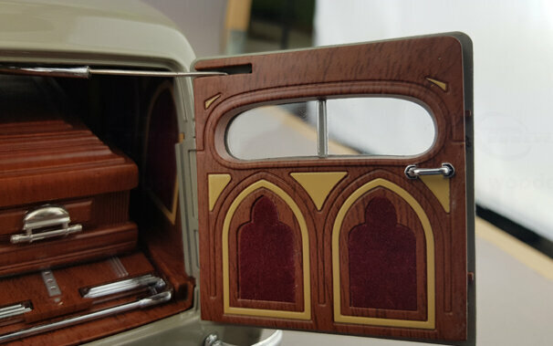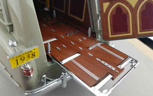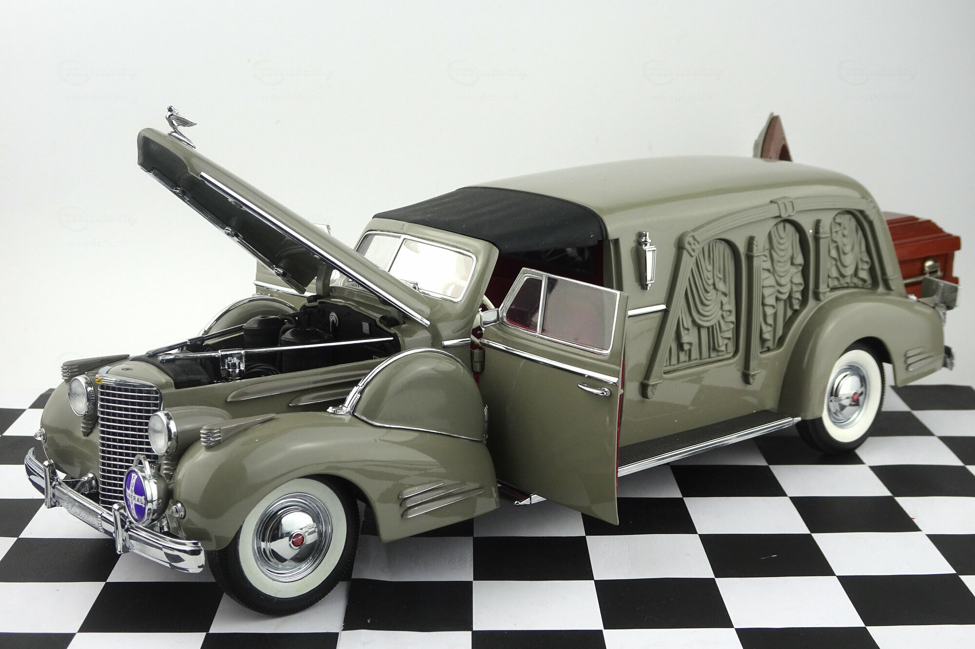 Precision Miniatures brachte das Modell des 1938 Damascus Carved Side Hearse 2006 in Schwarz und Grau auf den Markt. Es weist eine gute Verarbeitungsqualität sowie Lackierung auf und bildet die aufwändig verzierten Seitenwände des Originals sehr schön nach. Motorhaube, Türen und Hecktür lassen sich öffnen, das Verdeck über dem Fahrerbereich abnehmen. Der vordere Fahrzeugteil wich auch der Fahrerbereich und der Motor weisen eine hohe Ähnlichkeit zum Signature Modell des V16 Town Car auf. Der hintere Innenraum ist dem Vorbild sehr schön nachempfunden und gestaltet. Weiterhin gehören ein Sarg aus echtem Holz sowie ein fahrbares Transportgestell zur Ausstattung. Aktuell findet man kaum Angebote für dieses Modell.