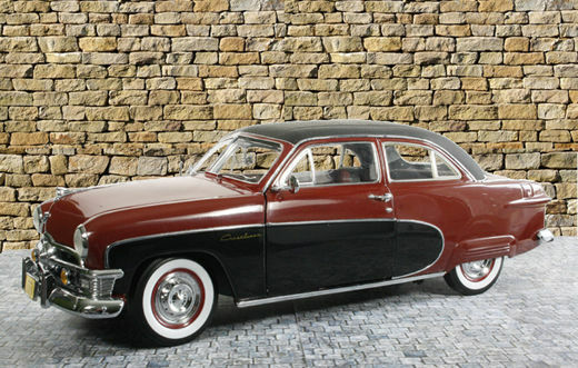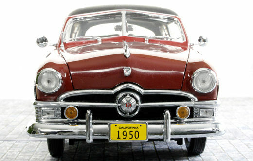 Das hier gezeigte Modellauto im Maßstab 1:18 ist eine präzise Nachbildung des originalen Ford Crestline von Precision Miniatures. Die Miniatur, die auf Material Mix basiert, zeigt eindrucksvolle Details wie die lackierte Karosserie, die abnehmbaren Teile wie Motorhaube und Kofferraum sowie die beweglichen Türen. Besonders auffällig ist der Zweifarbenlack, der das Fahrzeug in einem tiefen Braun und Schwarz präsentiert. Die klassischen Weißwandreifen und die filigranen Chromakzente, wie der stilisierte Ford-Schriftzug an der Front und die typischen Zierleisten, unterstreichen die Detailtreue dieses Modells. Sammler können die unverkennbare Eleganz und Detailgenauigkeit schätzen, die Precision Miniatures hier umgesetzt hat, insbesondere im Abgleich mit dem ikonischen Vorbild.