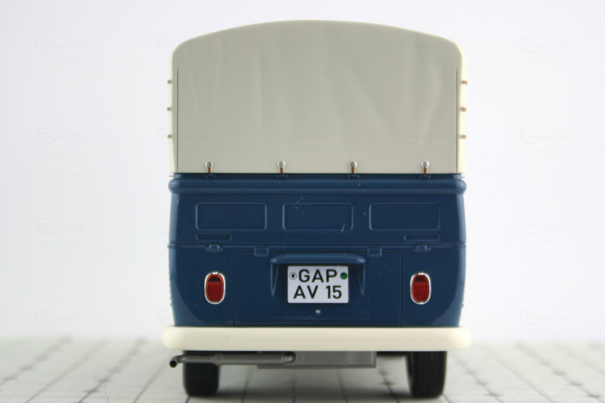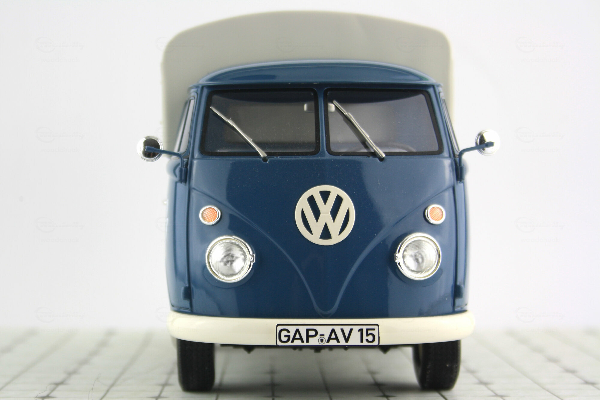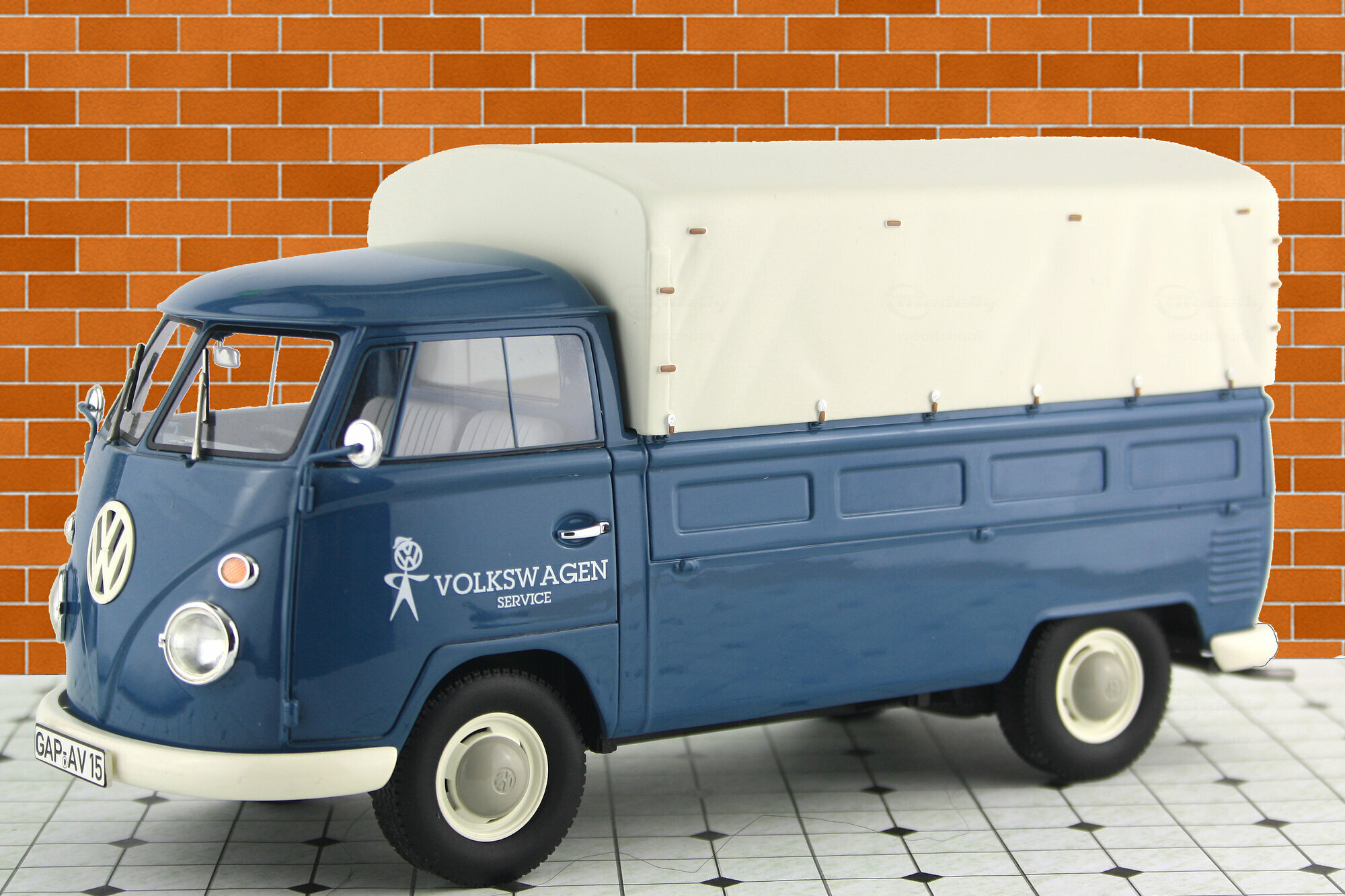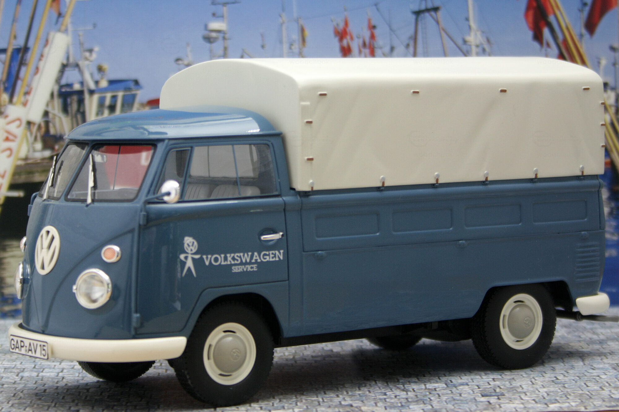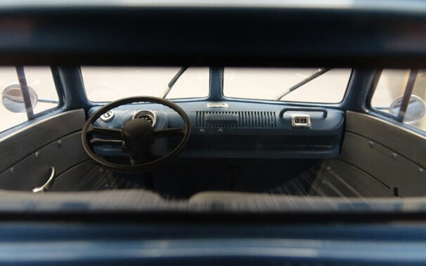 Premium Classixxs hat im Rahmen seiner T1 Modell-Reihe in 1:18 auch einen Standard-Pritschenwagen mit Plane als Resin-Modell herausgebracht. Das Modell des Volkswagen Service entspricht dem Lieferzustand ab 1965. Die Resinkarosserie ist gut gearbeitet und mit einer sehr guten Lackierung versehen. Alle Details sind von guter Qualität und sehr fein ausgeführt (z.B. Spiegel). Auf der Unterseite hat am versucht das Chassis und den Motor und Getriebeboden nachzubilden was leider nur unvollständig gelungen ist. Die Räder machen einen guten Eindruck und entsprechen dem Vorbild. Die Ladefläche sowie die Bordwände sind auch innen strukturiert und auch wie beim Original in Wagenfarbe lackiert. Die Plane aus Resin ist abnehmbar, zufriedenstellen strukturiert und mit farblichen Akzenten für die Verschlüsse versehen. Der Führerraum ist recht ordentlich geworden und vermittelt das Bild des Originals. Der Maßstab und die Proportionen sind soweit in Ordnung. Das Modell ist aktuell nur noch bei E-bay vereinzelt zu Preisen ab 150 € erhältlich, was ich für deutlich zu hoch erachte.