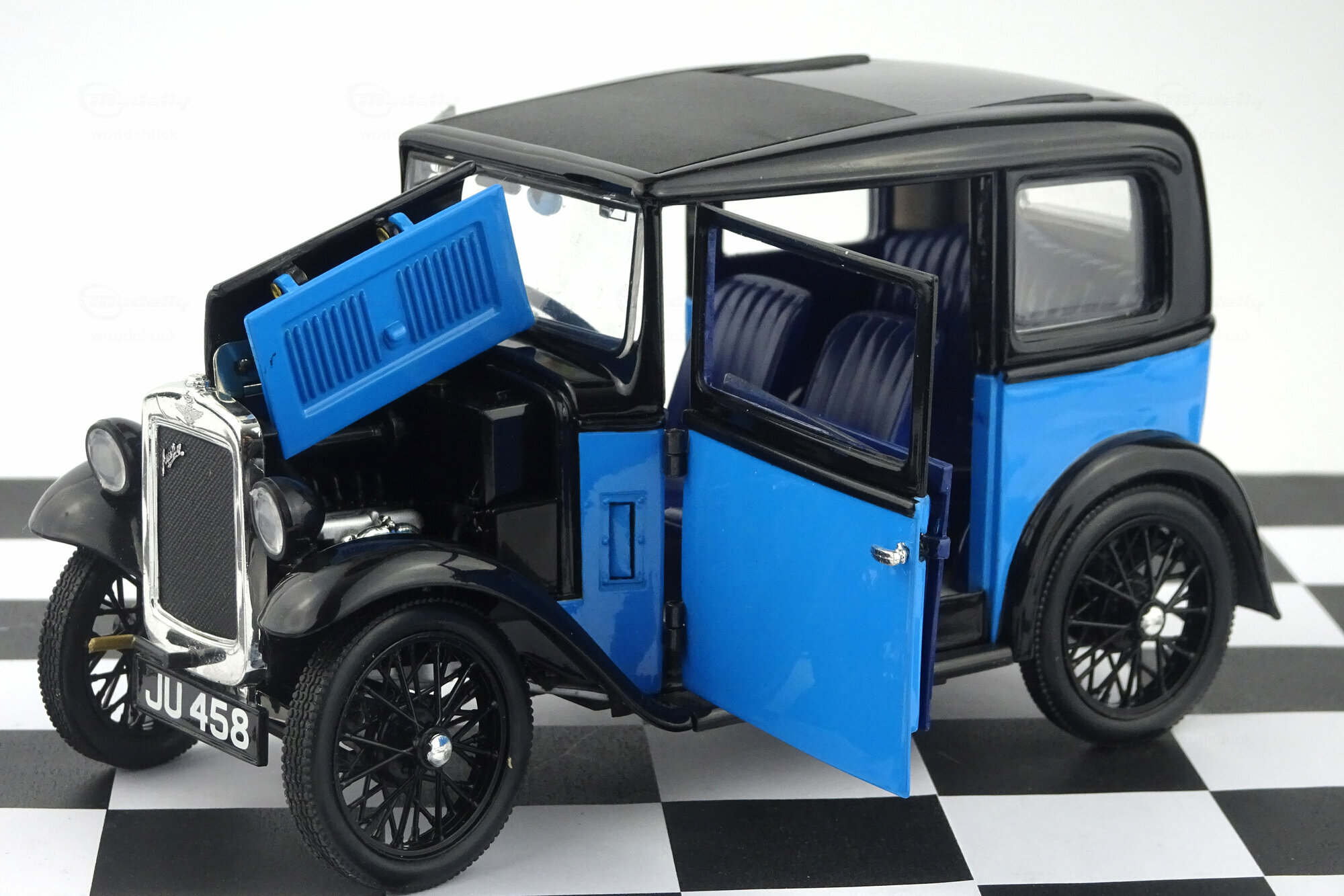 Das Modell des Austin 7 in 1:18 wurde 2005 von Ricko herausgebracht und ist eine gelungene Nachbildung dieses britischen Kleinwagens von hoher Fertigungsqualität. Der Innenraum wie auch der Motor sind perfekt nachgebildet und weisen einen hohen Grad an Detaillierung auf. Motorhaube und Türen lassen sich öffnen und geben den Blick auf das schön gestaltete Interieur frei. Der Maßstab wird ziemlich genau eingehalten. Alles in Allem ein wirklich schönes Modell.