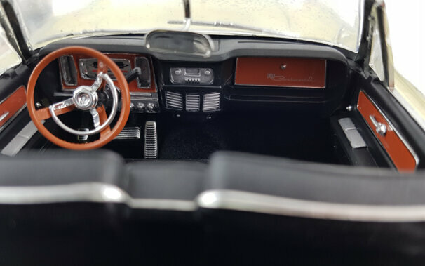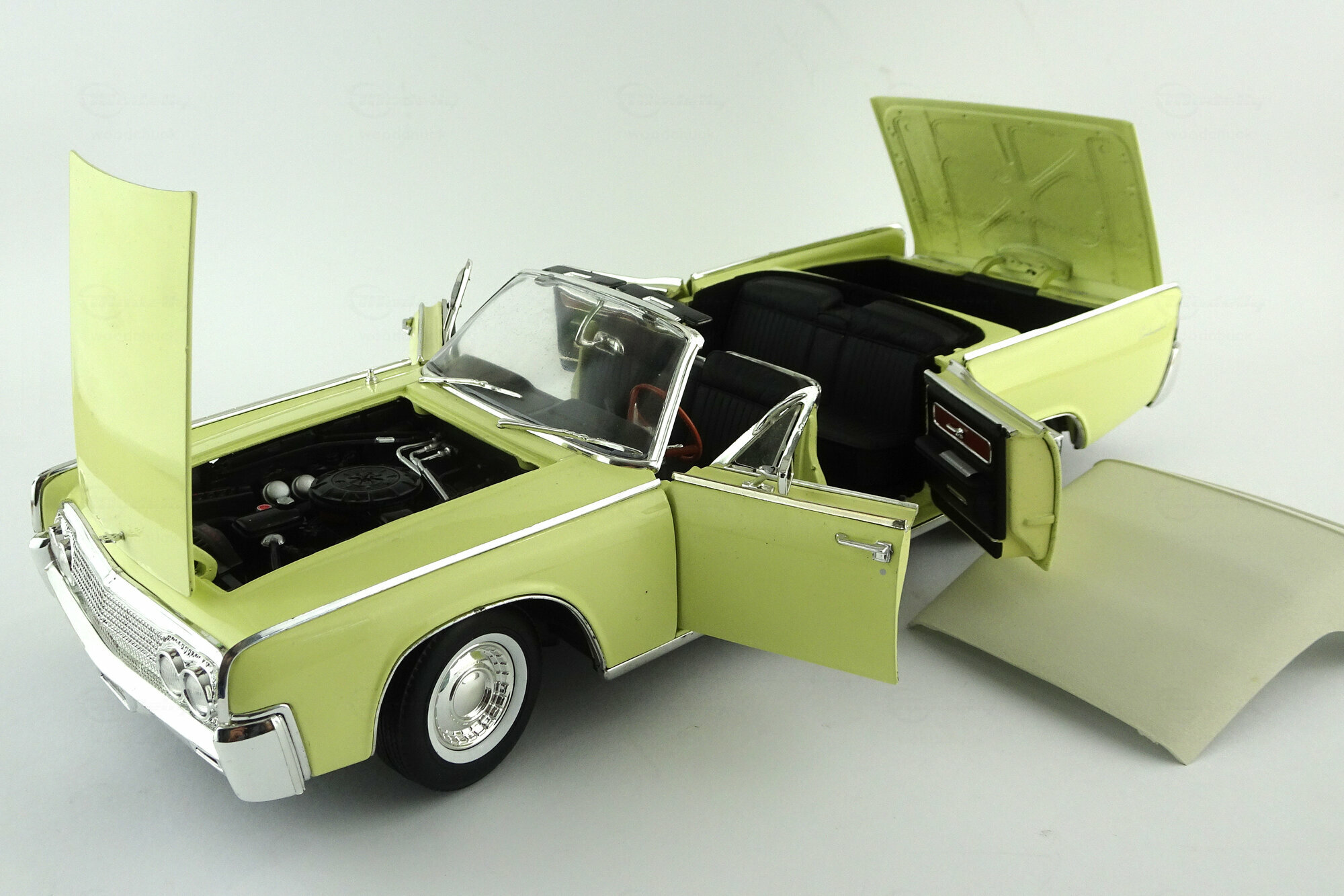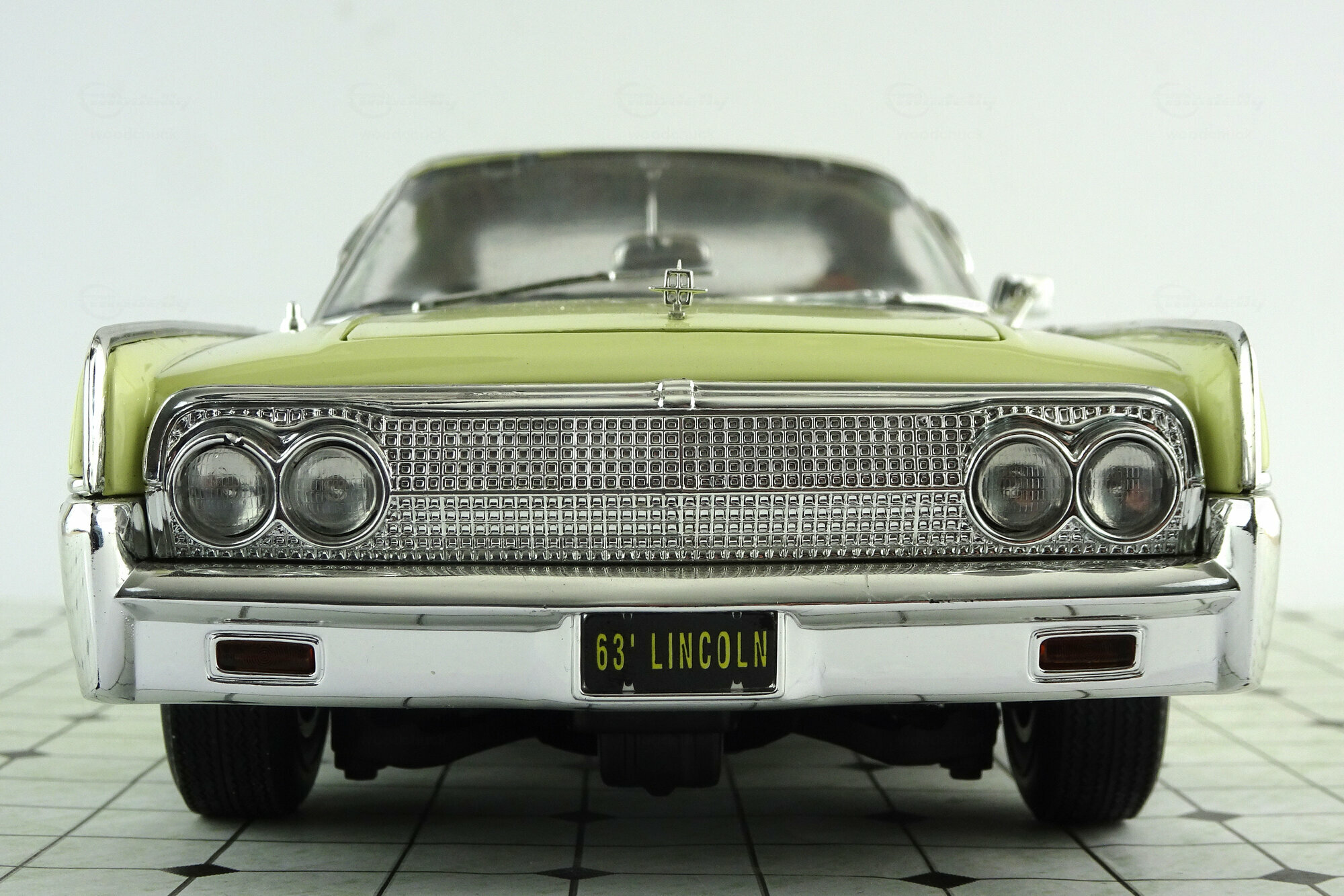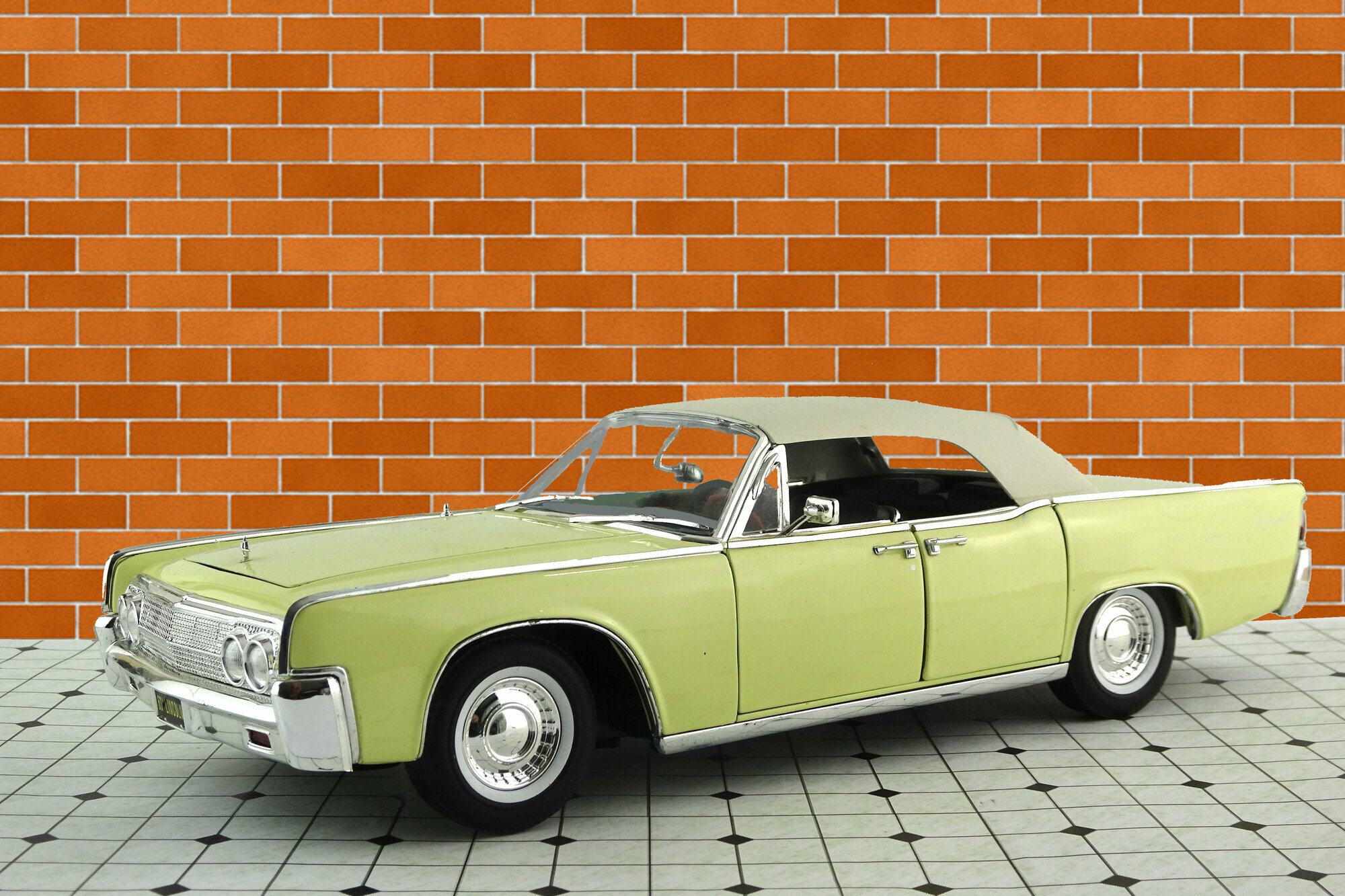 Lincoln benutzte die Bezeichnung Continental erstmalig für die höchste Ausstattungsvariante der Zephyr der Modelljahre 1040 -42 und 1946 -48. Erst 1956 nutzte Ford den Namen erneut für eine Reihe von Luxusfahrzeugen die von der eigens hierfür gegründeten Continental Division bis 1960 parallel zu den Lincoln Modellen Capri und Premiere hergestellt wurden. Mit dem Modelljahr 1961 wurde der Continental dann zu einem Modell in der Lincoln Palette. Der von Elwood Engel völlig neu entworfene Wagen verzichtete auf Heckflossen und Chromschmuck und zeigte klare, gerade Linien mit fließenden Flächen. Eine Besonderheit waren die hinten angeschlagenen Hecktüren die das Einsteigen in den Fond deutlich erleichterten. Dieses prämierte Design wurde mit regelmäßigen Änderungen, besonders der an Frontseite, bis 1969 produziert. Es gab neben der Limousine bis 1967 ein viertüriges Cabriolet sowie ab 1966 ein Coupé. Das Cabrio von 1963 unterschied sich von seinen Vorgängern im Wesentlichen durch eine andere Fronpartie, die Doppelscheinwerfen waren nun in den über die gesamte breite verlaufenden Kühlergrill integriert. Auch das Chromelement an der Heckklappe wurde etwas schmaler und die Heckflossen etwas höher und eckiger. Den Antrieb besorgte weiterhin der 7,0 Liter V8 nun mit einer Leistung von 324 PS was für eine Höchstgeschwindigkeit 190 km/h genügte. Das Auto war mit über 5,40 m Länge und 2 m Breite größer geworden und auch das Gewicht stieg auf über 2,4 t. Im Modelljahr 1963 wurden 3138Convertibles hergestellt die zu einem Preis von 6.916 $ verkauft wurden. Lincoln biete ein Continental Modell bis heute an auch wenn die Position des Fahrzeugs in der Modellpalette ab 1982gewechselt hat