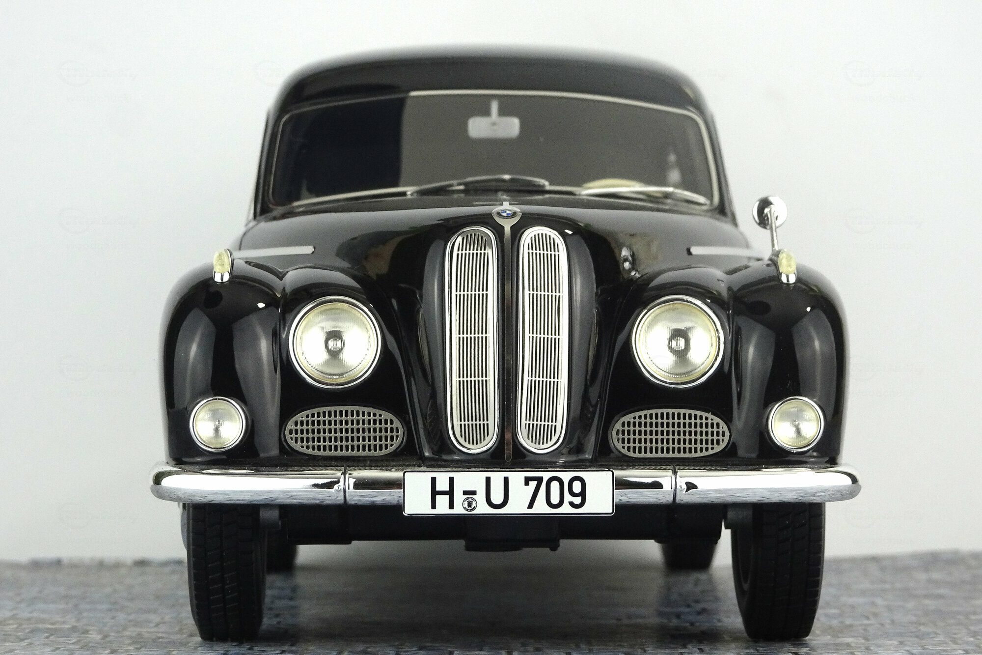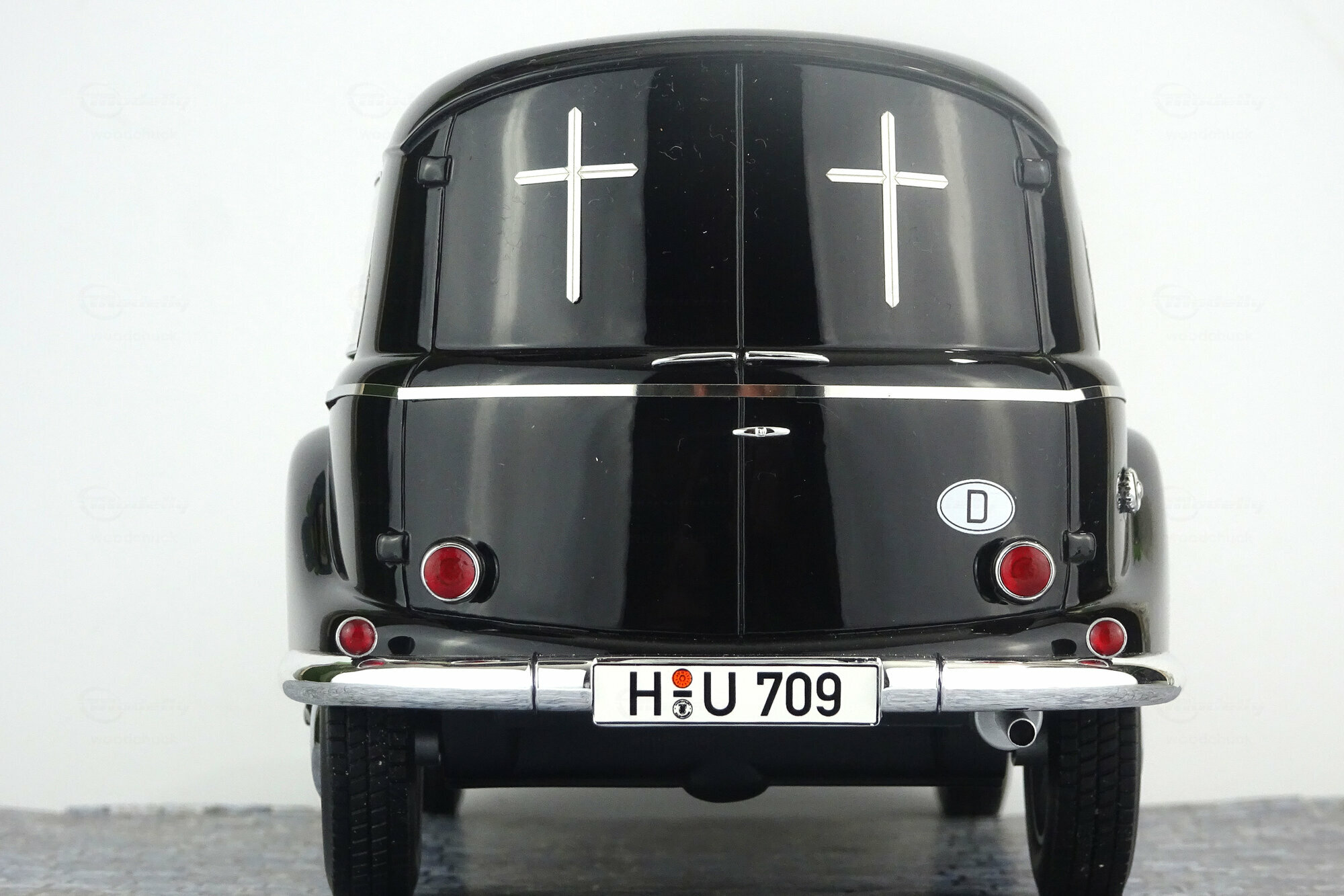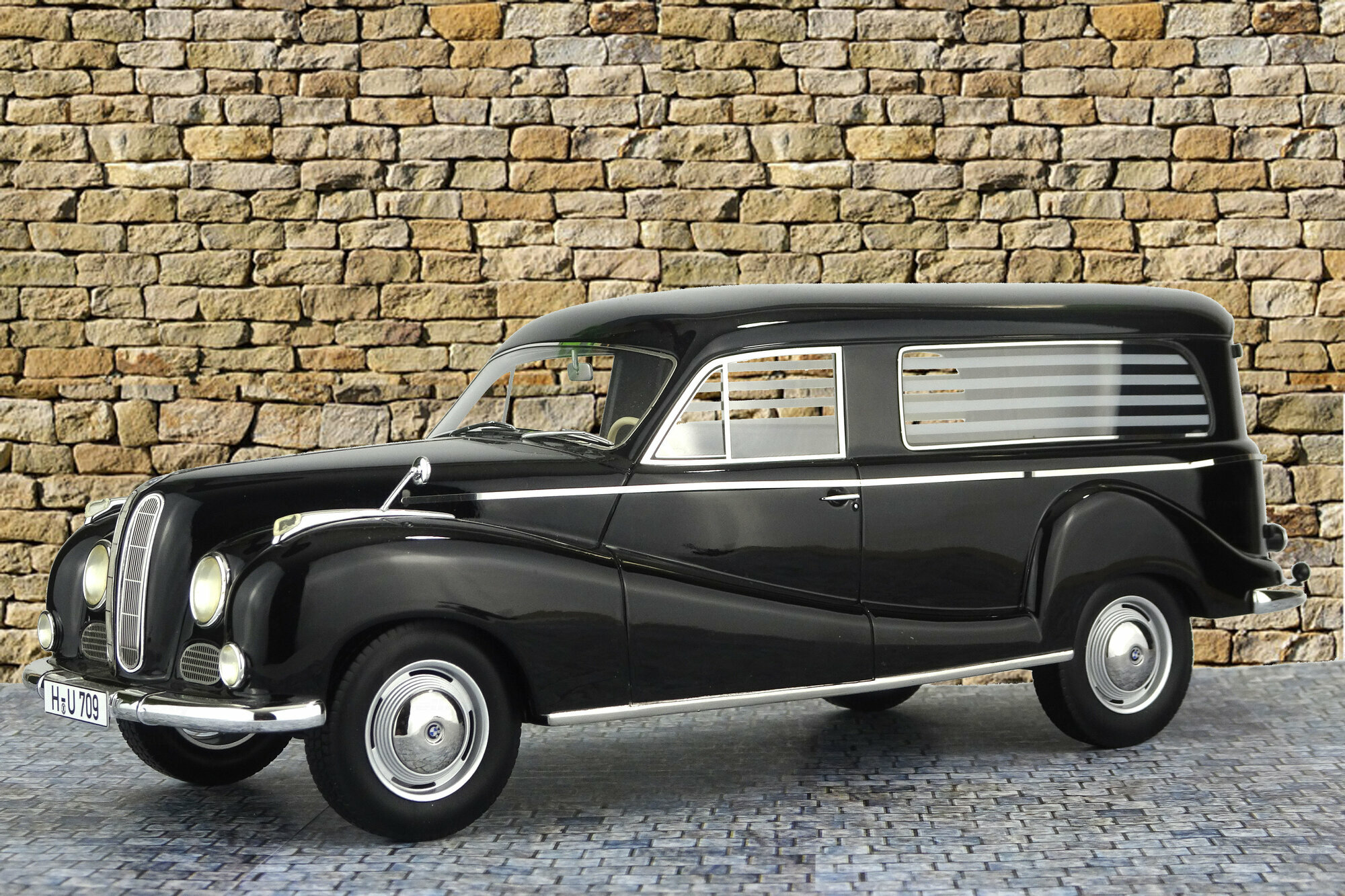 Schuco hat das Modell in seiner Pro-R Series 2015 als Resinmodell herausgebracht. Die Karosserie ist dem Original sehr genau nachempfunden und die feinen Details, teilweise aus fotogeätztem Material runden das Bild ebenso ab wie die hervorragende Lackierung, natürlich in schwarz. Der Innenraum ist sehr einfach gehalten, das Armaturenbrett weist aber sehr feine Applikationen aus Chrom auf. Im Laderaum herrsch leider gähnende Leere, dieser ist aber auch nicht besonders gut einsehbar. Der Maßstab wird nur ungefähr eingehalten was jedoch den mangelnden Angaben zum Original geschuldet werden kann. Der aktuelle Händlerpreis von 195 € erschein mir jedoch etwas zu hoch gegriffen.