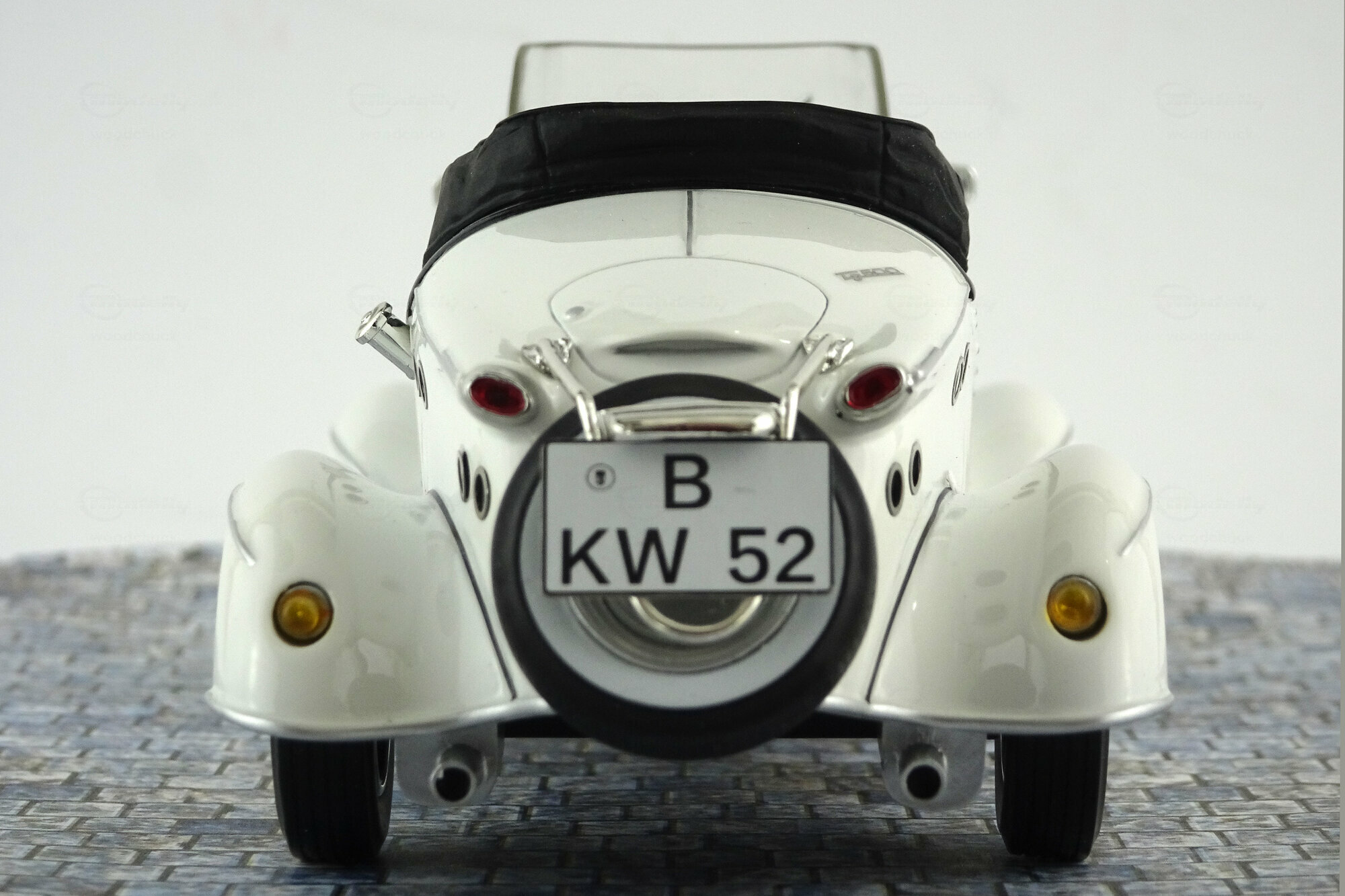 Schuco brachte im Dezember 2018 ein Resinmodell des Tg 500 sowohl in der geschlossenen als auch in der Cabrio-Variante heraus. Das Modell ist sehr fein gearbeitet und gibt die typische Erscheinung des Originals gut wieder. Die Lackierung ist ohne Tadel und auch die äußeren Details sind stimmig und filigran ausgeführt. Beim geschlossenen Modell ist die Plexiglashaube leider aus recht dickem Material gefertigt war den Blich in das recht ordentlich gestaltete Innere leier etwas „verschleiert“. Die Unterseite ist leider völlig glatt, lediglich die recht groben Andeutungen der beiden Auspufftöpfe sind vorhanden. Der Maßstab wird gut eingehalten und auch die Proportionen sind stimmig. Die Modelle sind mittlerweile bei den meisten Händlern aus den Regalen verschwunden, sind aber im Netz zu Preisen von 120 -130 € noch zu bekommen.
