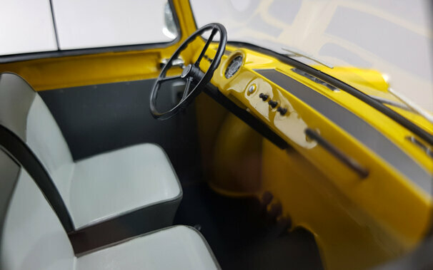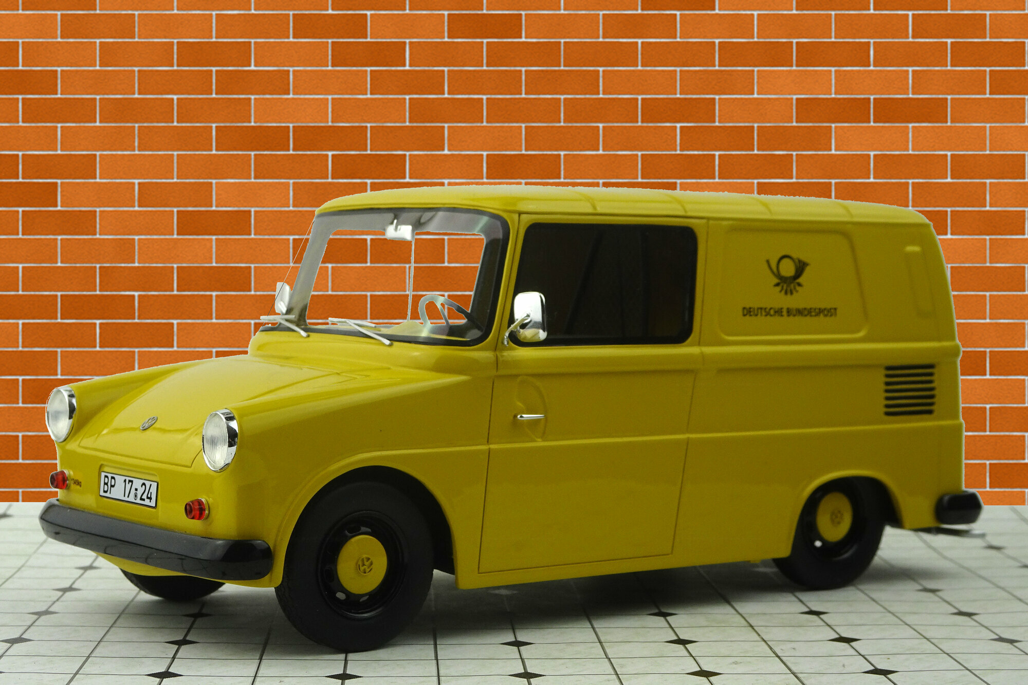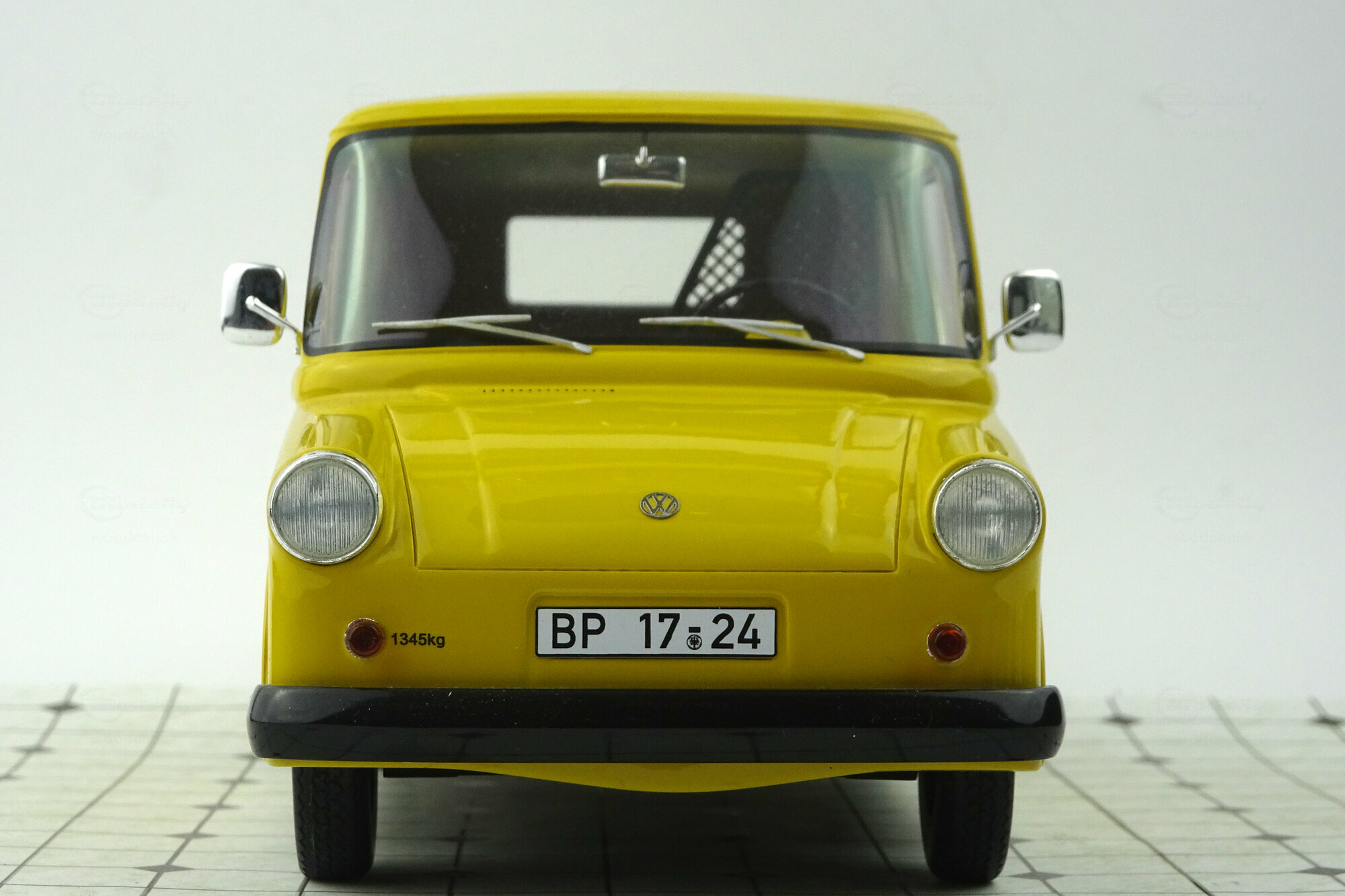 Schuco brachte in seiner Pro-R Reihe im August 2018 den Typ 147 als Resinmodell in 3 Versionen heraus. Meiner, die Version der Deutschen Verarbeitung bis hin zu den Rädern ist ohne Tadel. Die Wenigen äußeren Details sind von guter Qualität, bei der Darstellung der Schienen und Scharniere der Schiebetüren hat man es sich aber doch etwas zu einfach gemacht. Die Hinterräder liegen etwas zu tief in den Radausschnitten sodass das Modell leicht hecklastig wirkt. Ebenso erscheint die Kontur der vorderen Kotflügel zu gering abfallend was zu einer optisch länger wirkenden Front führt. Der auch beim Original spartanisch ausgestattete Innenraum ist entsprechend gut wiedergegeben und auch die Schubladen in der Stufe des Laderaums fehlen nicht. Der Maßstab wird sehr exakt eingehalten. Das auf 500 Stück limitierte Modell weist ein paar Schwächen auf und ist mit 140 € auch nicht gerade preiswert.