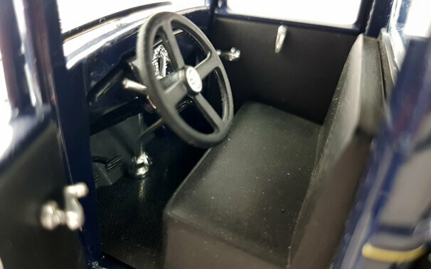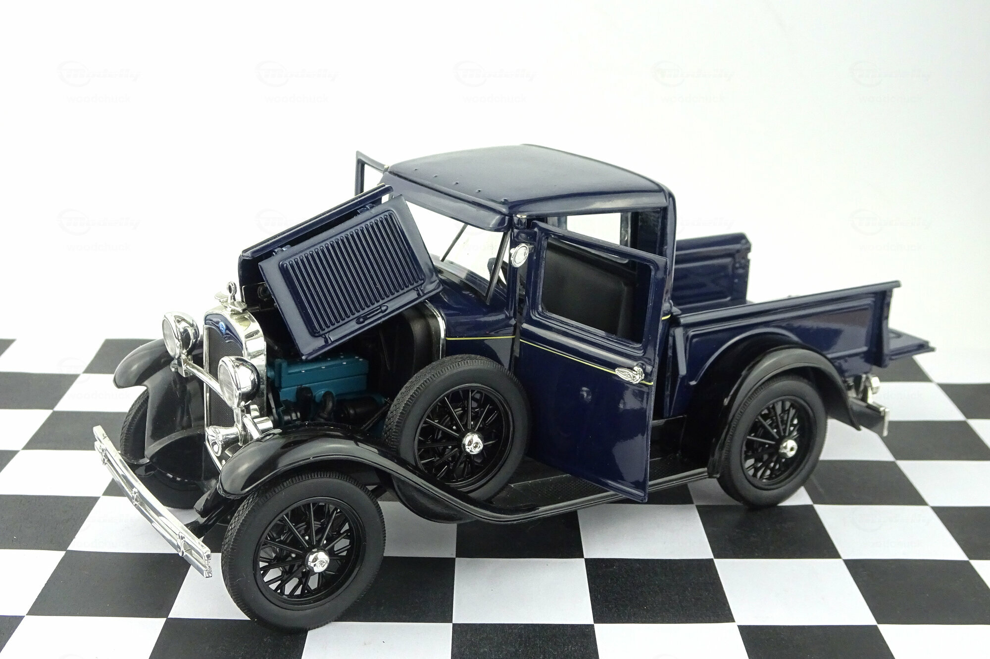 Ford brachte das Model A 1928 heraus und ersetzte damit das Model T welches 18 Jahre gebaut wurde. Es wurde, wie schon der Vorgänger, in einer Unzahl an Varianten, einschließlich einer LKW-Version die AA als Bezeichnung erhielt, angeboten. Das Vorbild für das Modell war der Pick Up, ein Kleinlastwagen mit Pritsche. Der Ford A war der erste Ford der über eine Standard-Bedienung mit Gas-, Brems- und Kupplungspedal sowie einen Gangschalthebel verfügte. Er war in nur 4 Standardfarben erhältlich zu denen jedoch Schwarz nicht gehörte. In dieser Farbe waren aber die Kotflügel generell lackiert. Das Fahrzeug war mit einer Standardlänge von 4,05 m, einer Breite von 1,70 m und einer Höhe je nach Aufbau von 1,76 recht kompakt gebaut. Der Vierzylinder-Reihenmotor mit 3,3 l Hubraum leistete 40 PS und brachte das Auto damit auf bis zu 104 km/h Höchstgeschwindigkeit. In der vierjährigen Bauzeit bis 1931, in der es kaum größere Veränderungen gab, wurden 4.320.446 Fahrzeuge aller Versionen gefertigt. Ein Model A kostete je nach Variante zwischen 385,-- $ für den Roadster und 570,-- $ für das viertürige „Town Car“.