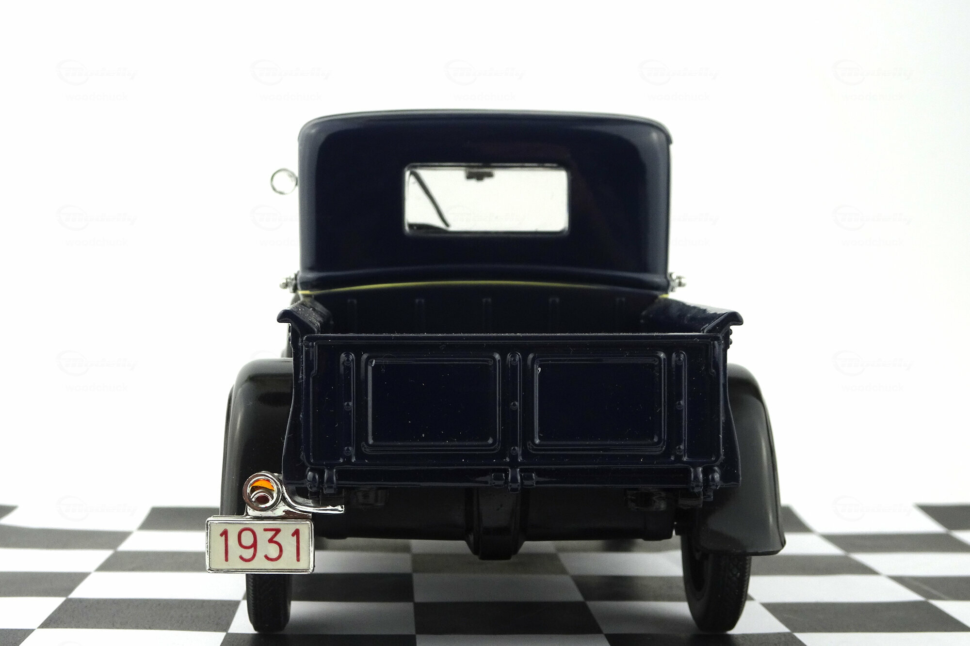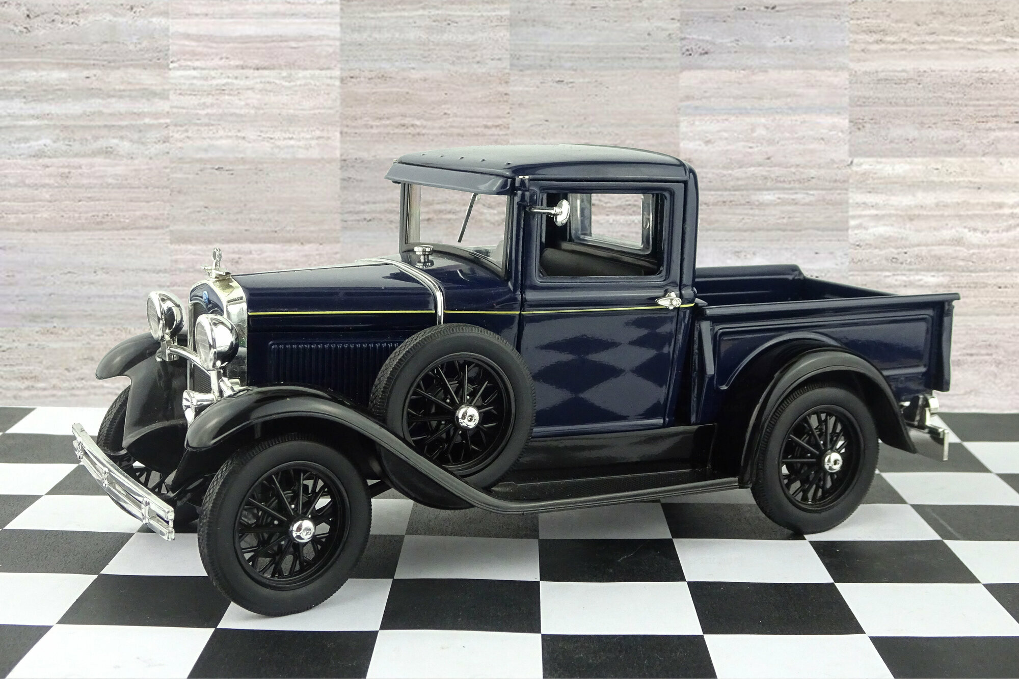 Der Model A PickUp von Signature Models ist 2003 erschienen. Bodengruppe und Kotflügel dieses Modells sind aus hochwertigem Kunststoff gefertigt und daher ist es gegenüber seinen „Geschwistern“ von Motor City Classics ein echtes „Leichtgewicht“. Dennoch sind Lackierung und Verarbeitung sehr gut ausgefallen. Türen, Motorhaube und Ladeklappe lassen sich öffnen. Die Türen sind mit „echten“ Scharnieren ausgestattet und neigen zu spontaner Selbstöffnung. Es gibt einige wenige schöne Details, Kühler mit Emblem und Armaturenbrett, aber ansonsten leidet das Modell unter einer eher sparsamen Detaillierung. Der Maßstab wird gut eingehalten und die Proportionen stimmen. Heute ist dieses Modell im Netz zwischen 60,-- und 70,-- € zu bekommen.