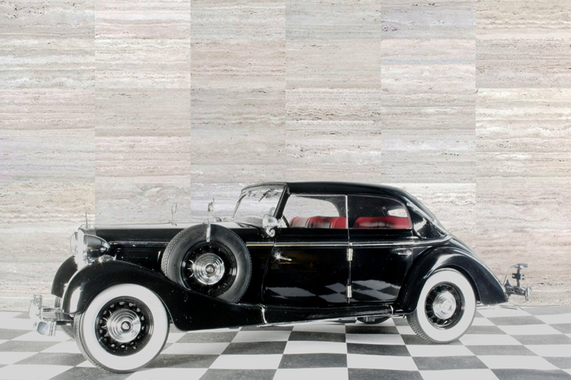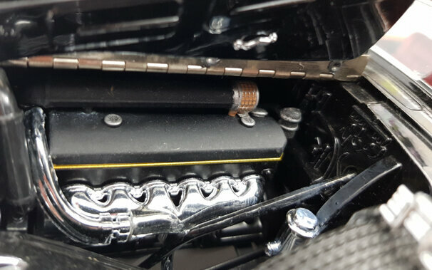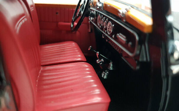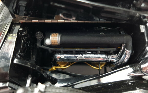 Das Modell wurde von Signature Models 2012 herausgebracht und zeigt wie auch schon die 2-türige Version die bei diesem Hersteller gewohnte gute Verarbeitungsqualität und eine umfangreiche Detaillierung. Motorhaube, alle 4 Türen sowie der Kofferraum lassen sich öffnen und geben den Blick auf eine schöne Innenausstattung mit Wurzelholz an den Türen, Teppichboden im Fahrgastraum und einen hervorragend detaillierten Motor frei. Das Modell ist leider etwas zu lang und zu hoch geraten. Signature stellt dieses Modell nicht mehr her, es ist jedoch bei online Anbietern noch in großer Zahl zwischen € 80,-- und 140,-- zu bekommen.