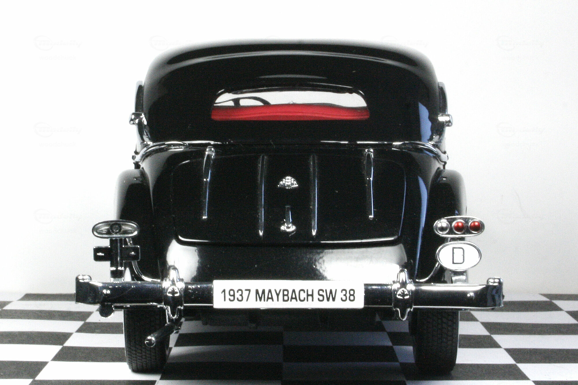 Der SW 38 (SW = Schwingachsenwagen) wurde von Maybach 1936 als Nachfolger des SW 35 vorgestellt und in verschiedenen Karosserievarianten angeboten. Das Vorbild für das Modell ist ein 4-türiges Cabriolet mit Spohn-Aufbau. Der SW 38 war mit max. 5,1 m etwas länger als sein Vorgänger und erhielt nun den größeren HL 38 Motor mit 3790 ccm Hubraum. vorgestellt. Die Breite von 1,85 m sowie die Höhe von 1,65 m blieben gleich und auch die Motorleistung von 140 PS war konstant. Dennoch konnte das nun bis zu 2,5 t schwere Fahrzeug bis zu 160 km/h schnell fahren. Bis zum Ende der Produktion des Nachfolgers SW 42 im Jahre 1941 wurden insgesamt von allen Versionen 800 Stück gebaut. Der Preis für einen SW 38 betrug je nach Aufbau zwischen 18.000,-- RM und 26.500,-- RM.