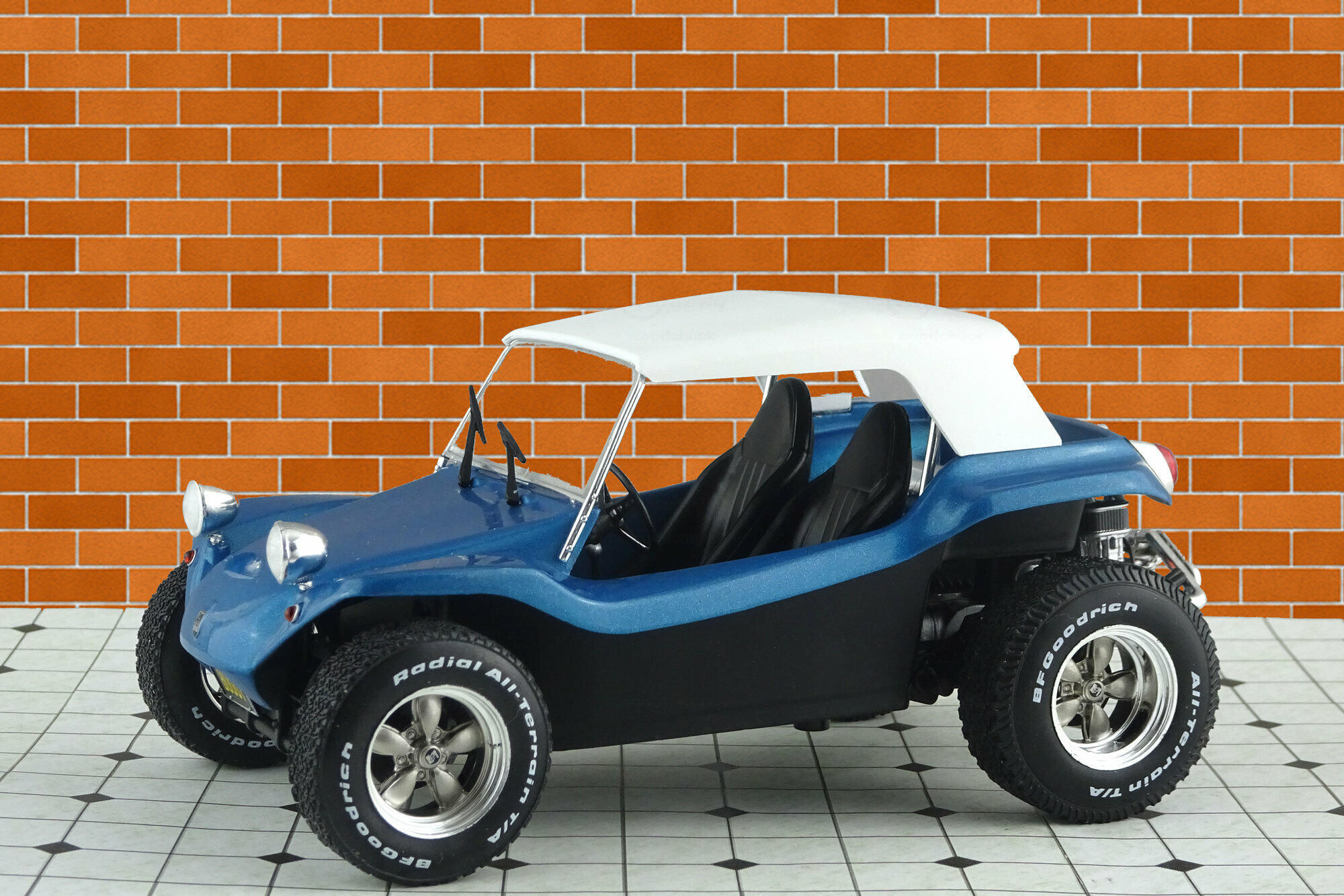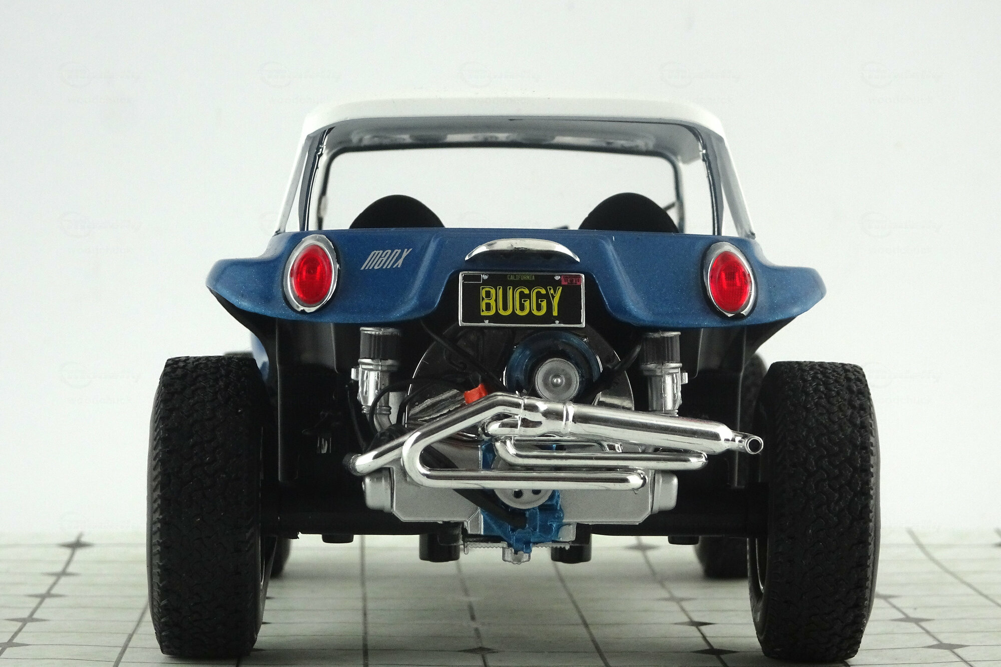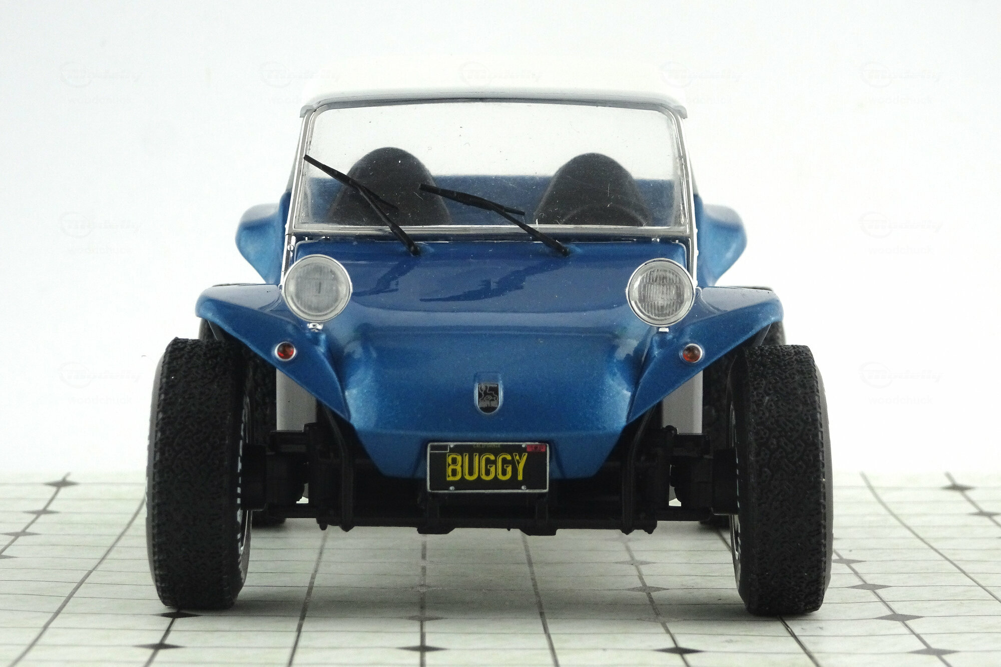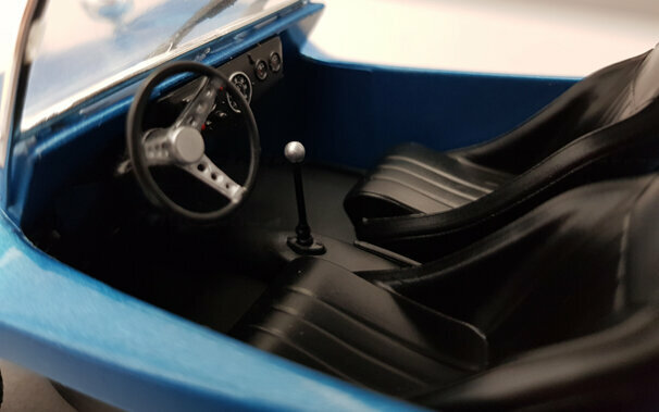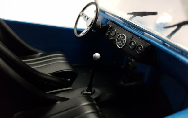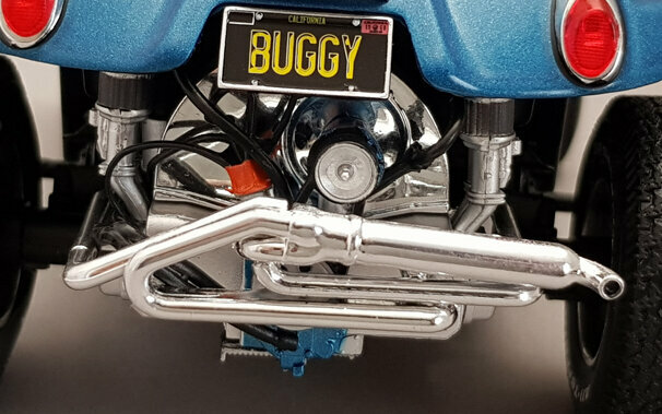 Bei Solido erschien im Juni 2019 ein DieCast Modell des Meyes Manx Buggy in der Version von 1968. Das Modell ist in metallic Blau mit weißem Dach ausgeführt und zeigt die typische Manx Karosserie mit den hinten aufgesetzten Original Rückleuchten des Käfers. Schöne Details wie der offenen gut detaillierte VW Boxermotor mit der aufwändigen Auspuffanlage, die aufgesetzten Frontscheinwerfer und die speziellen Geländeräder vervollständigen den Eindruck. Die Vorderräder sind lenkbar. Auch das Innere ist ordentlich gestaltet mit Armaturenbrett, Schalensitzen und dem freiliegenden Tank. Das Modell ist gegenüber dem Maßstab leider etwas zu groß geraten, was bei Solido jedoch nicht ungewöhnlich ist. Dennoch ein ordentliche Modell dieses Kult-Autos was seinen Preis von 40 € in jedem Falle wert ist.