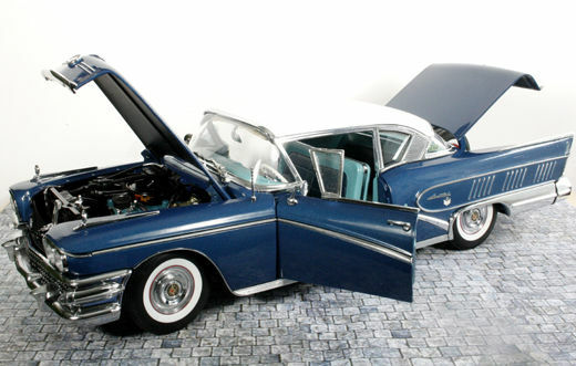 Das hier abgebildete Modellauto in 1:18-Maßstab, hergestellt von SunStar Platinum, ist eine präzise Nachbildung des Buick Limited der Generation 1958. Dieses Modell, das „woodchuck“ in seiner Sammlung führt, ist ein wahres Kunstwerk und resultiert aus der Verarbeitung von gemischten Materialien, die eine detaillierte und originalgetreue Darstellung garantieren. Jedes kleinste Detail des Originals wurde berücksichtigt, von den charakteristischen Chromleisten bis zu den spezifischen Emblemen. Auch die Lackierung des Modells reflektiert den originalen zweifarbigen Anstrich in Blau und Weiß, die für authentische 50-er Jahre Eleganz stehen. Die Räder, Türen, Motorhaube und Kofferraum sind beweglich, was die Sammlung interessanter und interaktiver macht. Besonders auffällig ist die präzise Nachbildung des Motorraums und des Innenraums, die jedes Detail des Originals widerspiegeln.